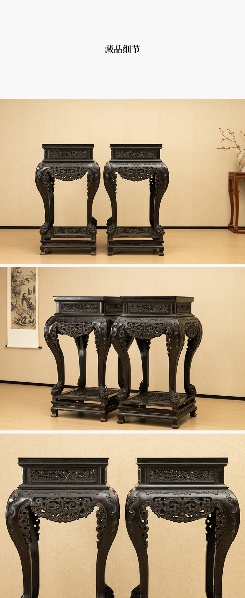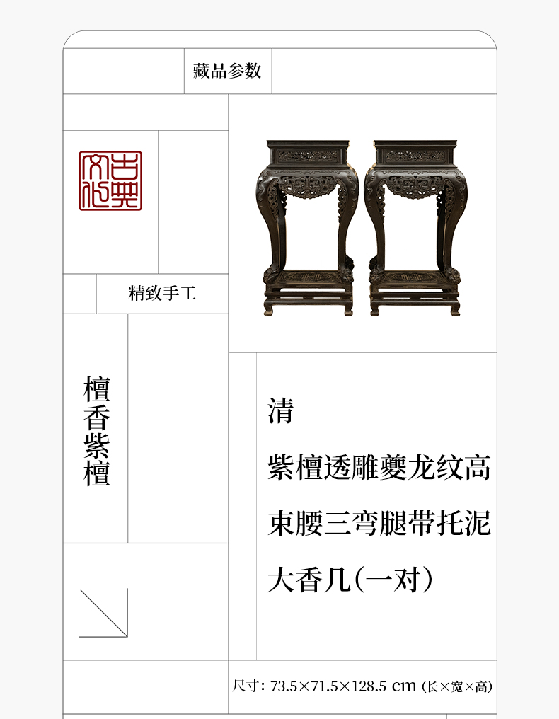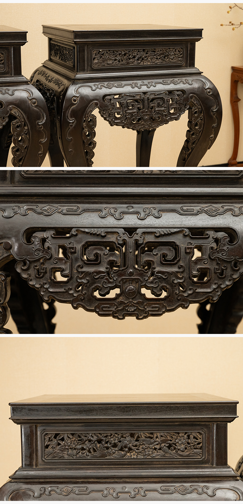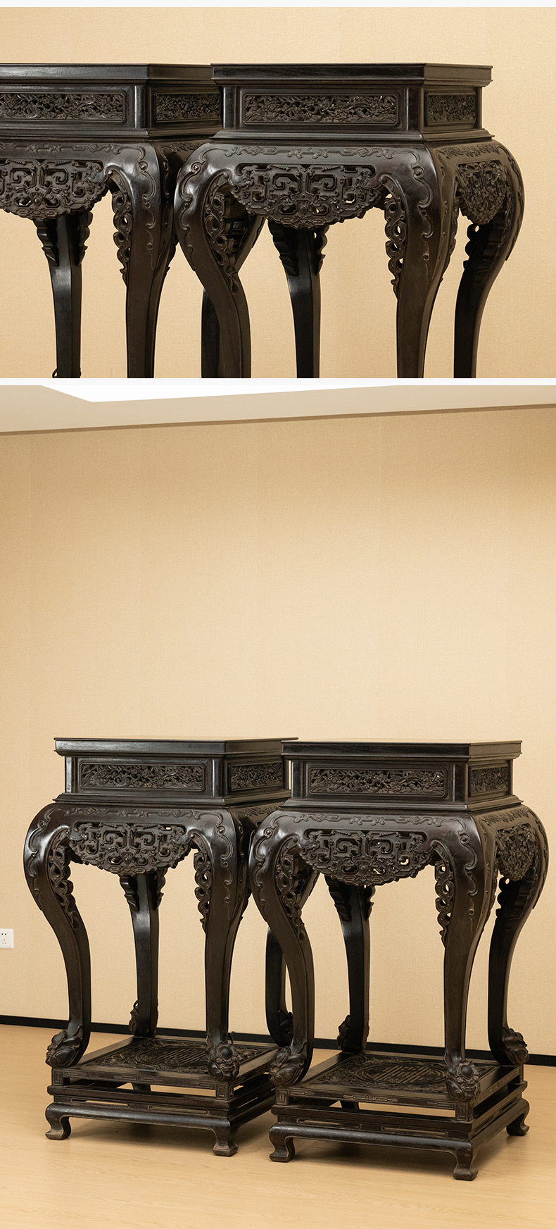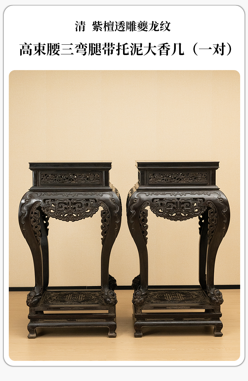 清 紫檀透雕夔龙纹高束腰三弯腿带托泥大香几(一对)