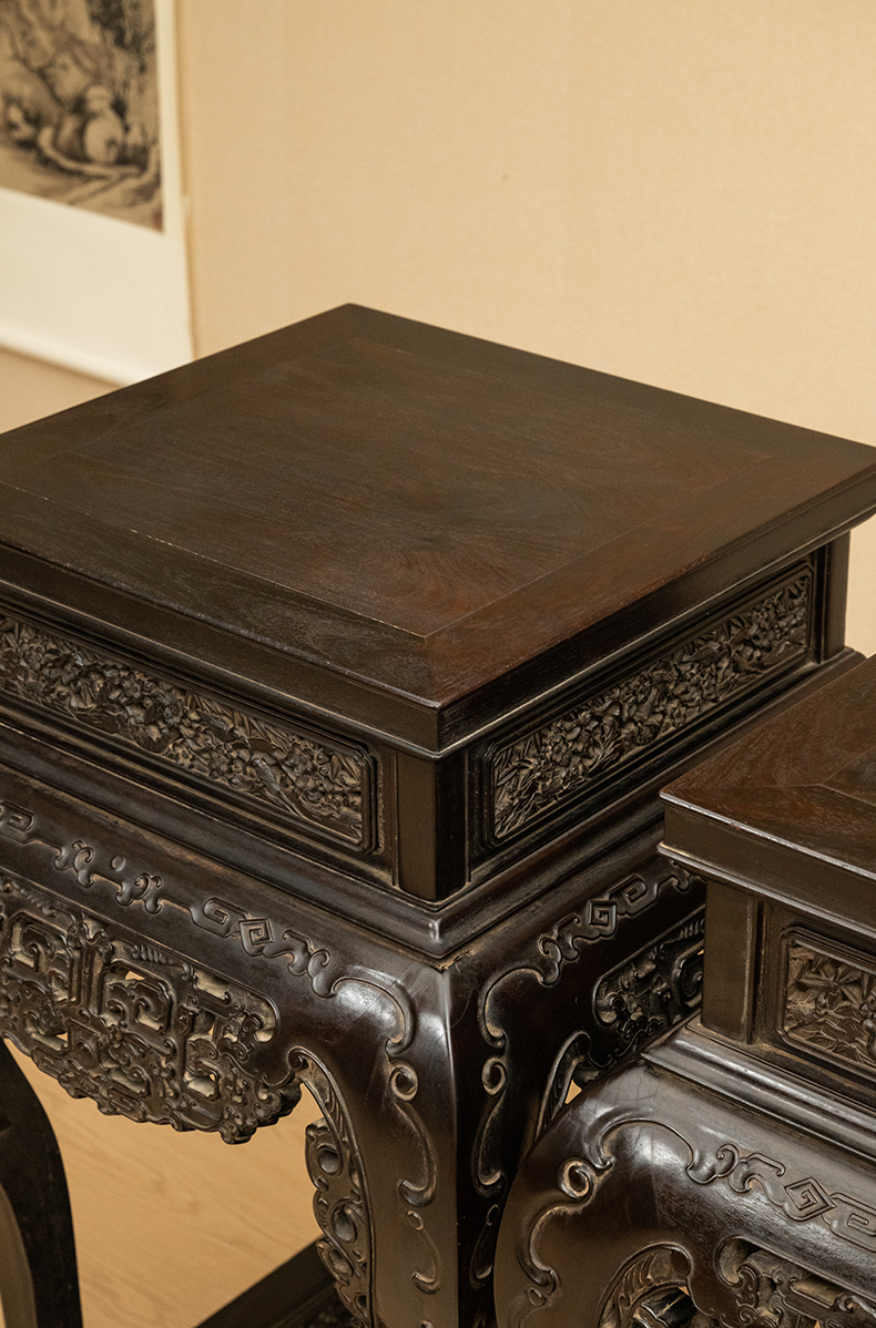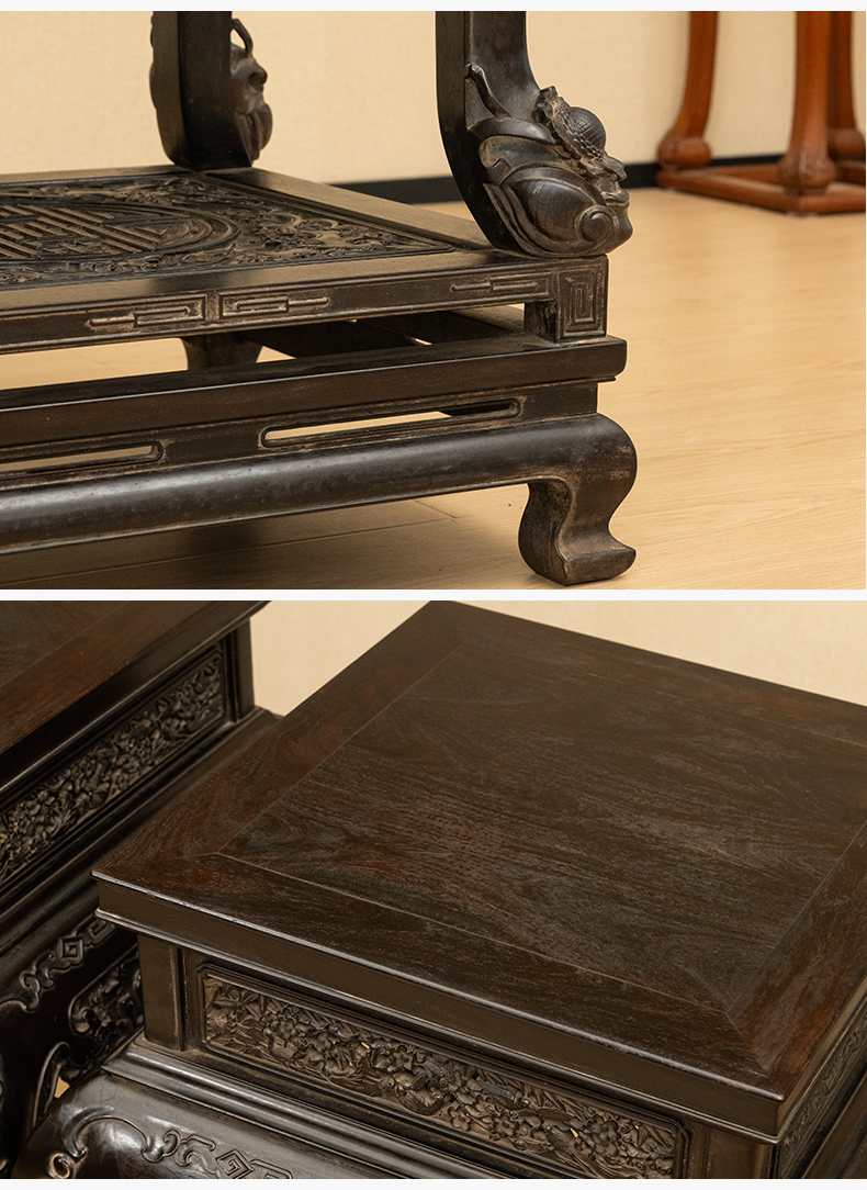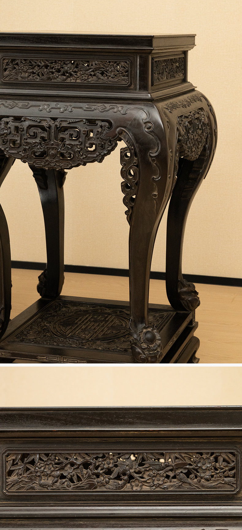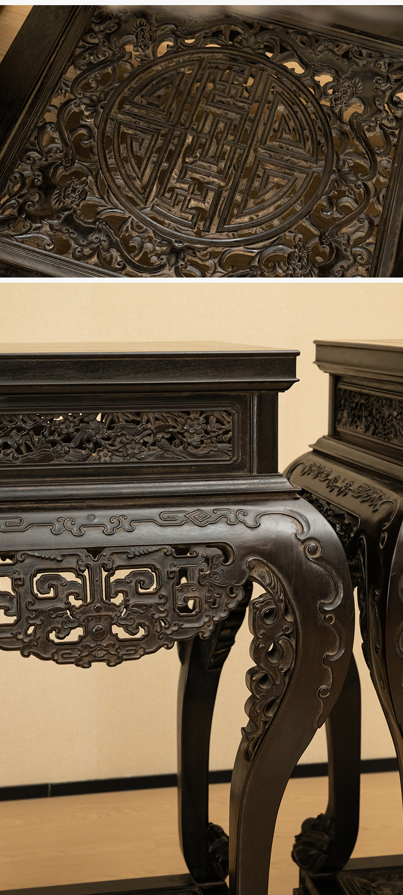 清 紫檀透雕夔龙纹高束腰三弯腿带托泥大香几(一对)