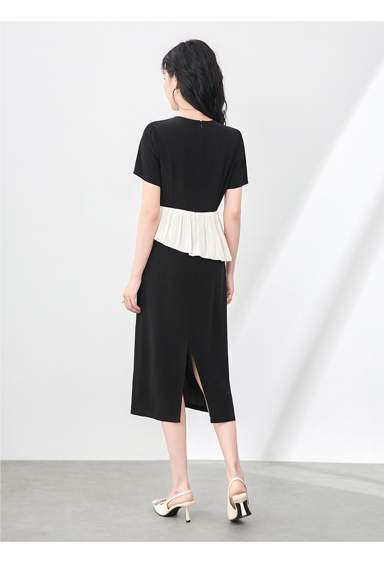 「高货wl」全新升级【铂金会员367/天猫489/差价122】(03818)洛诗琳气质醋酸缎面拼接连衣裙2025夏季新款收腰显瘦裙子