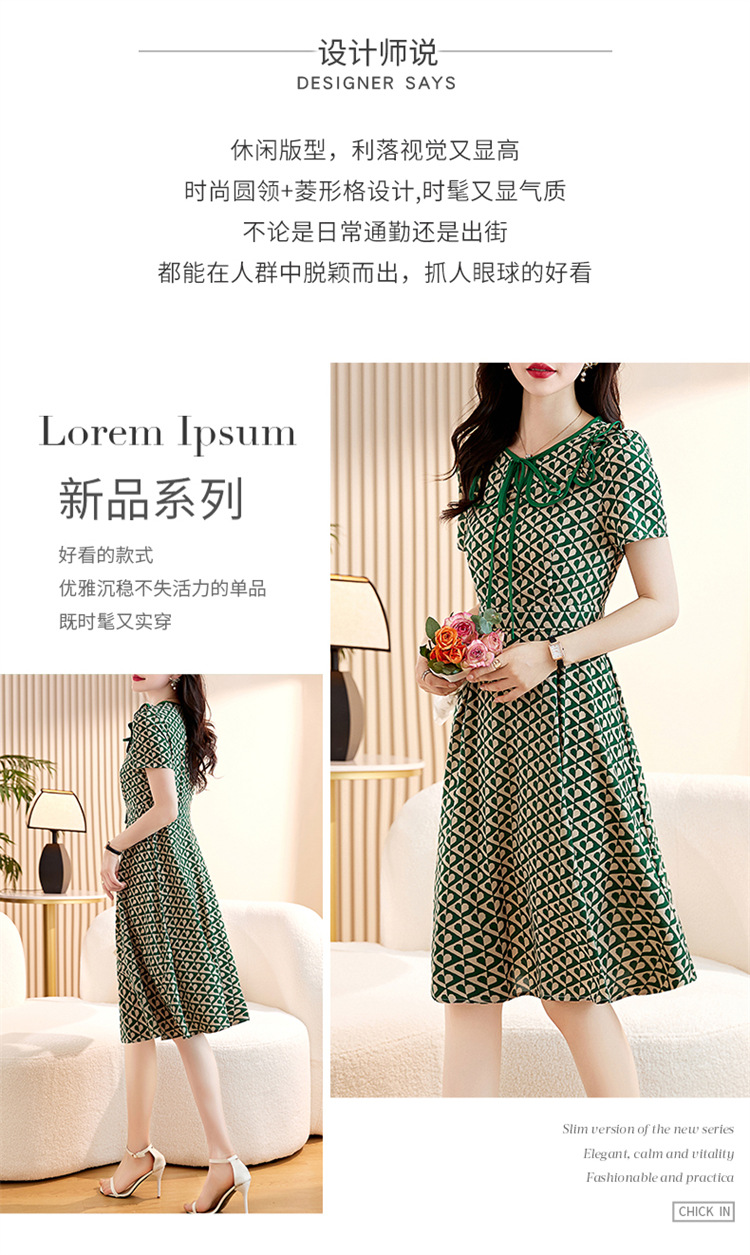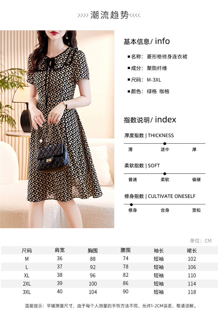 HR-WW23169夏季新款格纹连衣裙女2023年时尚休闲收腰显瘦小个子气质通勤裙子