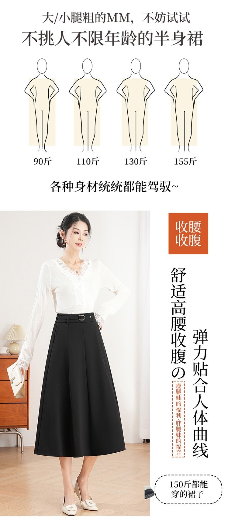 「自」全新升级【铂金会员128/天猫169/差价41】(14042)洛诗琳气质通勤半身裙2026春季新款高腰显瘦中长款A字裙