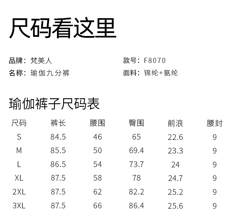 梵美人 F8070 瑜伽九分裤 裸感 无松紧 无尴尬线