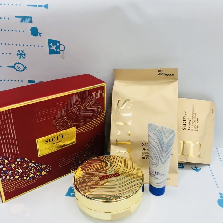 呼吸水分氣墊+替換裝(帶妝前乳)紅色👍SU:M37°韩国的高档化妆品牌,力推天然有机成份🌱,孕妇也可放心使用。气垫色号是01号亮白色➰遮瑕力度好,无惧暗沉,颜色自然,超强持久🌱,质地非常的轻薄透气,保湿效果好💧。还有防晒功能,SPF5++,PA+++☀ 套盒包括:气垫BB正装15g➕气垫BB替换芯15g 2个➕妆前乳10ml