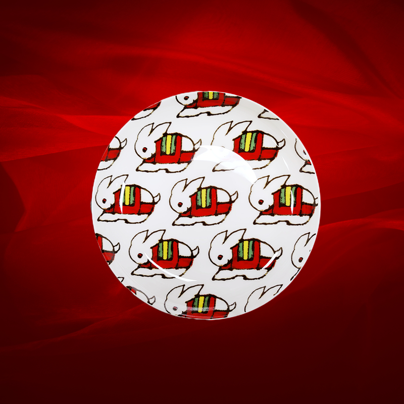 为兔年手绘玉兔吉祥碗、玉兔如意盘