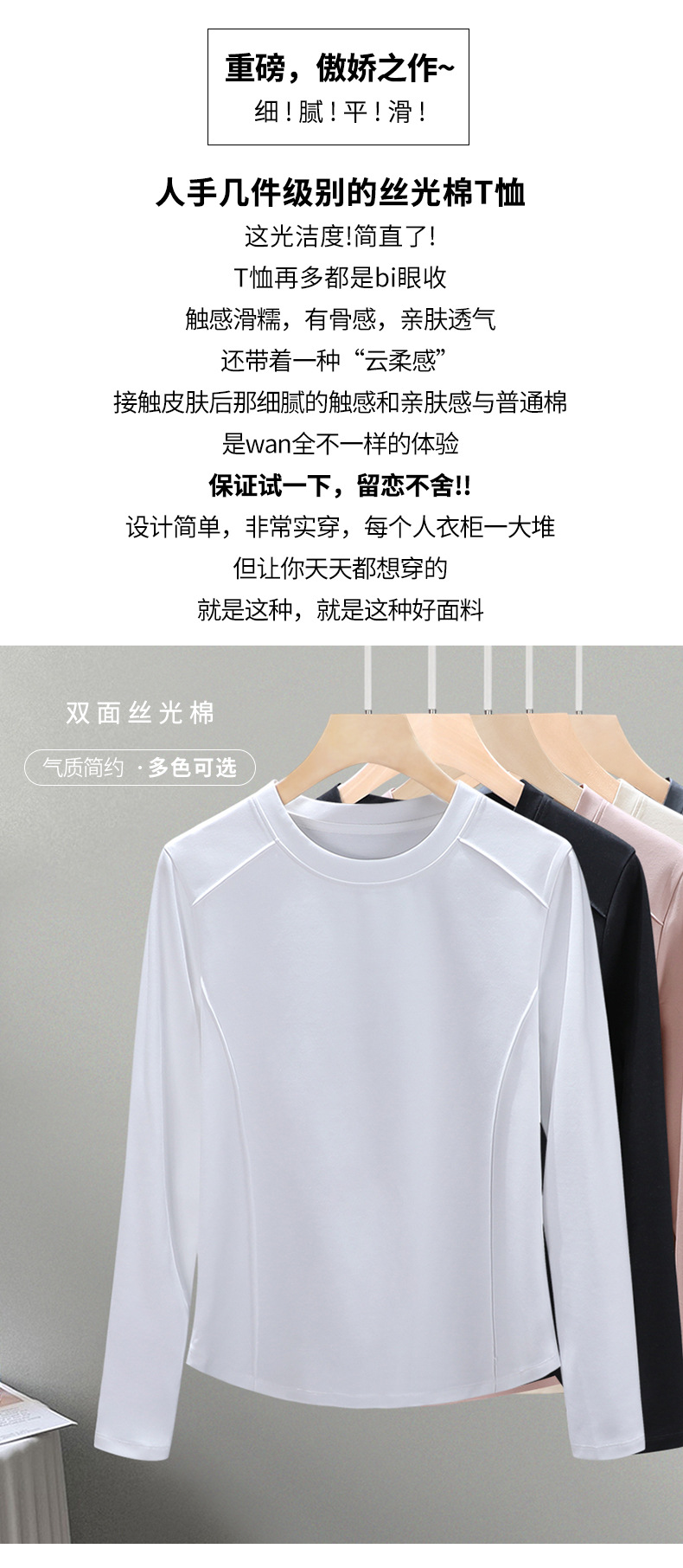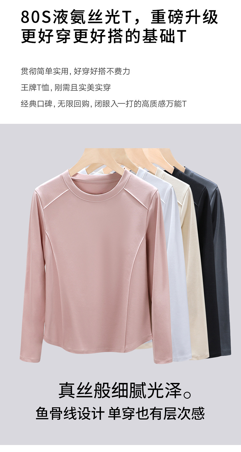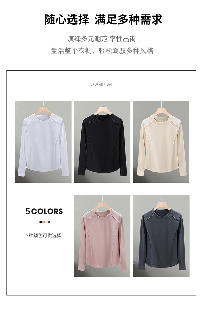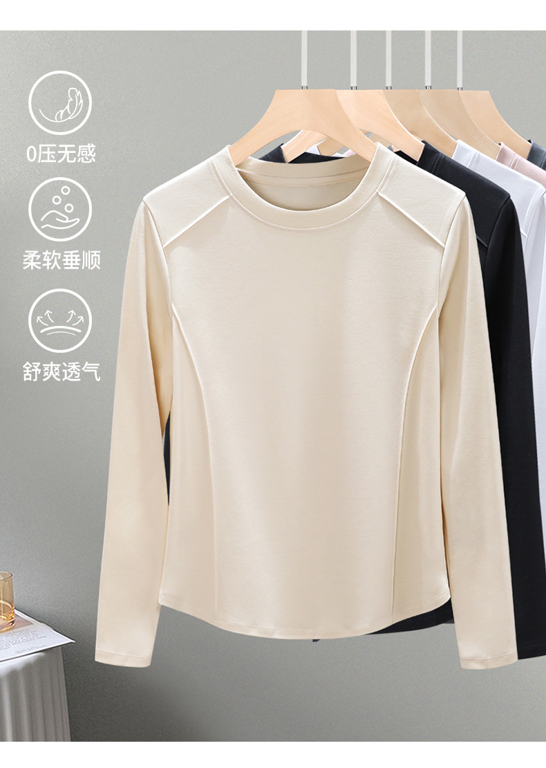 丁摩 圆领丝光棉长袖T恤女春秋季新款圆弧下摆内搭打底收腰修身上衣5ZF-6811