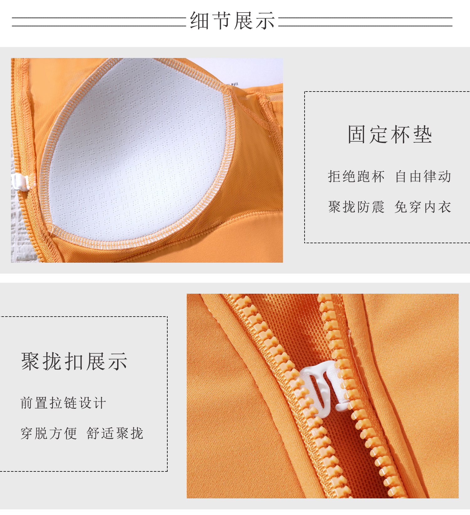 跃牌【安琪拉系列】新款前拉链运动内衣女防震跑步运动瑜伽服上衣网纱拼接健身文胸WX-5095