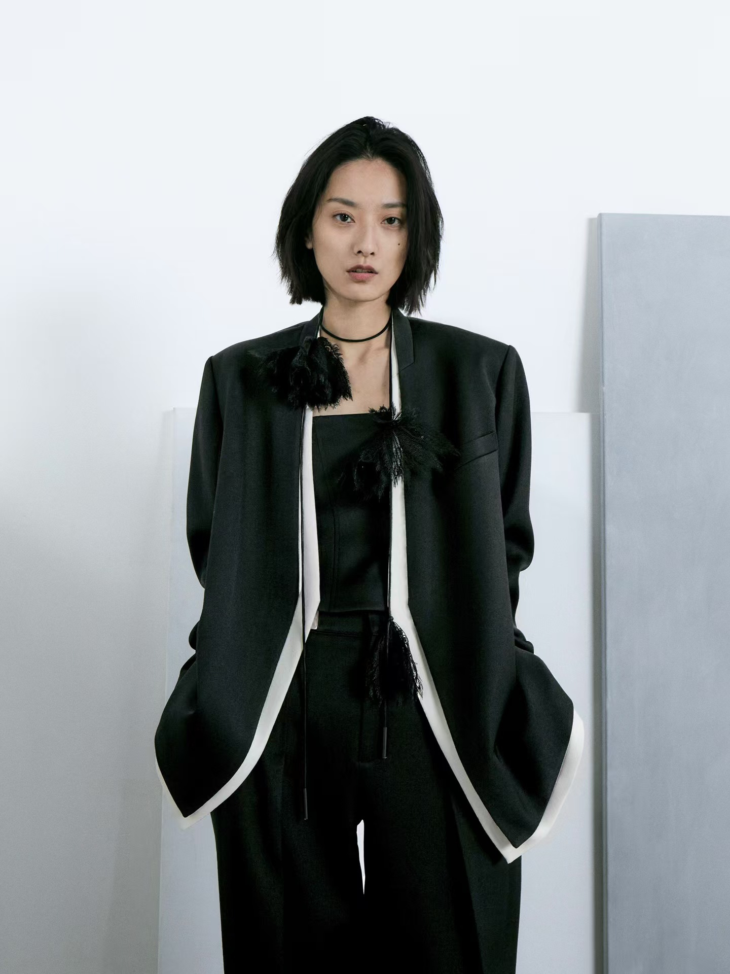 分镜头/SHANG1BYSHANGYI 2024新款设计师品牌高级感撞色边西服3380