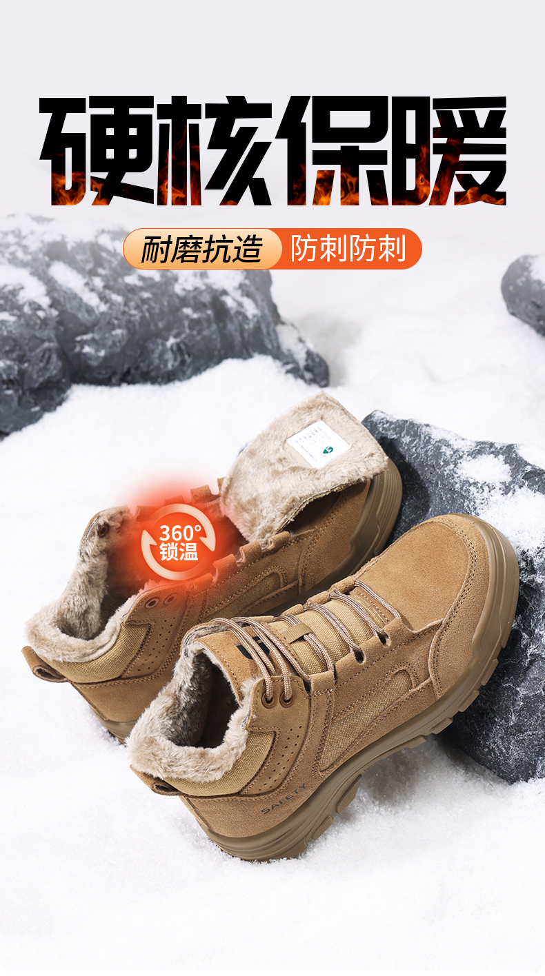 2025冬季新款保暖劳保鞋高帮防砸防刺穿实心底耐磨4.0凯夫拉