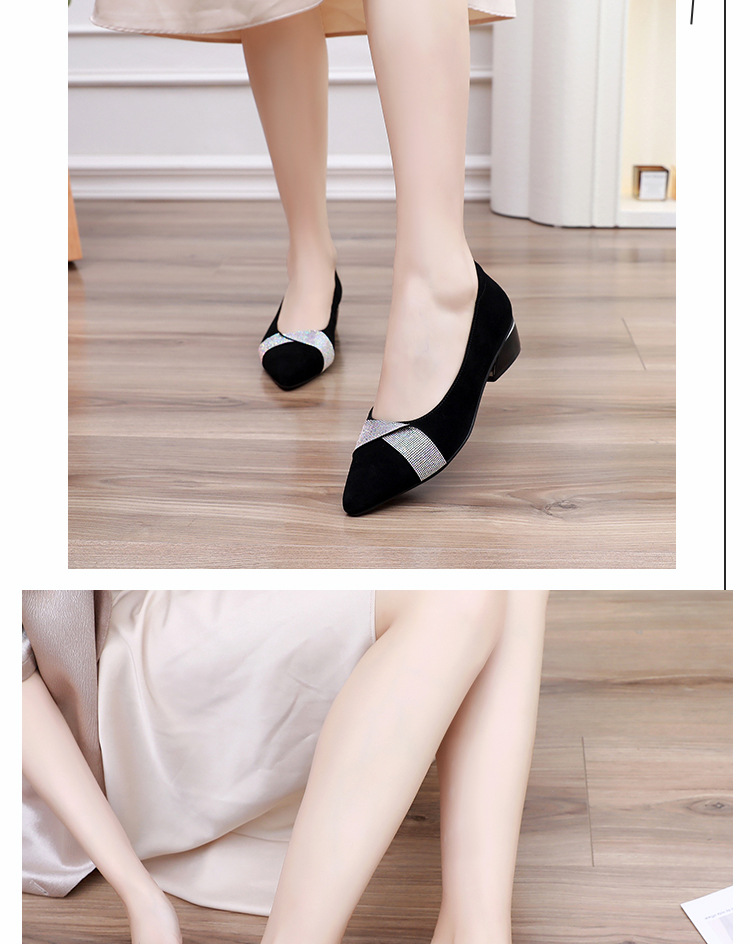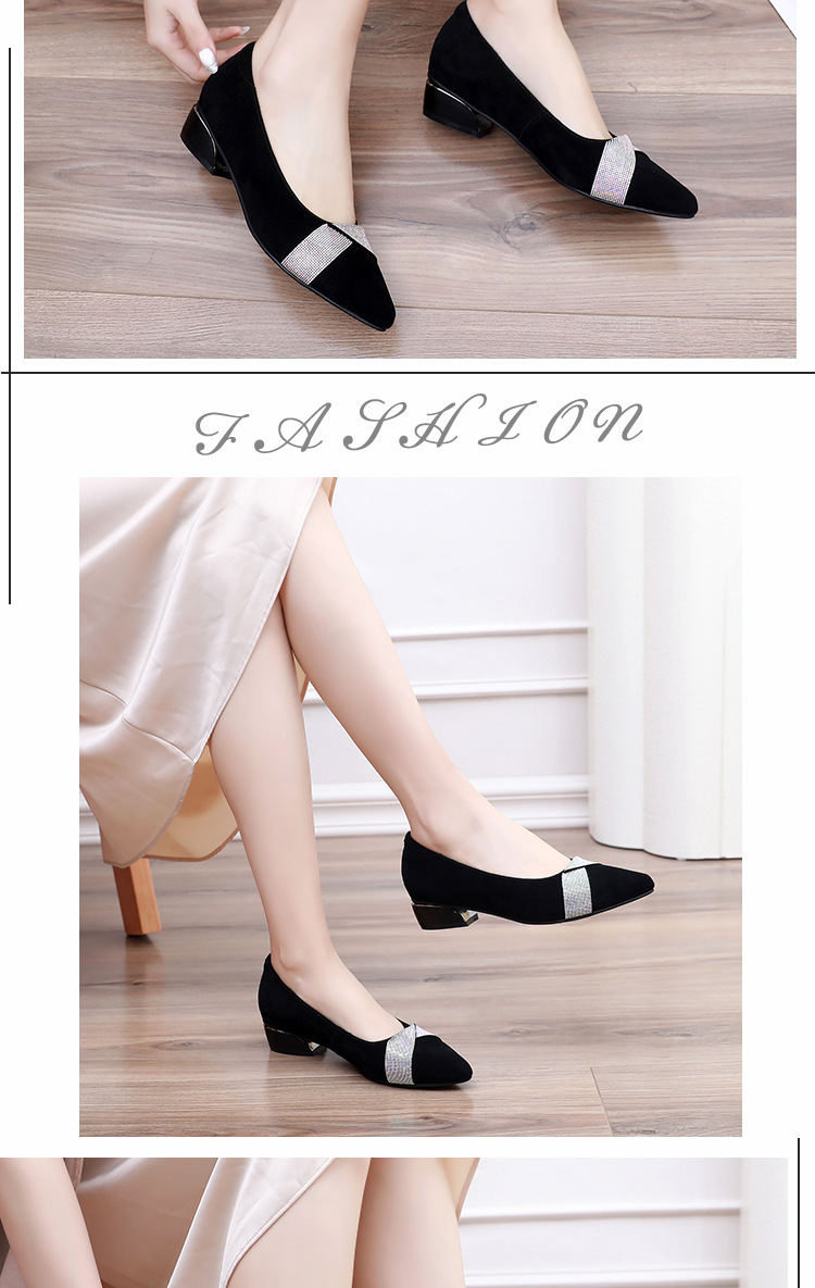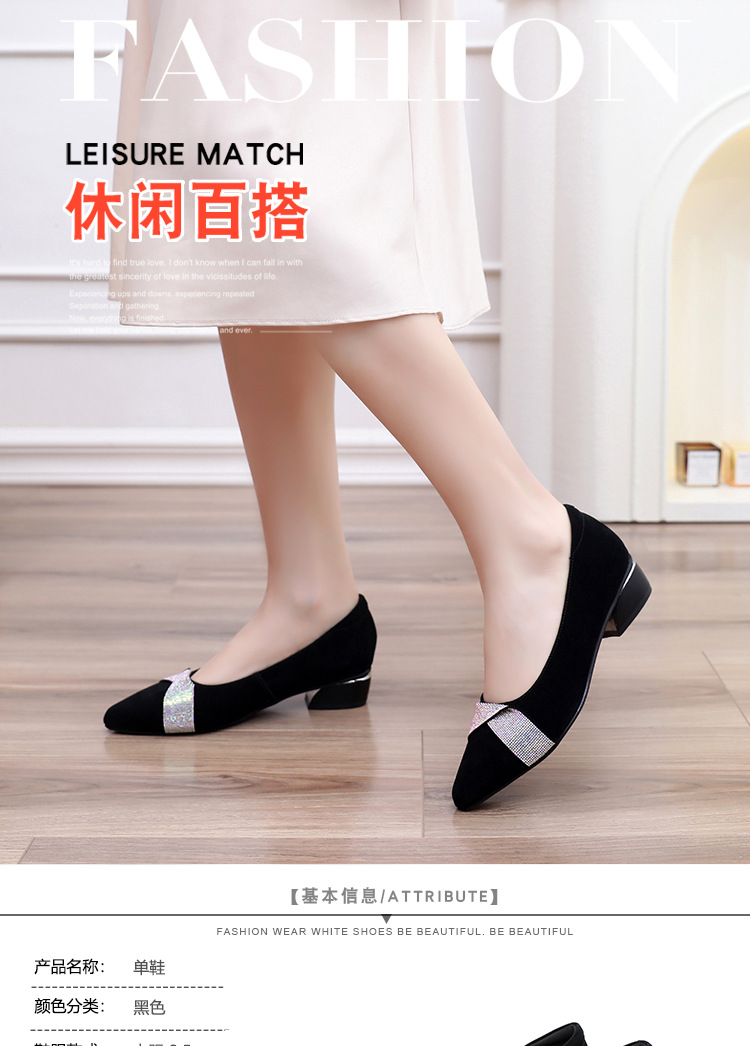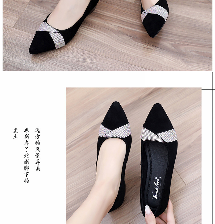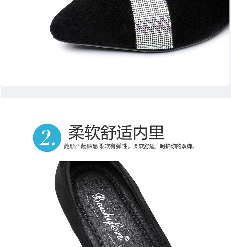 磨砂水钻单鞋女软底一脚蹬豆豆鞋春季新款软皮尖头中跟女皮鞋6ZF-2328