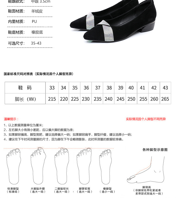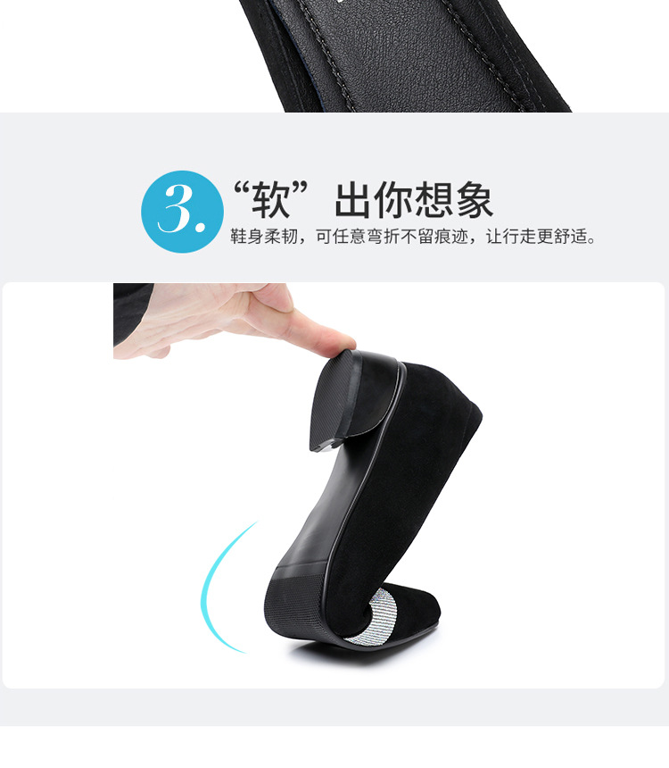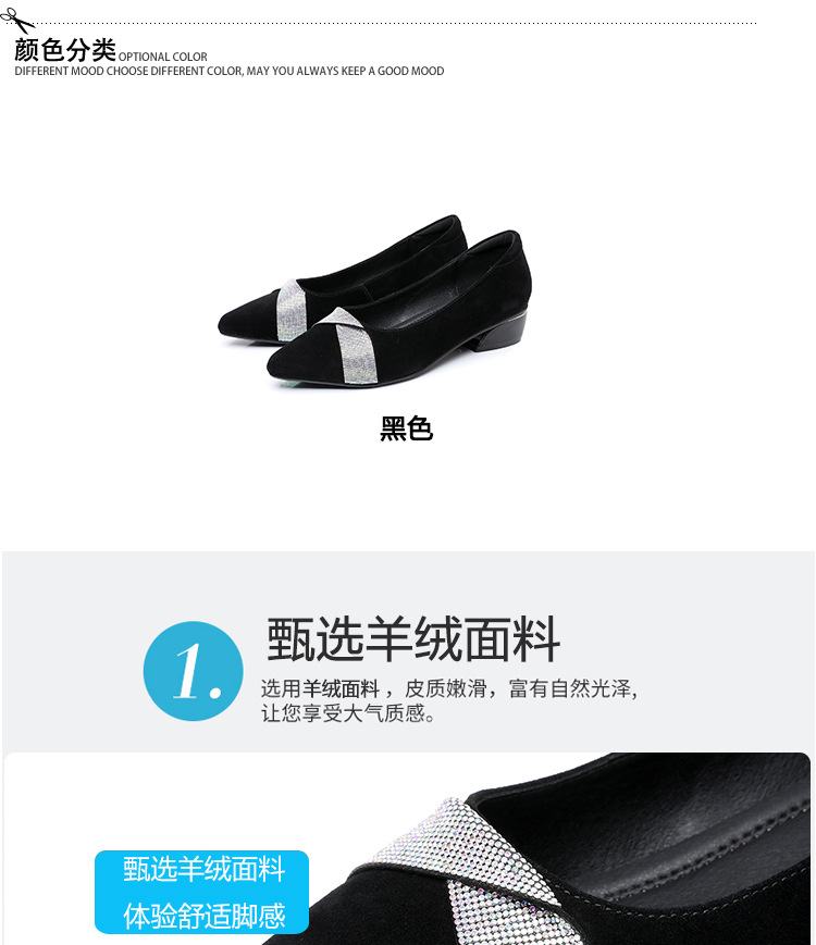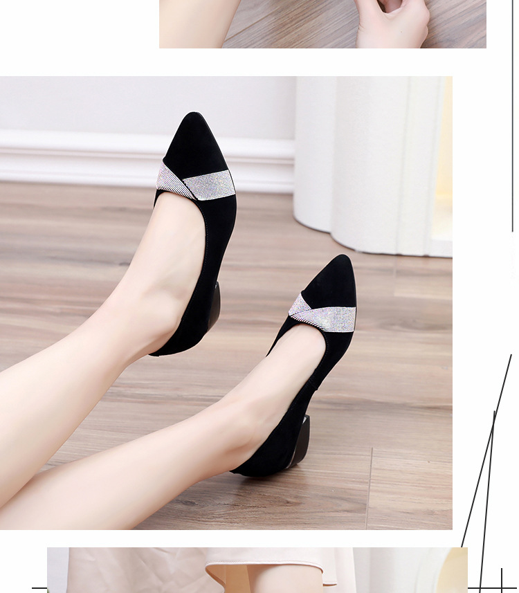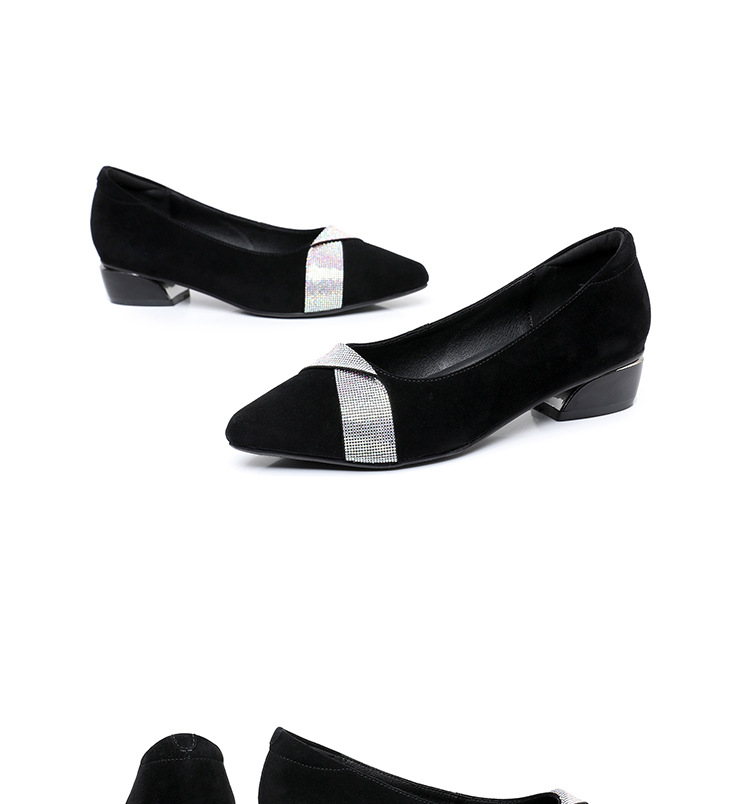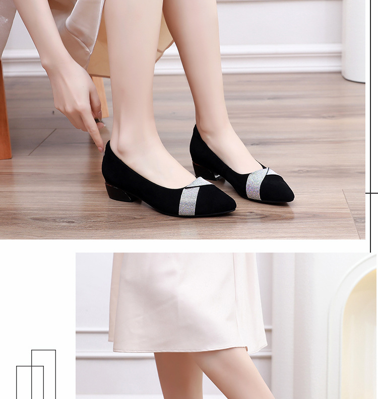 磨砂水钻单鞋女软底一脚蹬豆豆鞋春季新款软皮尖头中跟女皮鞋6ZF-2328