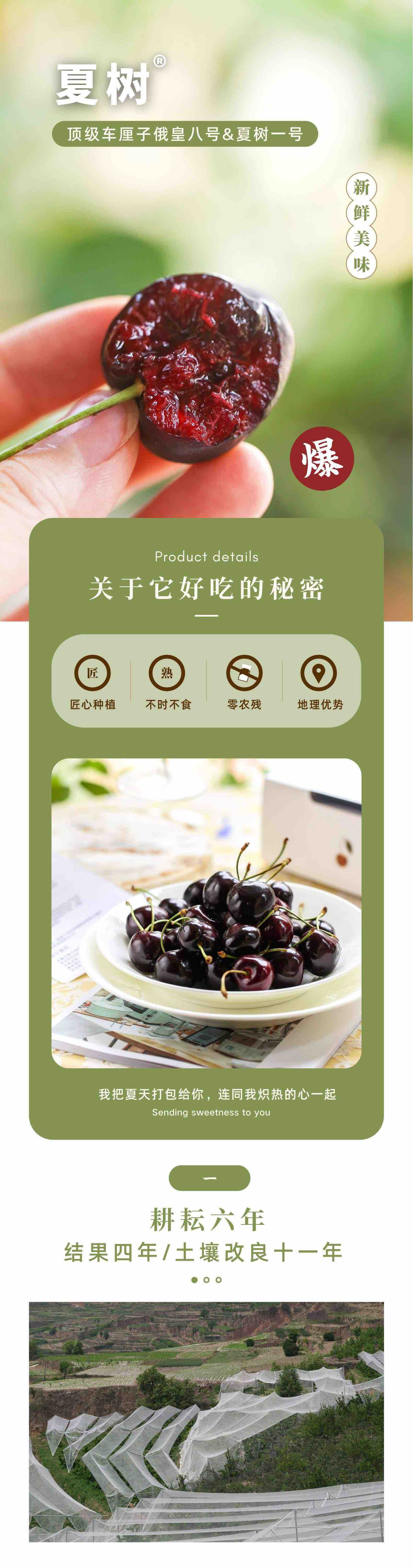 【发货说明】为什么预售,因为车厘子一但成熟会集中成熟,所以我们需要集中采摘,但我们能肯定得是客人经过漫长的等待尝到这份甜蜜的时候会觉得这一切是值得的。