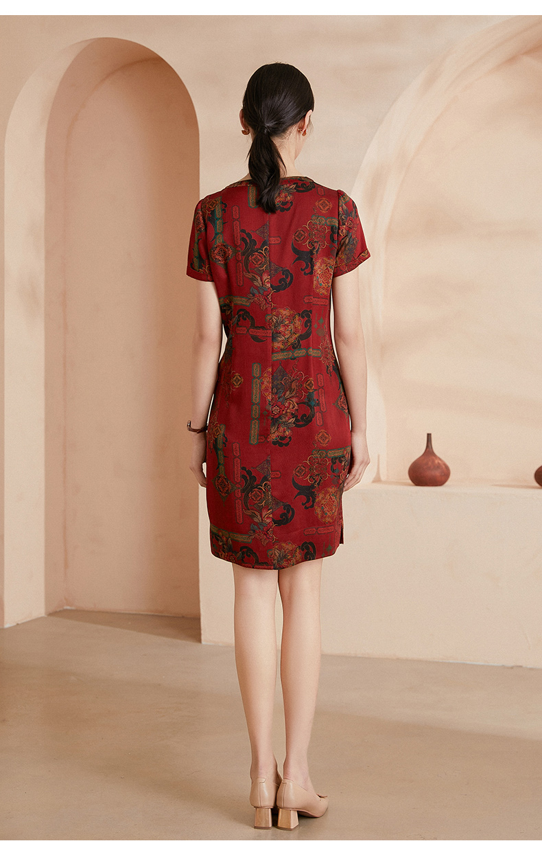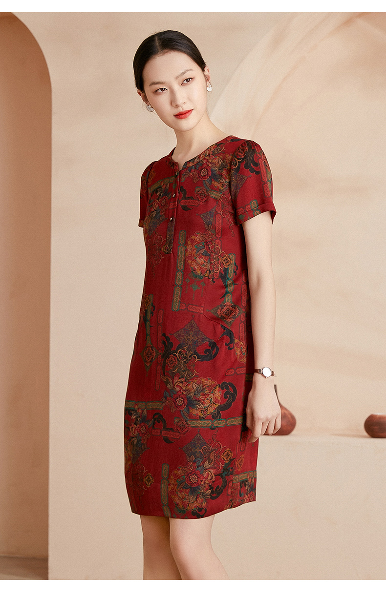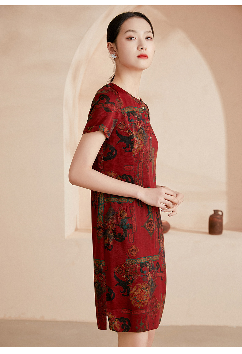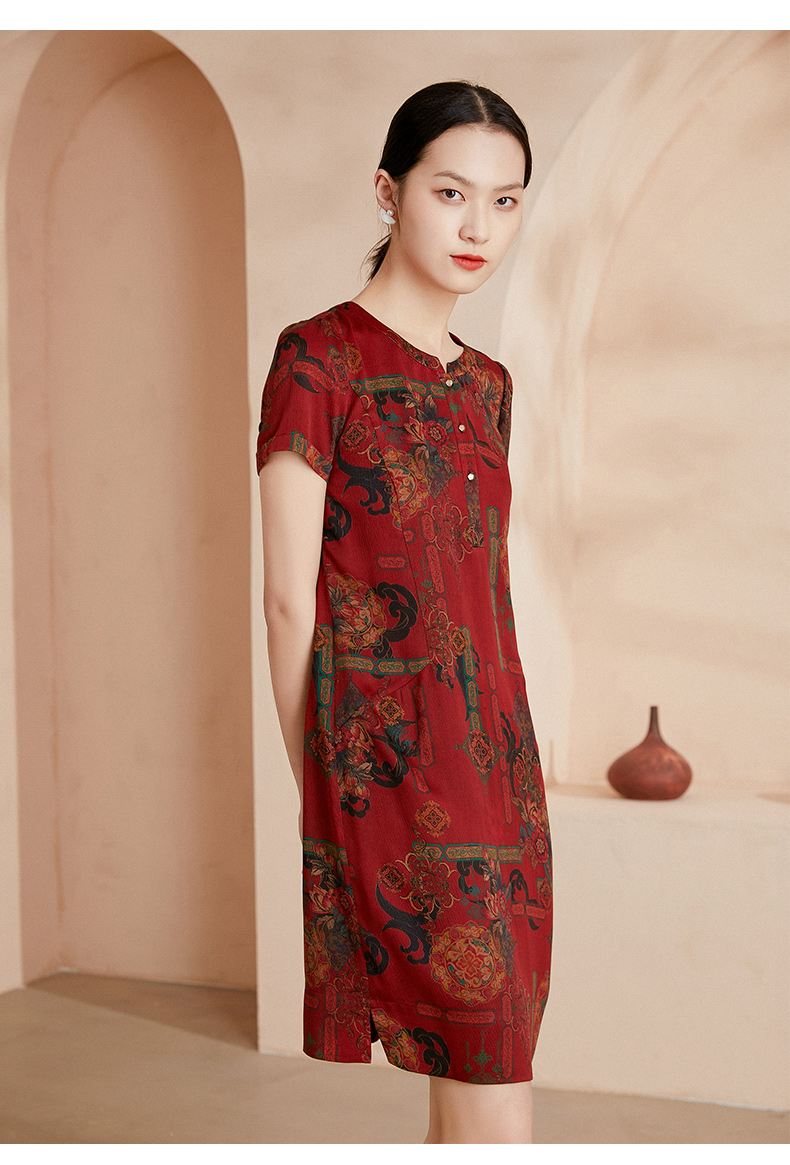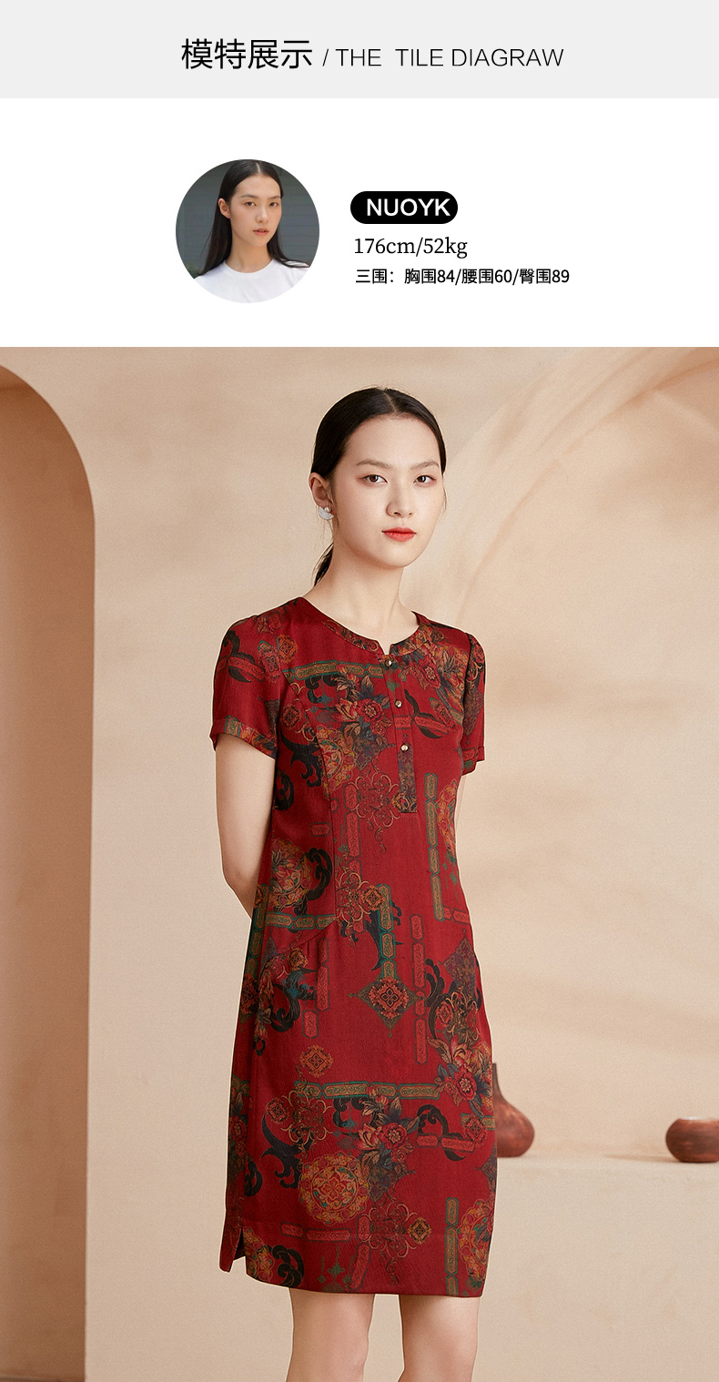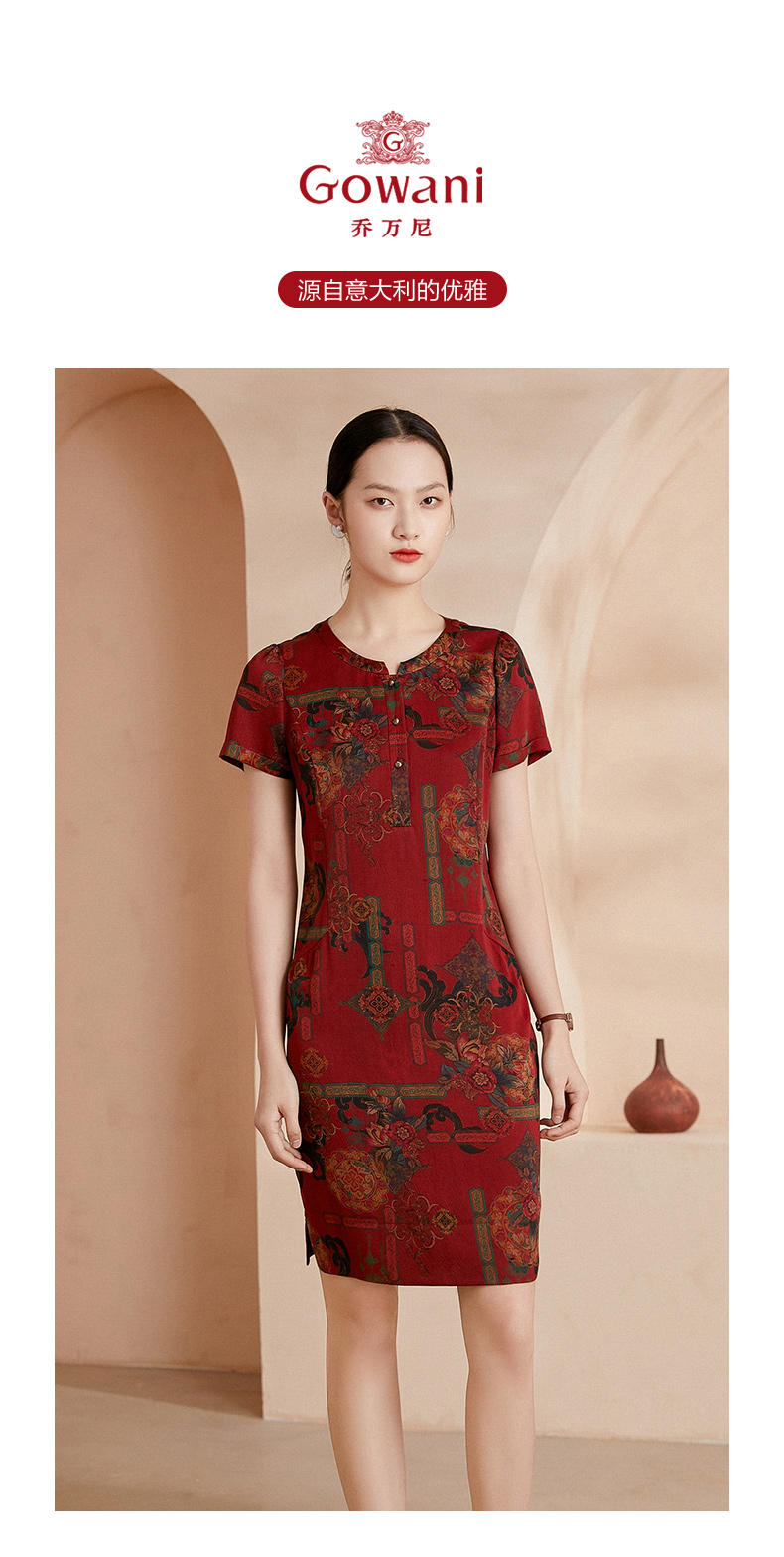 【拾花年华】【香云纱】乔万尼新款重磅19mm珍珠缎真丝连衣裙复古印花简约设计桑蚕丝EI2E716