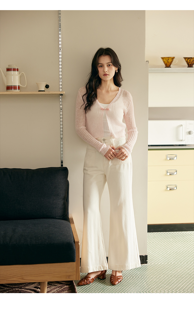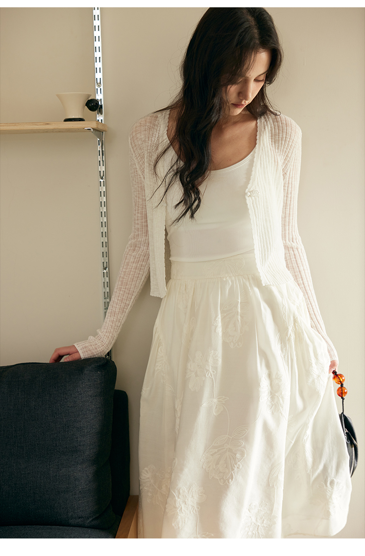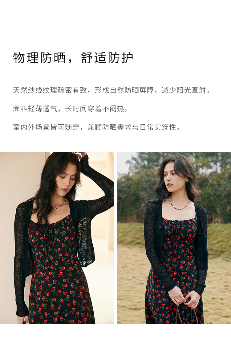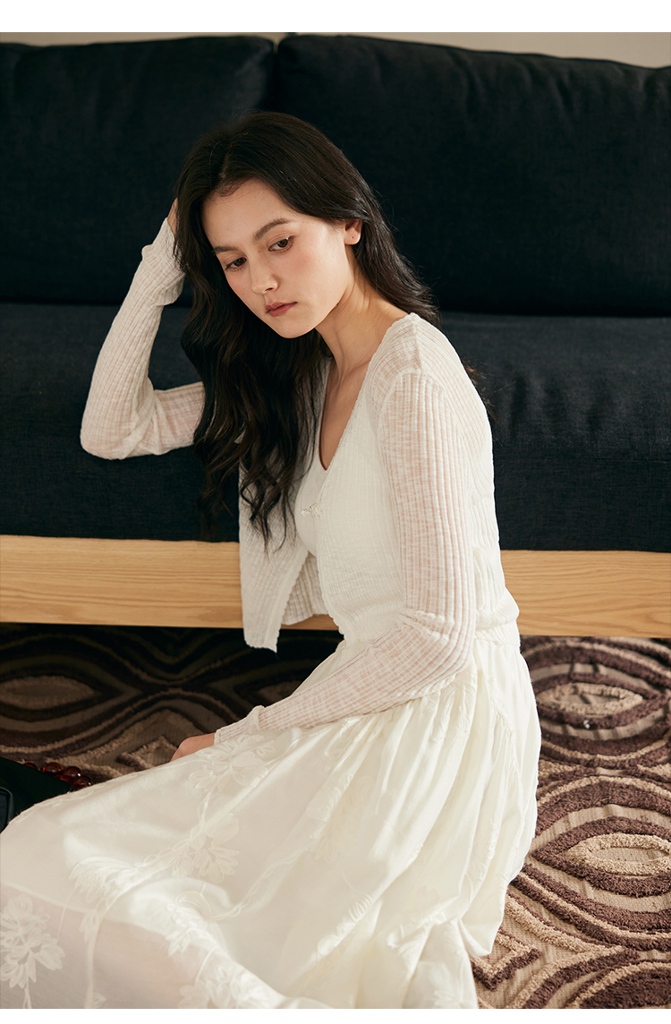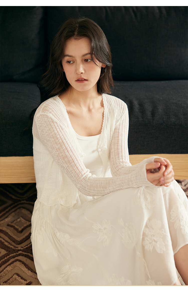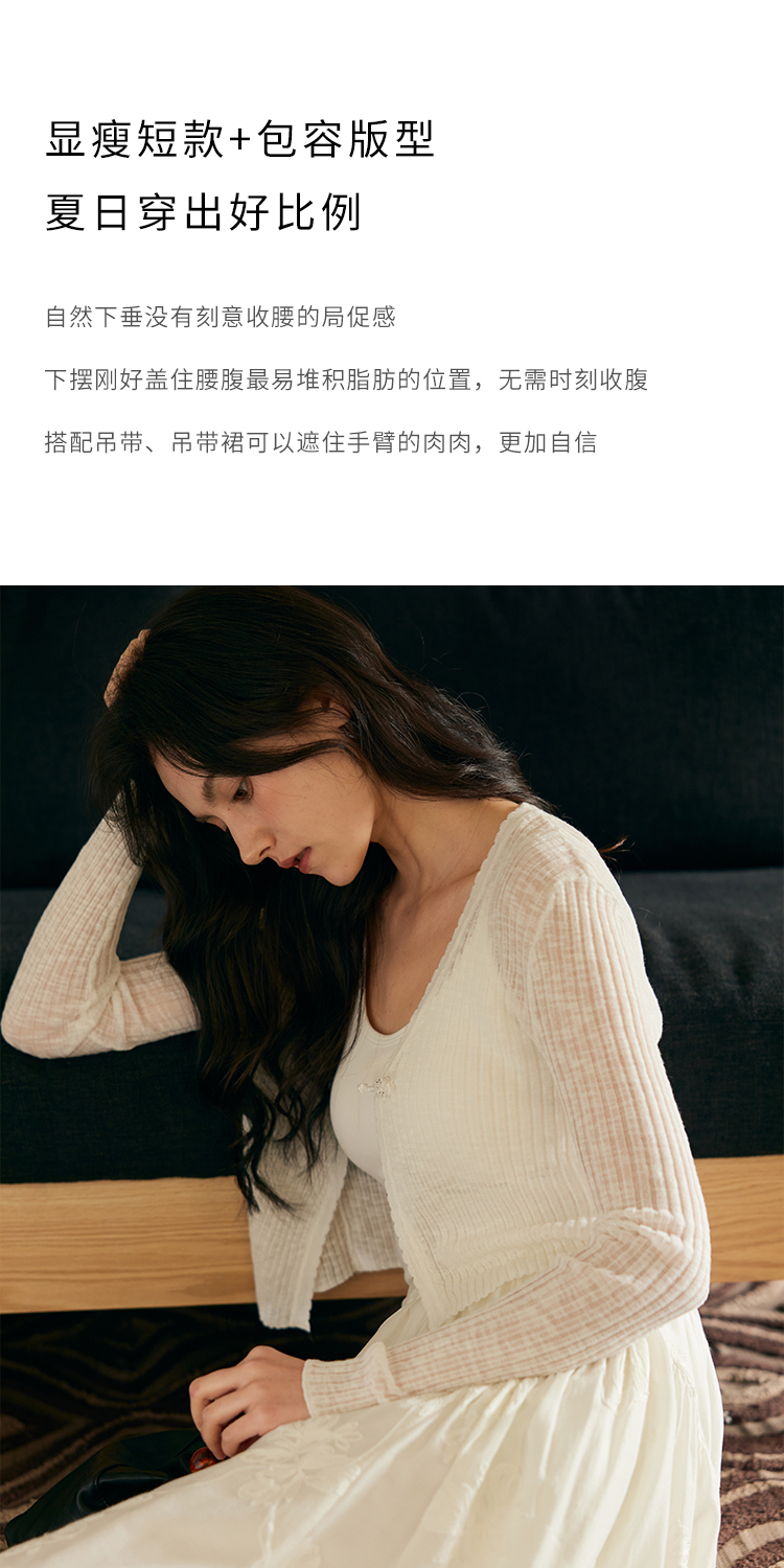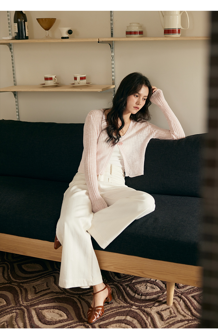 HeyDress新中式盘扣针织开衫女夏季复古V领坑条肌理防晒衫短上衣