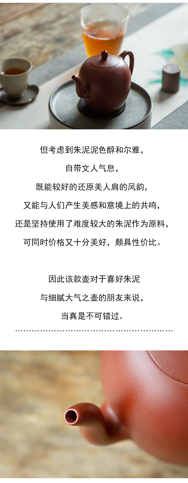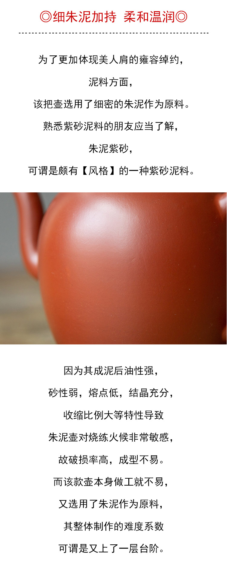 茶香记 紫砂壶 朱泥美人肩紫砂壶 细密朱泥 精工细作 大气 泡茶利器