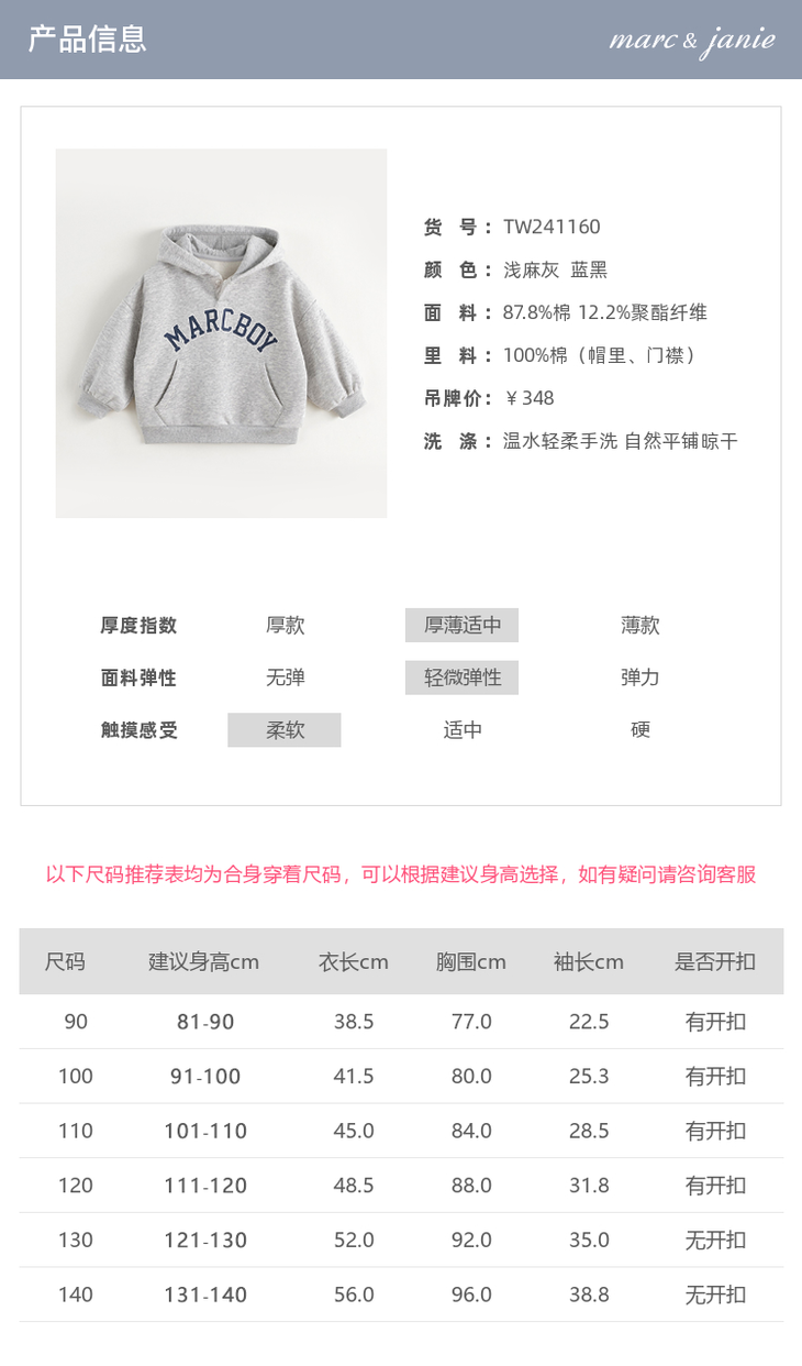 马克珍妮男童元气学院风连帽运动卫衣 儿童上衣童装春秋款241160