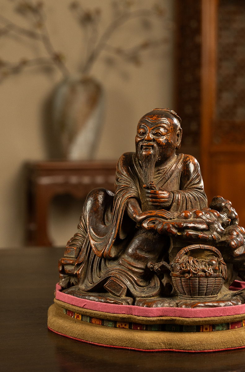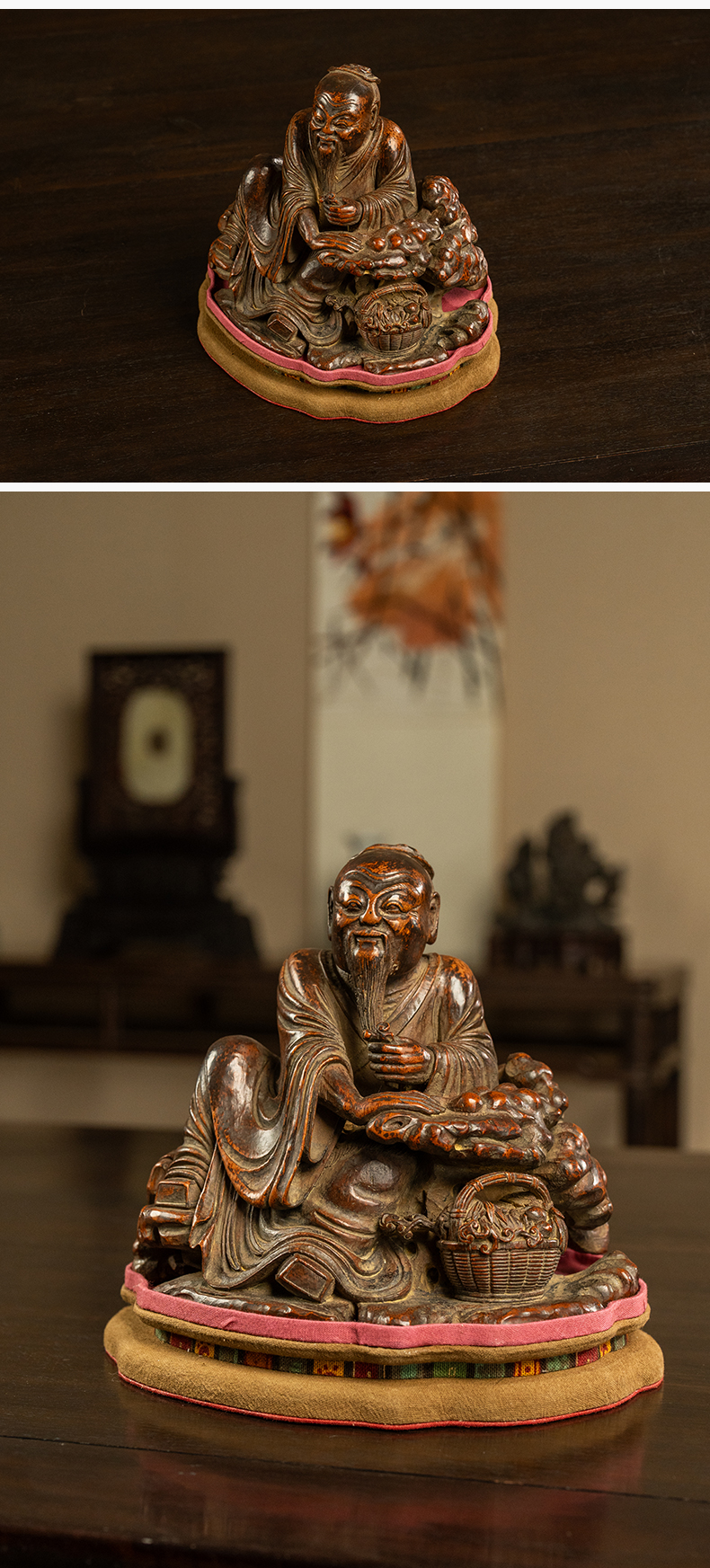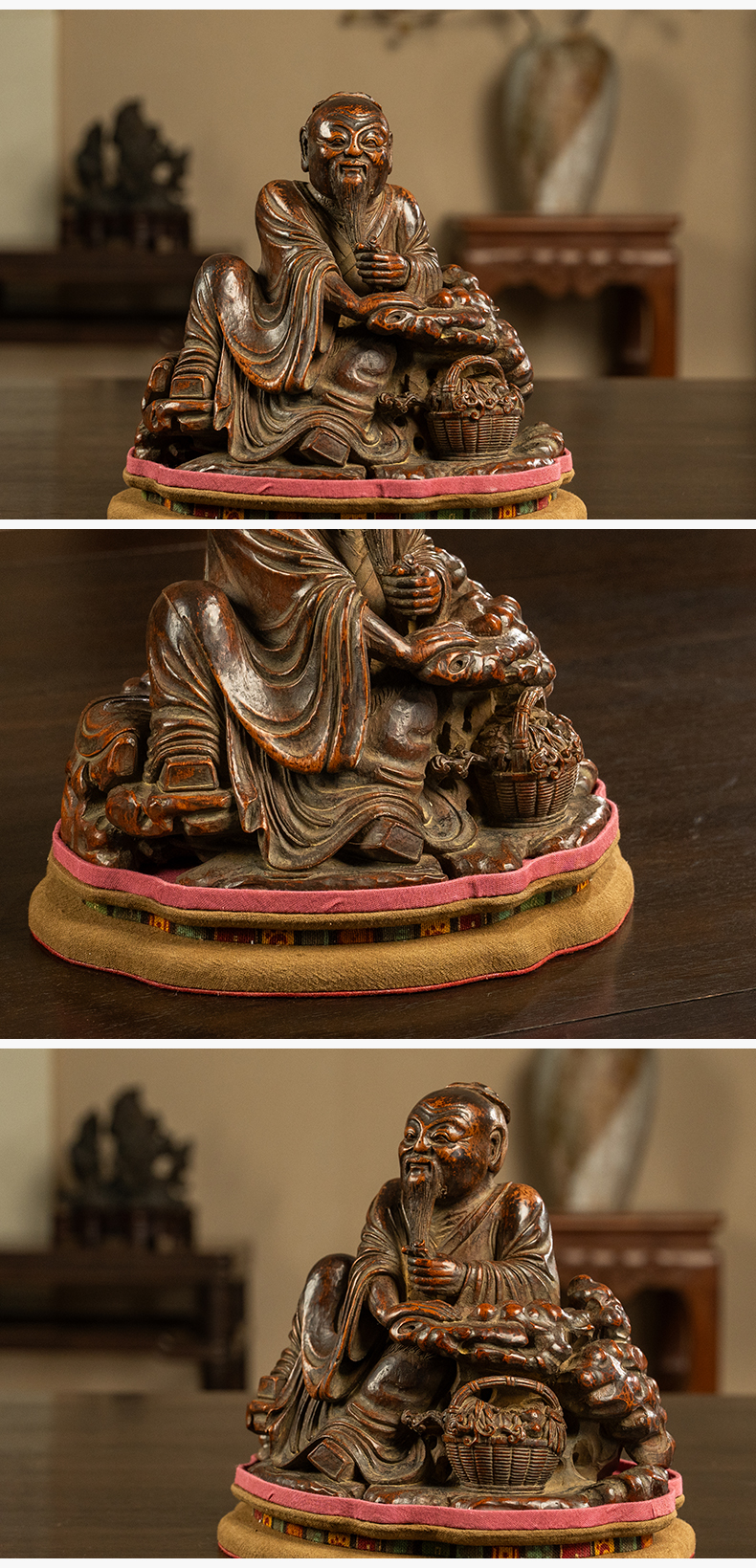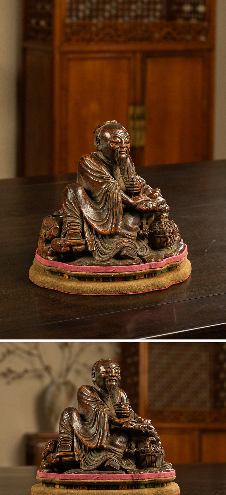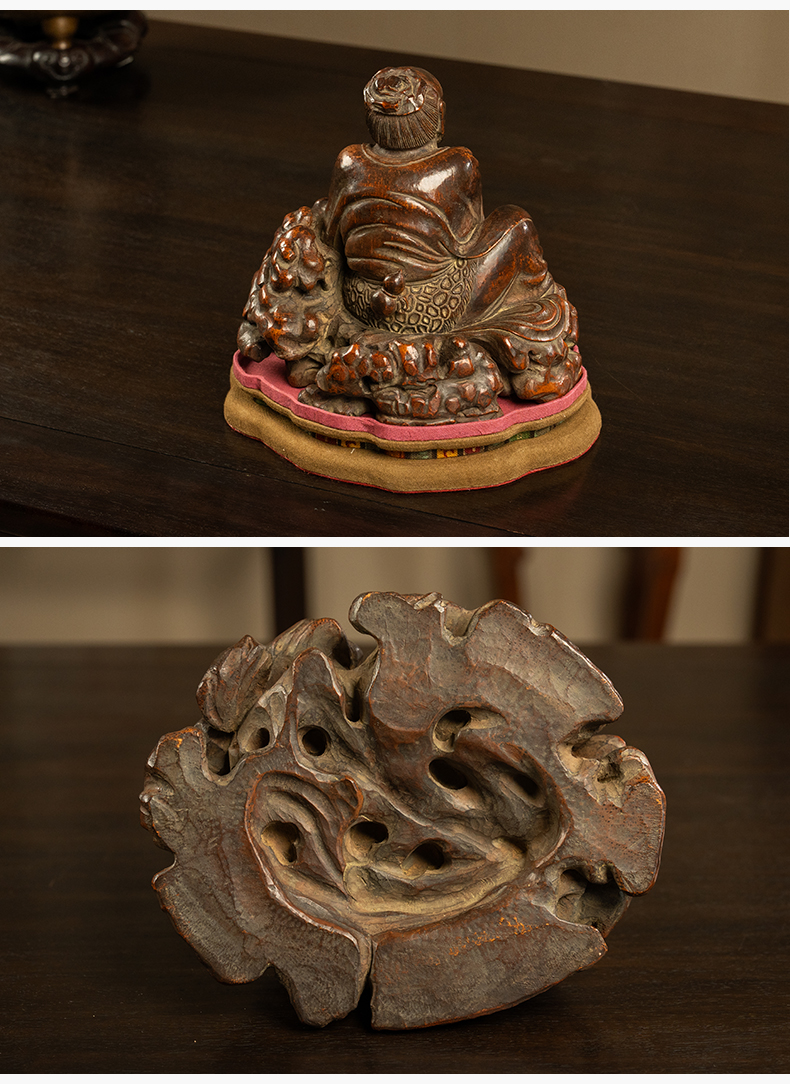清 青金石嵌绿松石莲花盖盒(红木座)