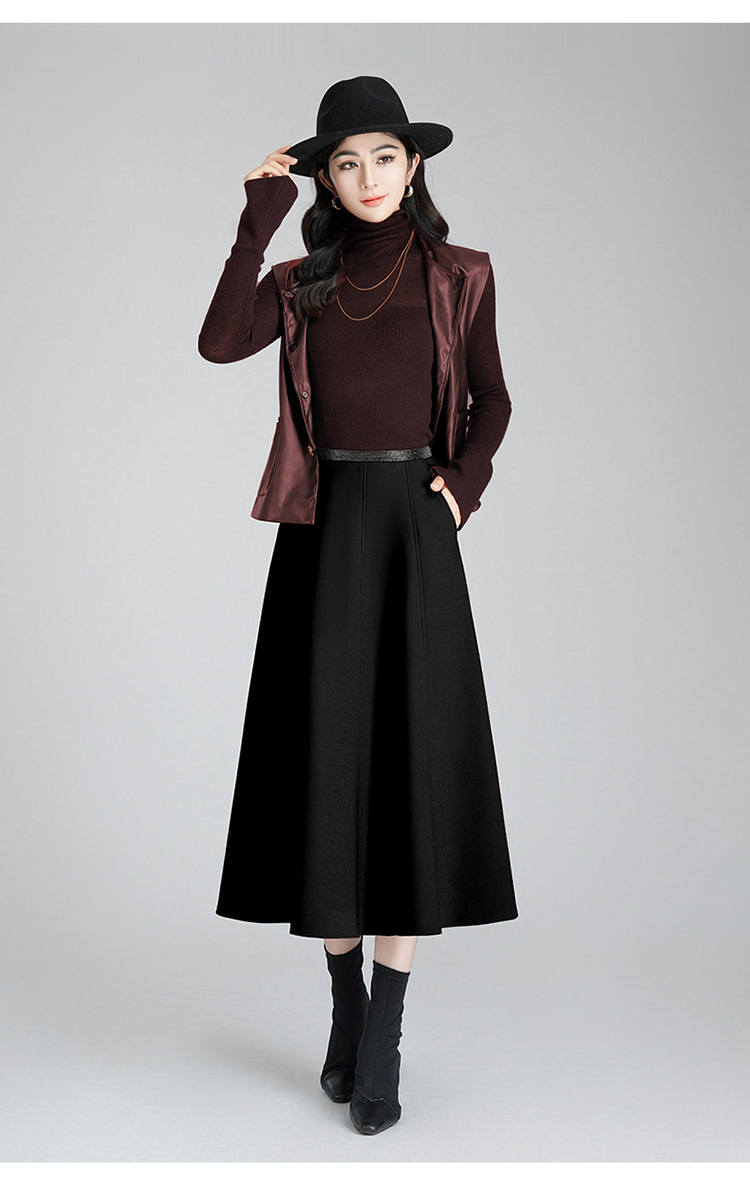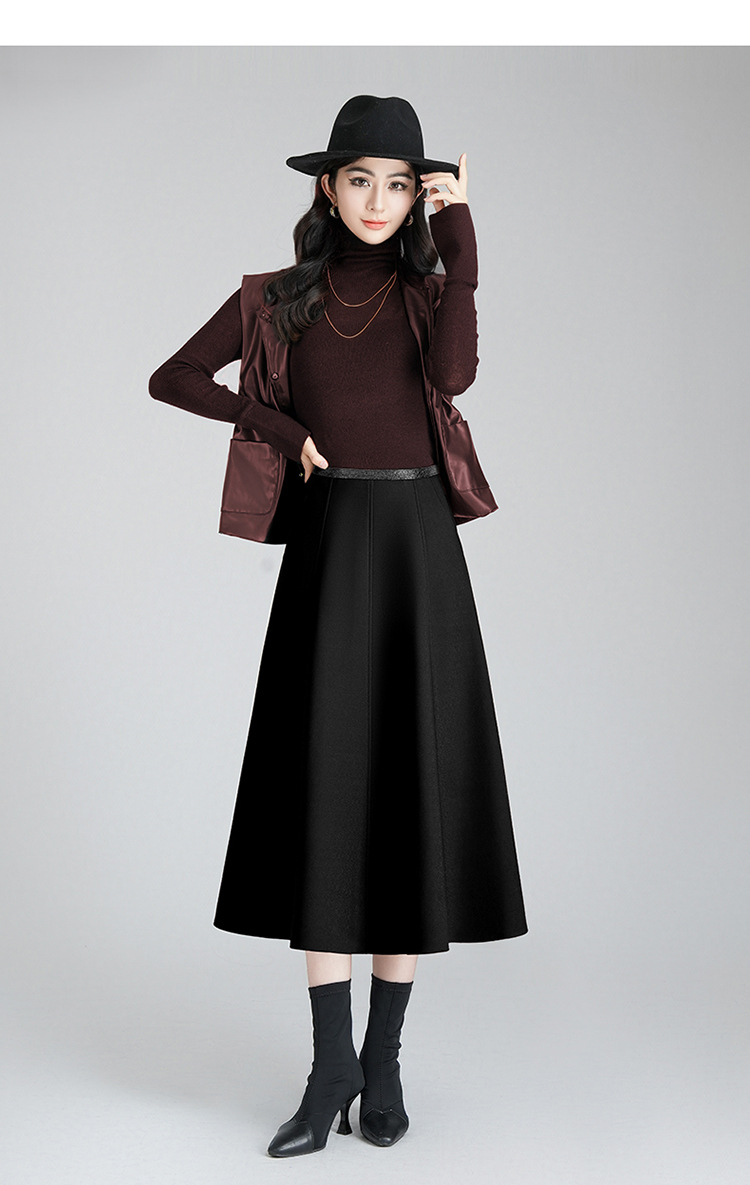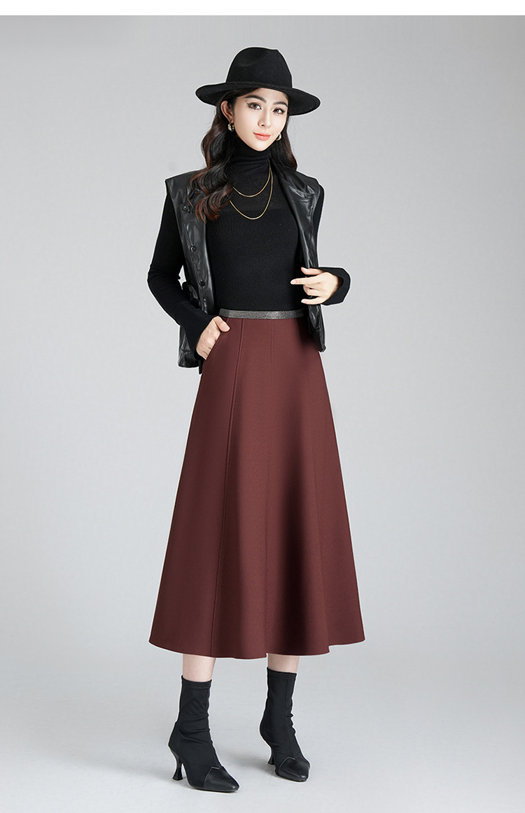 MYX-YGLR-7090-L垂感修身简约A字大摆裙高腰显瘦时尚半身裙2024年秋冬款气质伞裙
