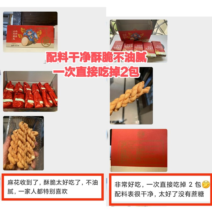 小麻花不含固化剂,山药粉的含量高,快递途中会有碎的情况,属于正常现象!介意慎拍!