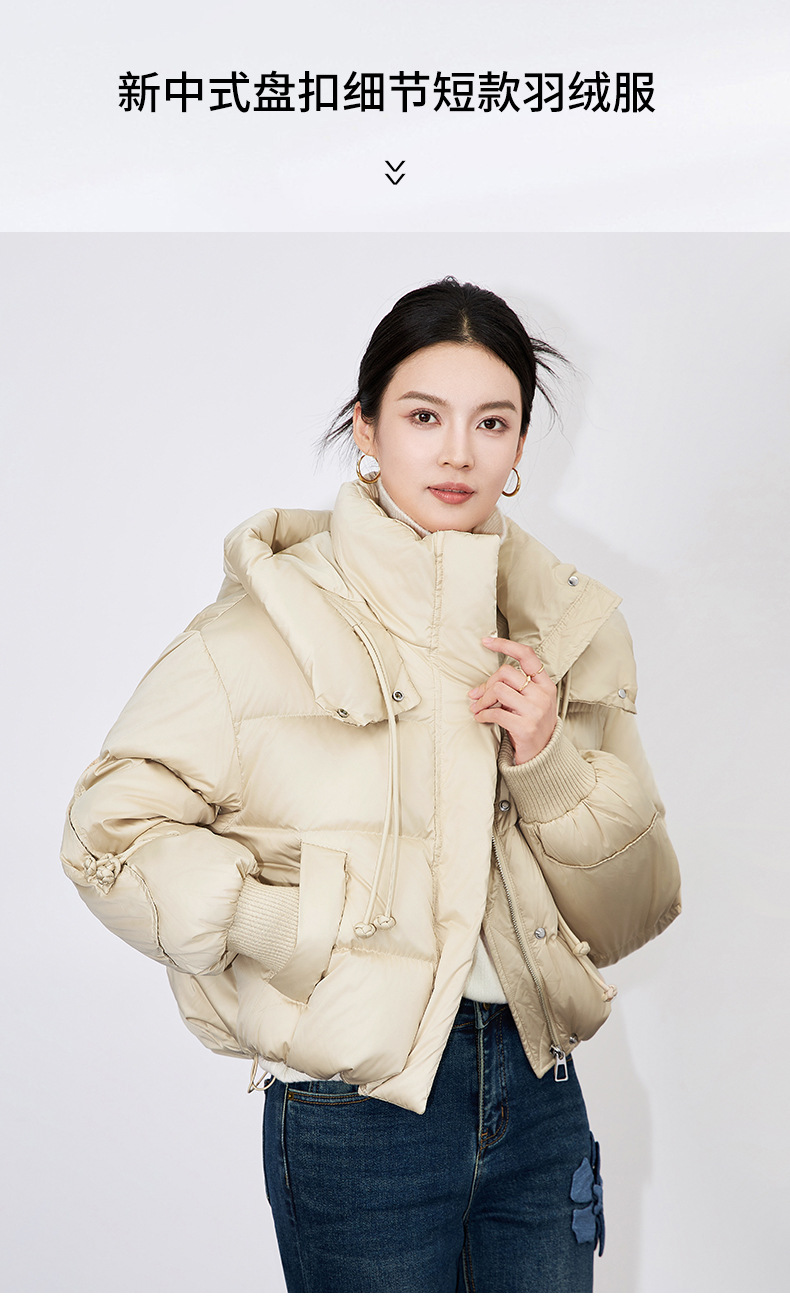 【高货wl】全新升级【铂金会员551/天猫749/差价198】(82108) 洛诗琳冬季新款新中式加厚高领长袖保暖短款白鸭绒羽绒服