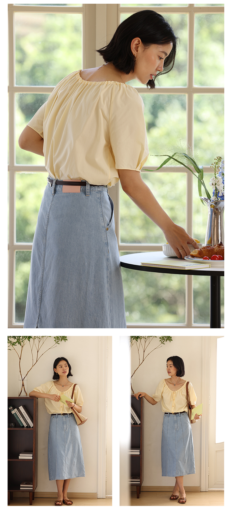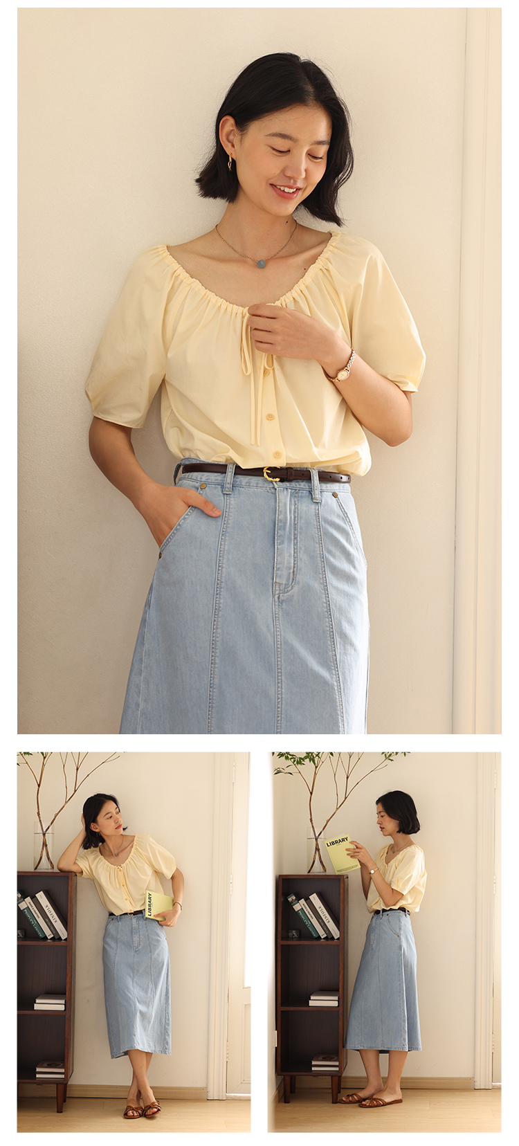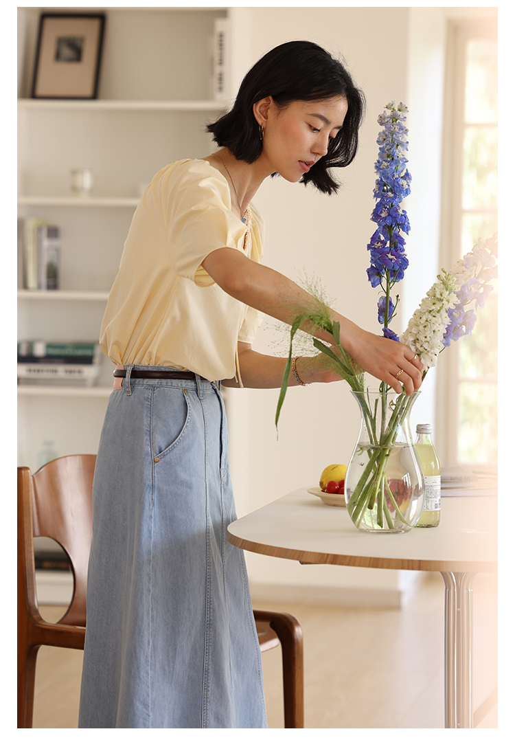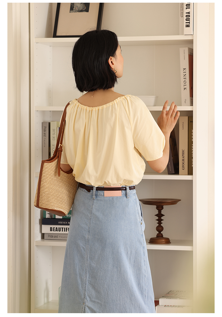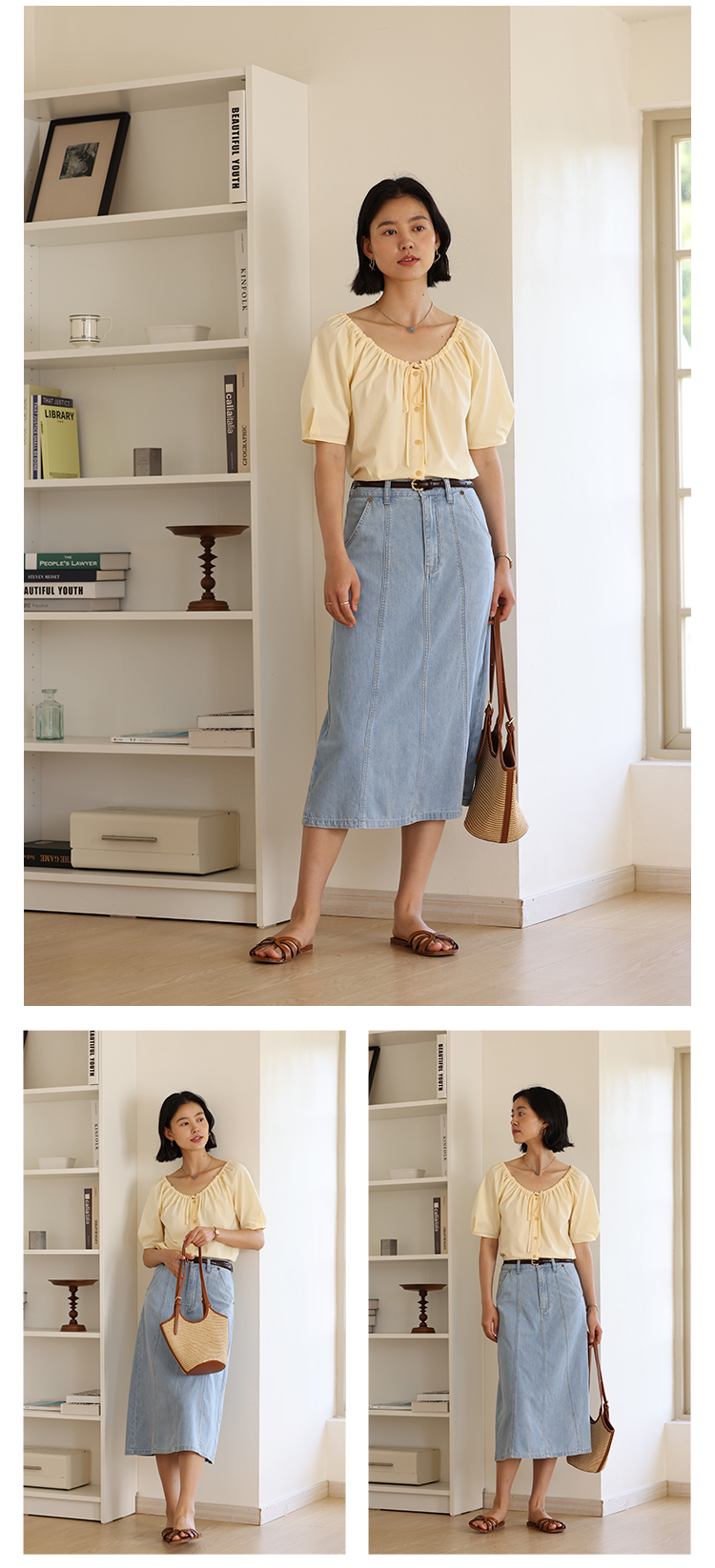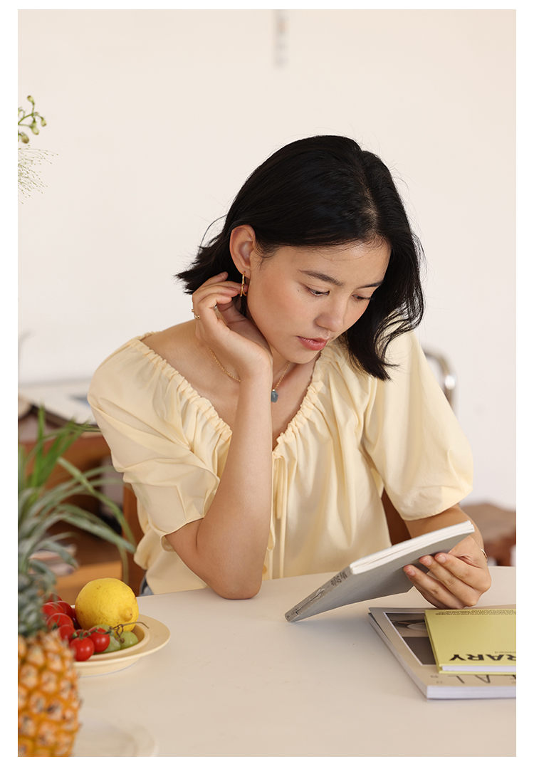 HeyDress法式圆领黄色衬衫女夏季复古宽松慵懒感小衫浪漫短袖上衣