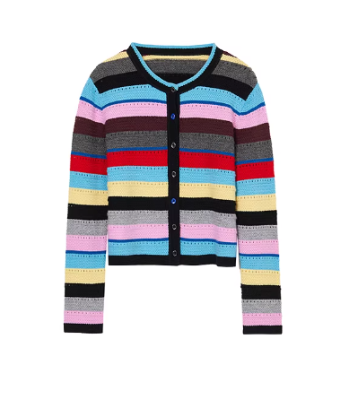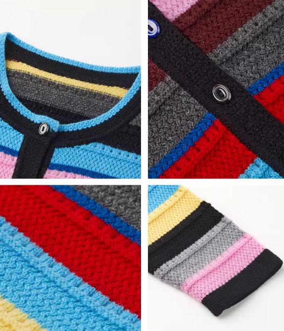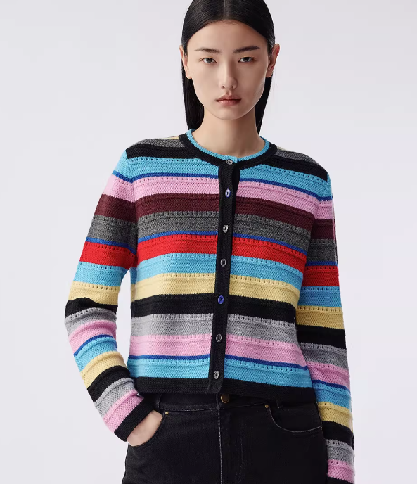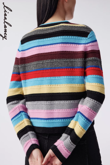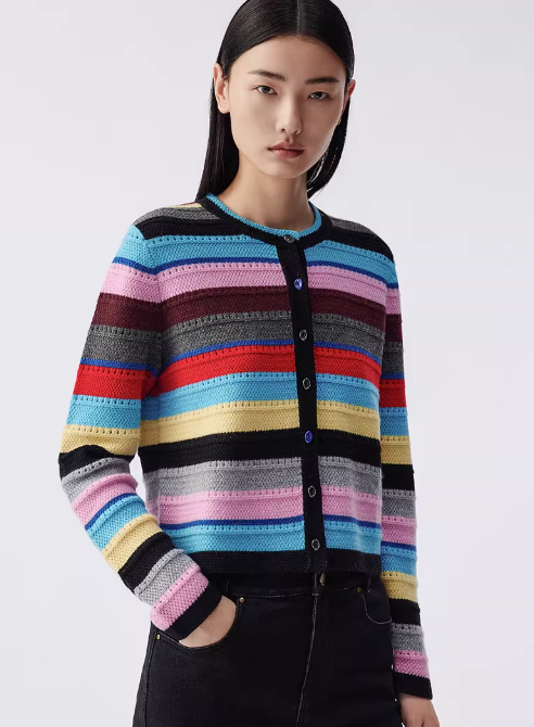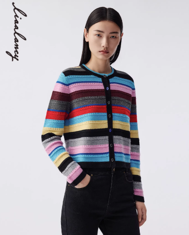 朗姿 复古彩色条纹针织开衫LAJH02KCD458