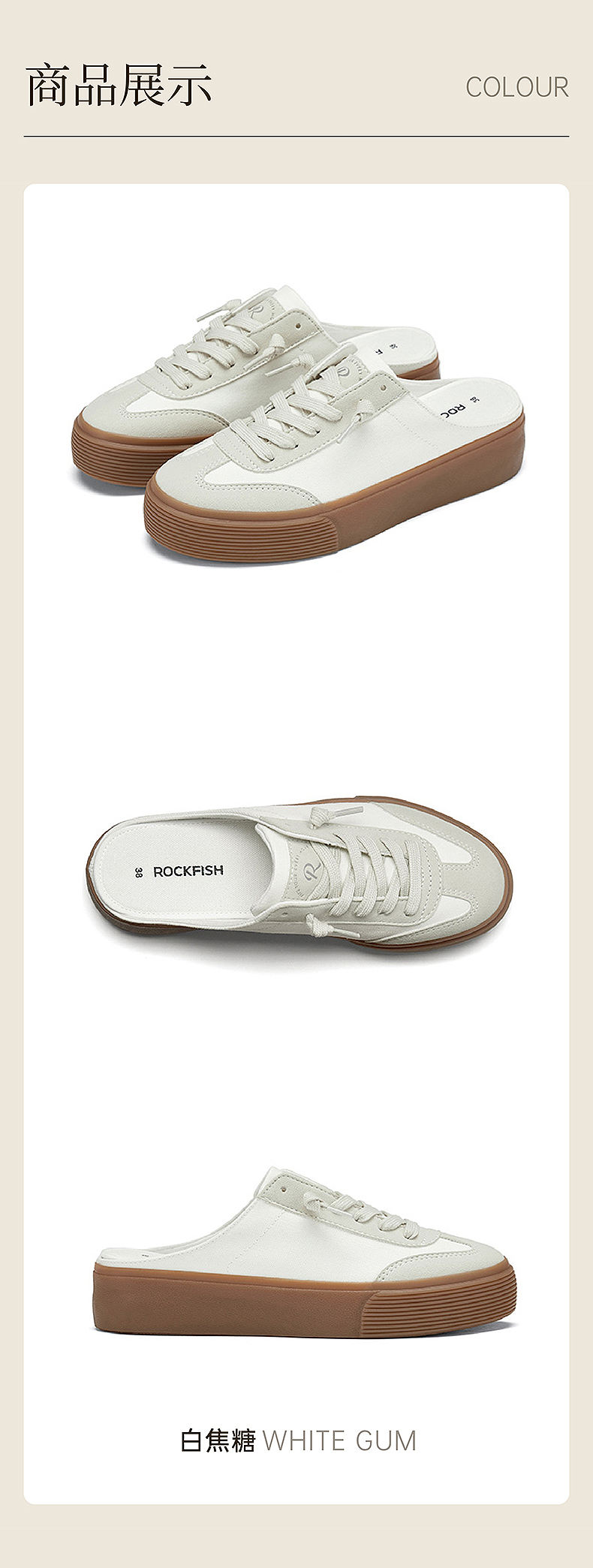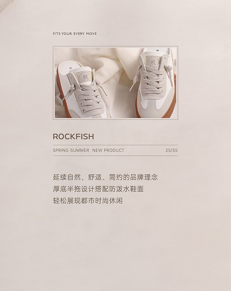 Rockfish 英国901不怕湿包头半拖外穿厚底增高德训帆布鞋凉拖鞋