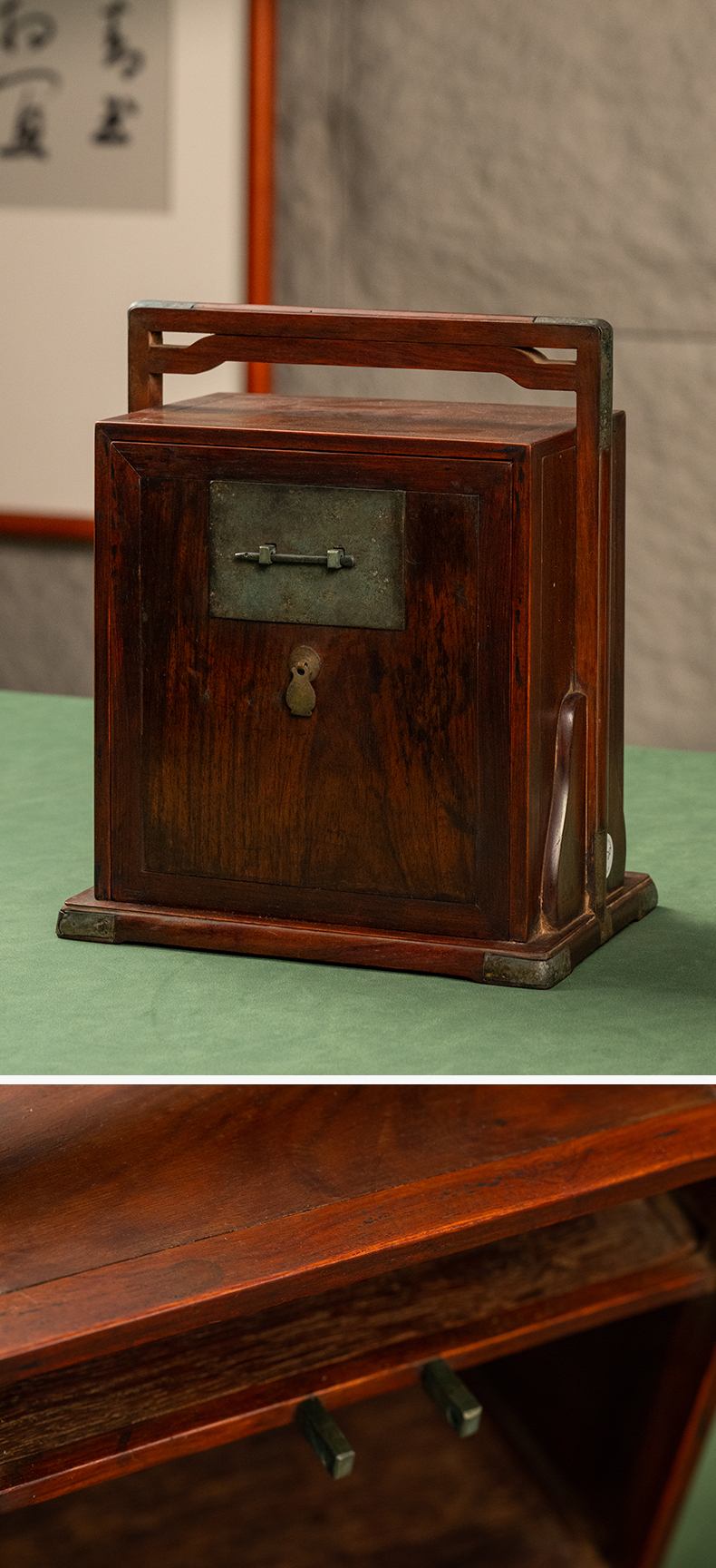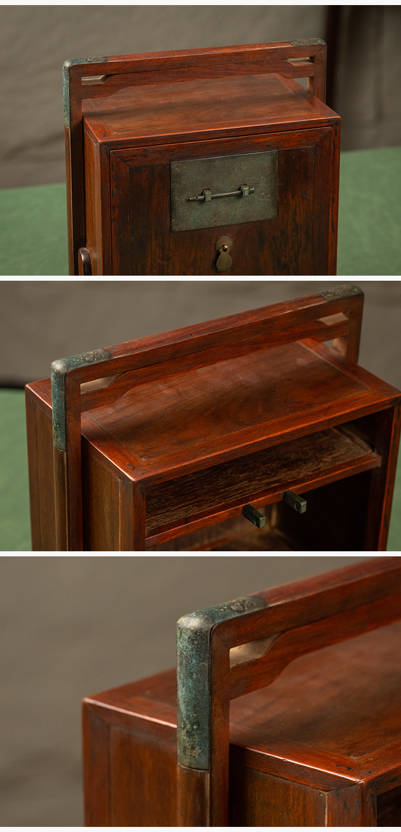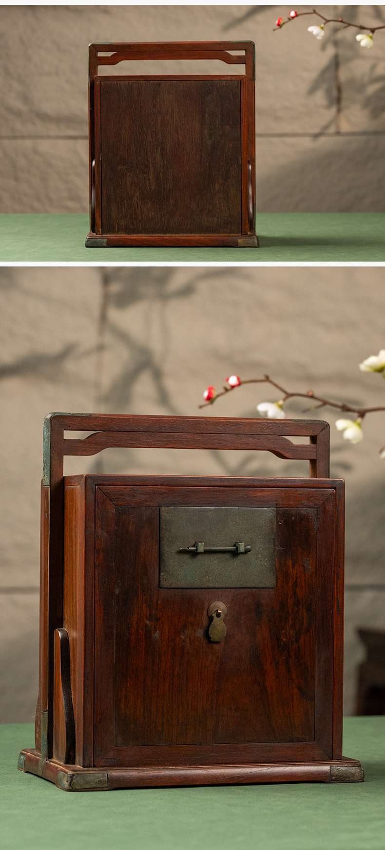 清 黄花梨镶竹丝编四抹门亮格柜摆件