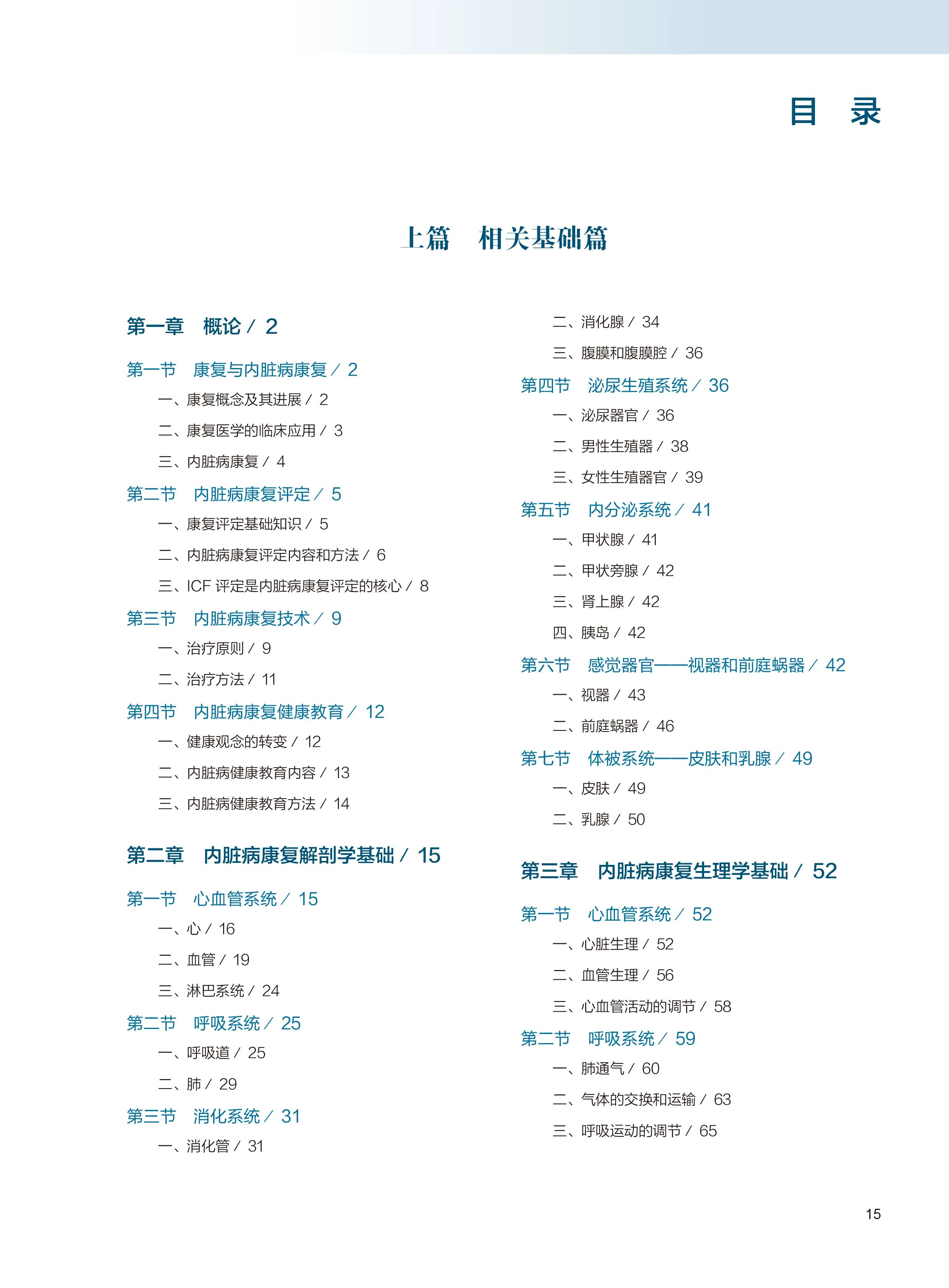 本书详述了适合内脏病患者居家康复、远程康复的中西医结合的有效方法,深度融合健康教育和主动健康的最新理念,引导患者从被动接受治疗转向主动参与健康管理,借助智能监测设备、运动康复指导、营养干预等方案,培养健康生活习惯,增强机体自我修复能力,实现从疾病治疗到健康维护的全面转变,从而提升康复效果与生活质量,打造可持续的健康生活方式。