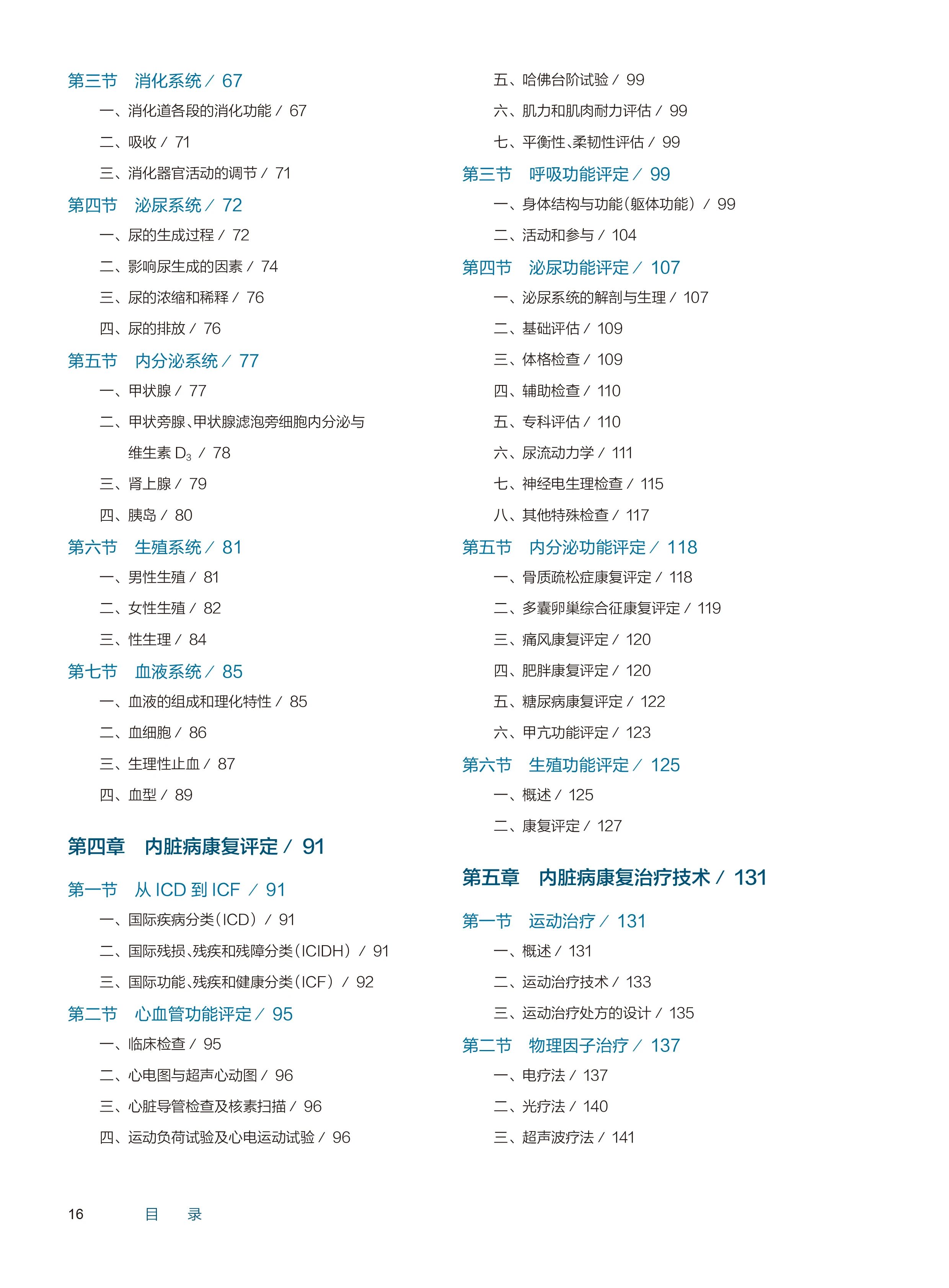 内脏病康复学(第2版)秉承第1版的编写思路,围绕不同内脏疾病,介绍国际上成熟的内脏病康复的常用方法,包括康复评估和治疗技术;增加近年来的新技术和进展。全书内容分为上下两篇,上篇为内脏病康复基础篇,包括有关脏器的解剖、生理知识、康复及康复医学的概念、团队构成及工作方式,系统介绍与内脏病有关的常用评定方法和康复治疗技术;下篇为内脏病康复应用篇,介绍不同系统器官、具体疾病的康复,包括临床可以开展的康复评定技术和康复治疗方法。