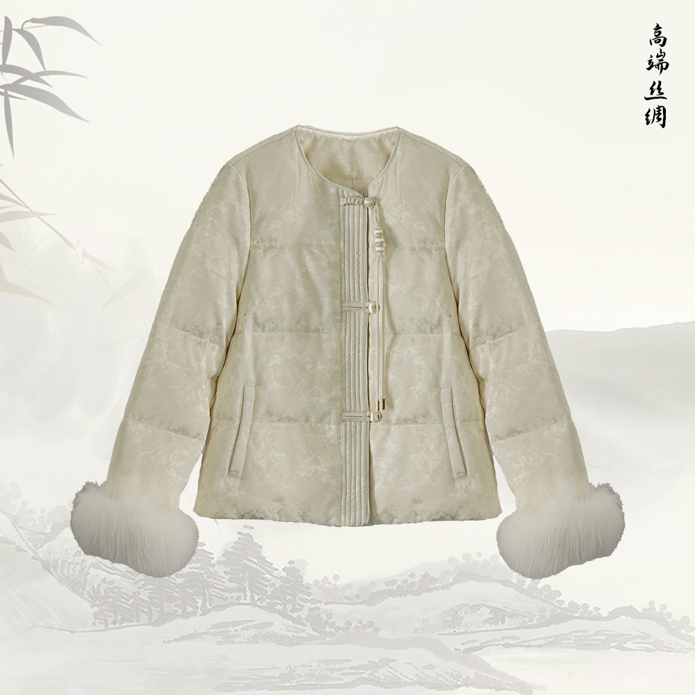 【咕咕同款】NANSONGSILK/NS新中式百搭国风新中式圆领盘扣毛毛袖羽绒服Y49D61685Z南宋