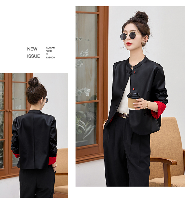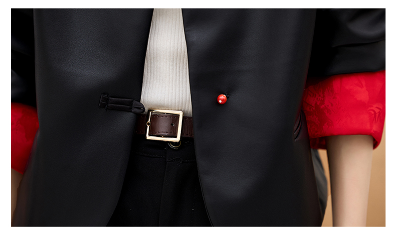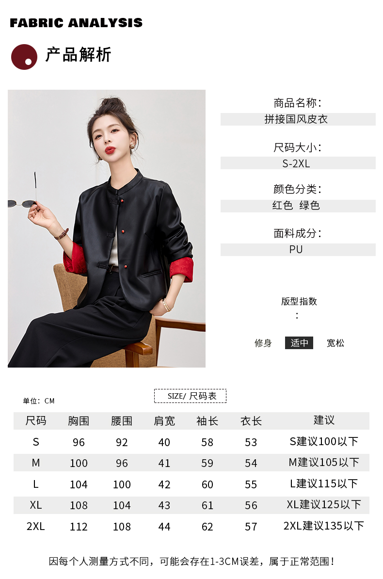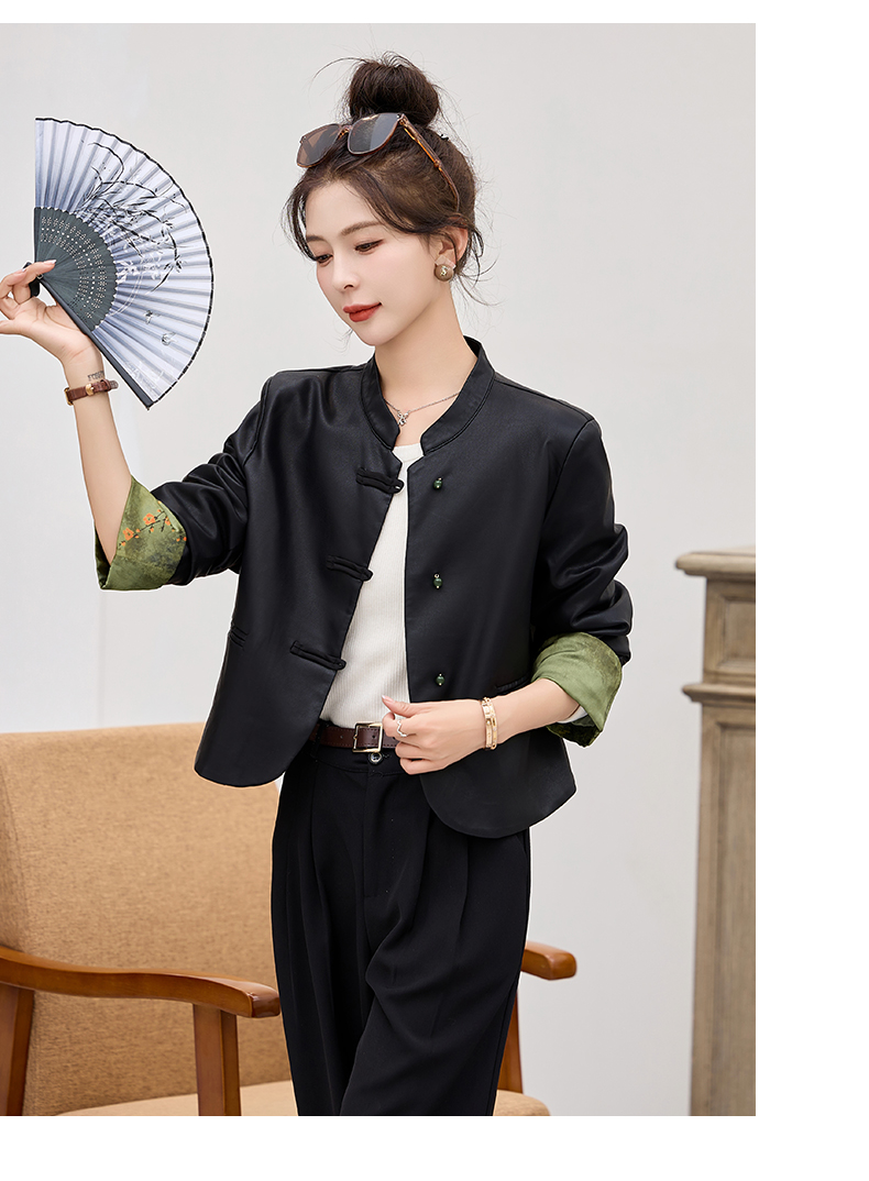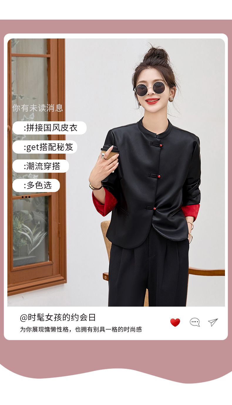 国风新款,春装立领仿绵羊皮夹克皮衣新中式PU皮短款外套HR-CLYZ2469