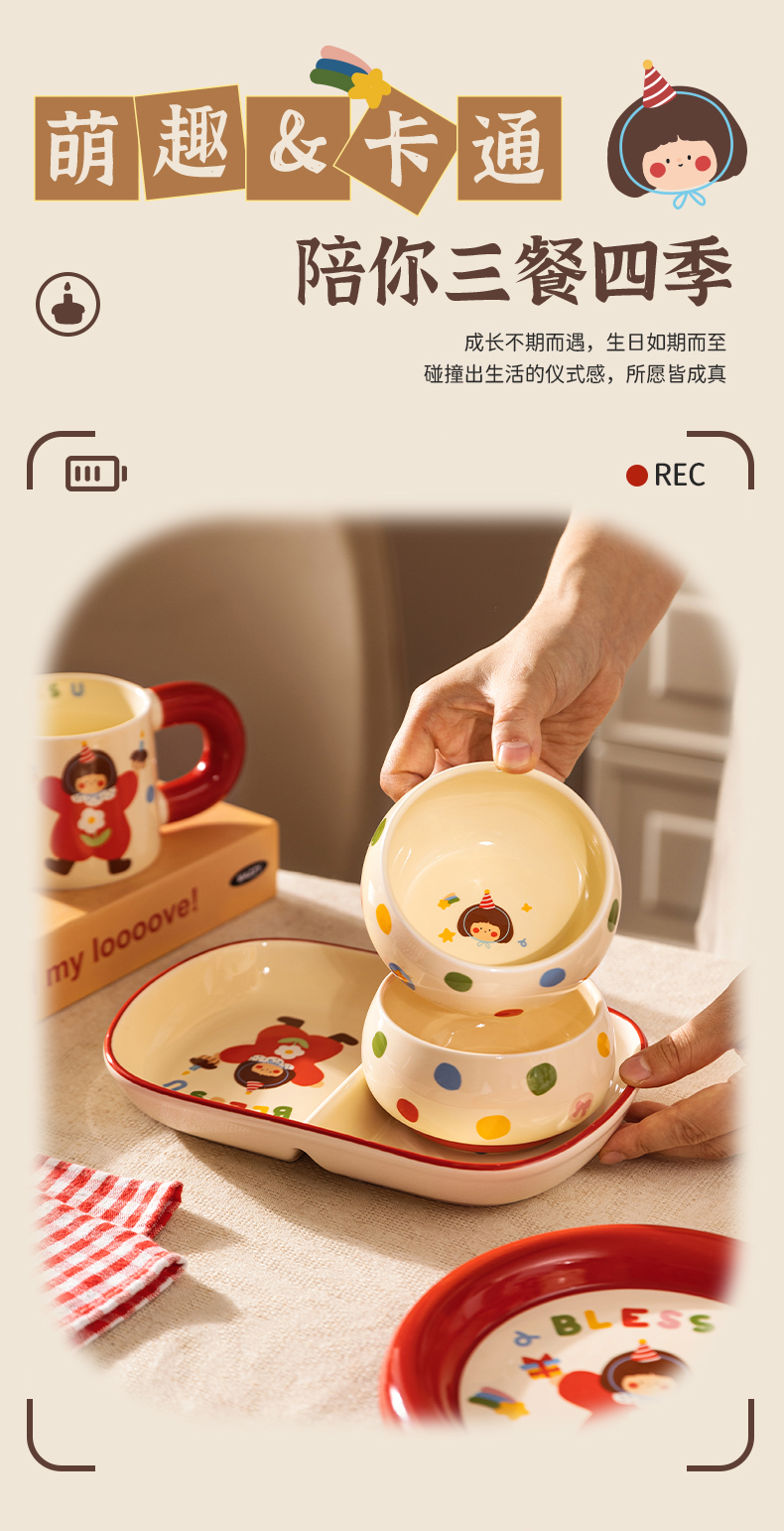 摩登主妇陶瓷饭碗可爱餐具家用2024新款高颜值盘子个人专用泡面碗