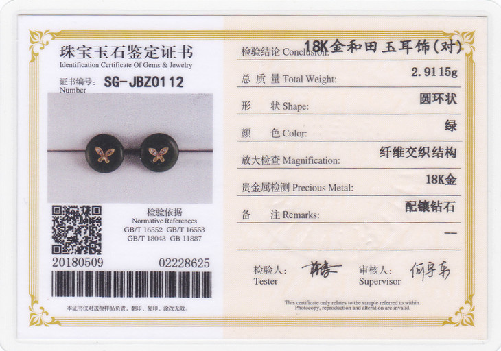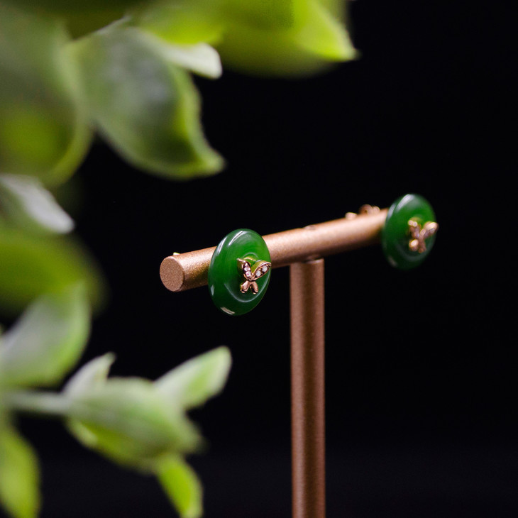 18K玫瑰金和田玉(碧玉)平安扣耳钉