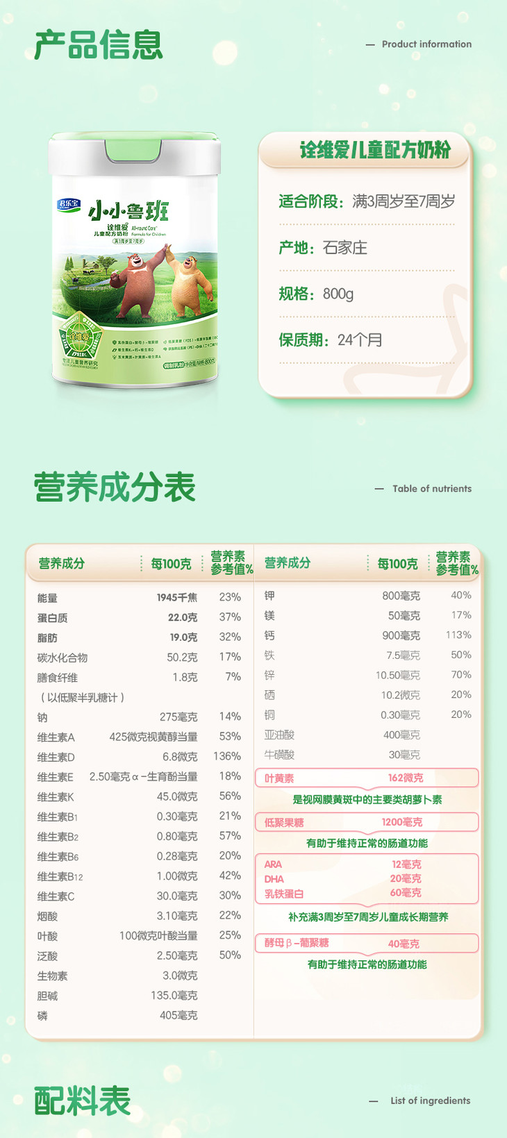 君乐宝小小鲁班诠维爱儿童成长配方奶粉4段 800g