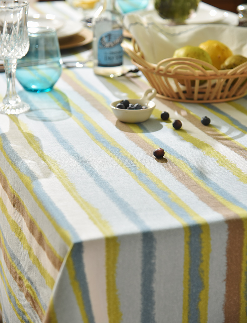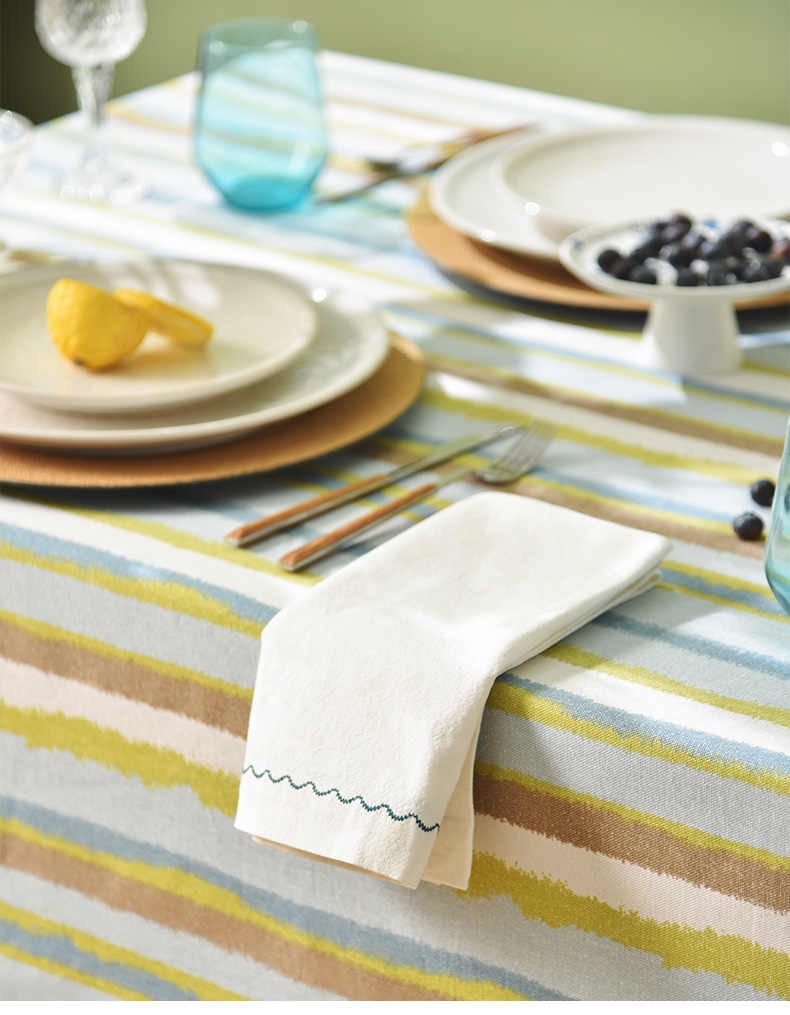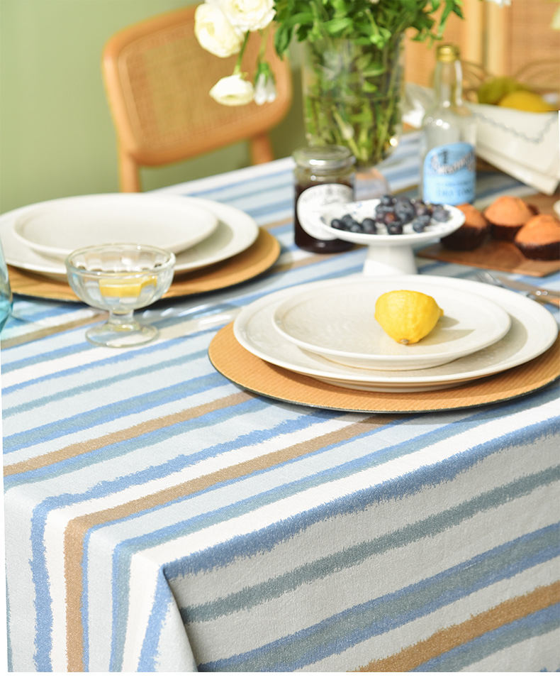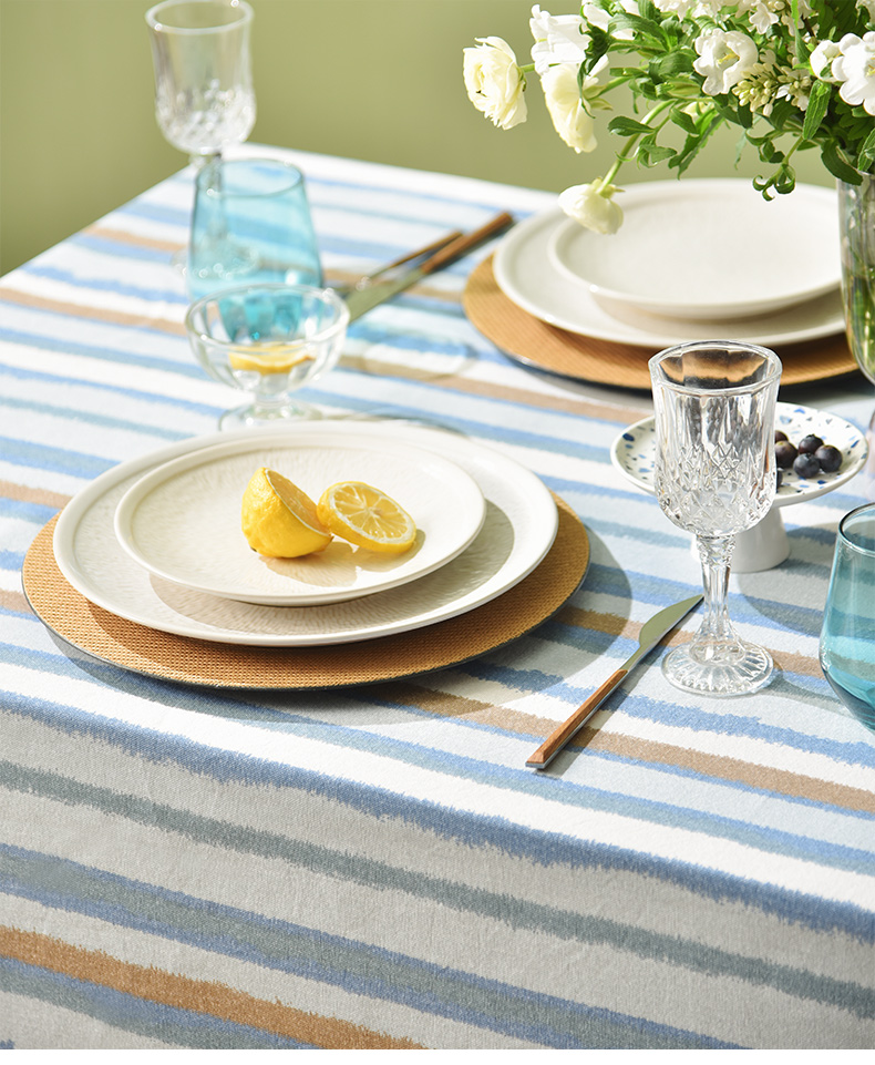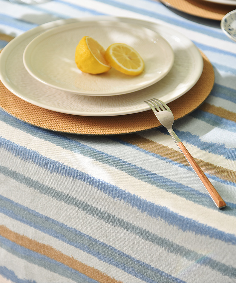 珊瑚条纹系列桌布纯棉方形台布