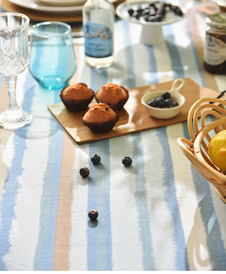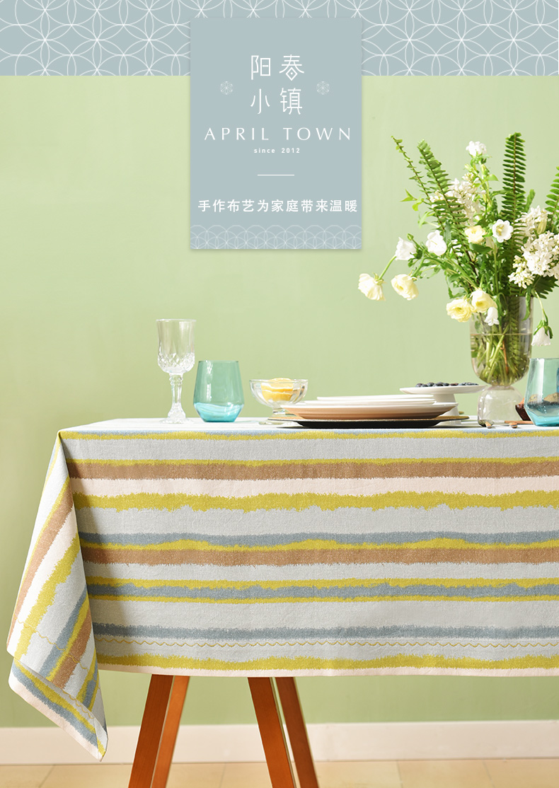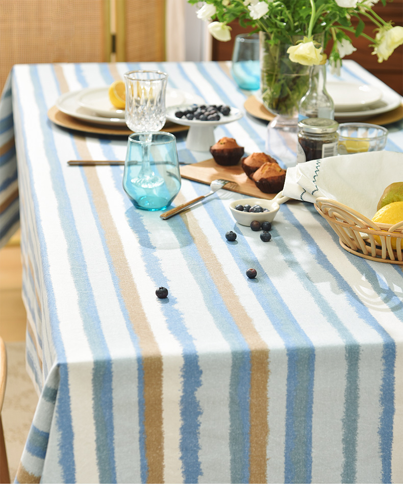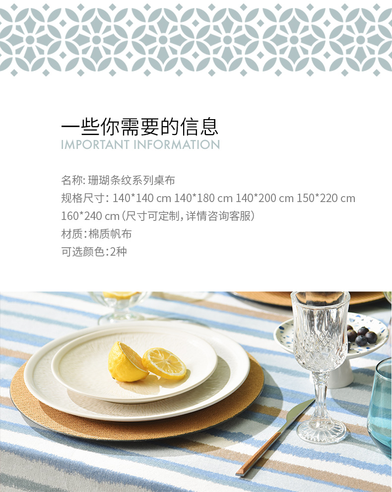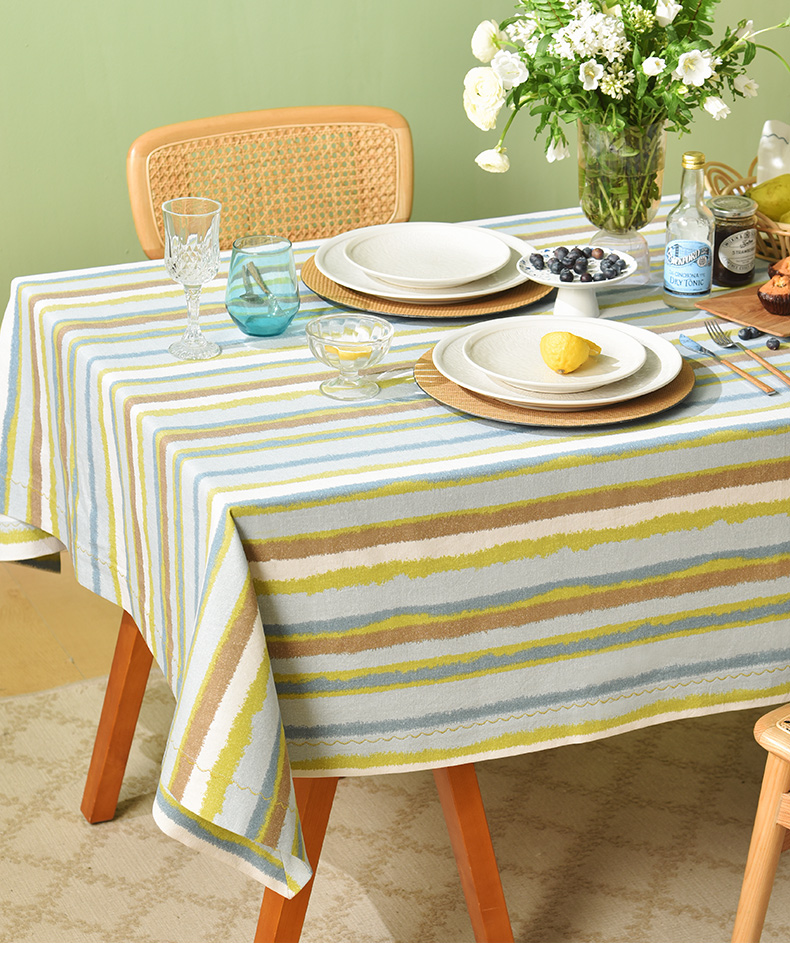 珊瑚条纹系列桌布纯棉方形台布