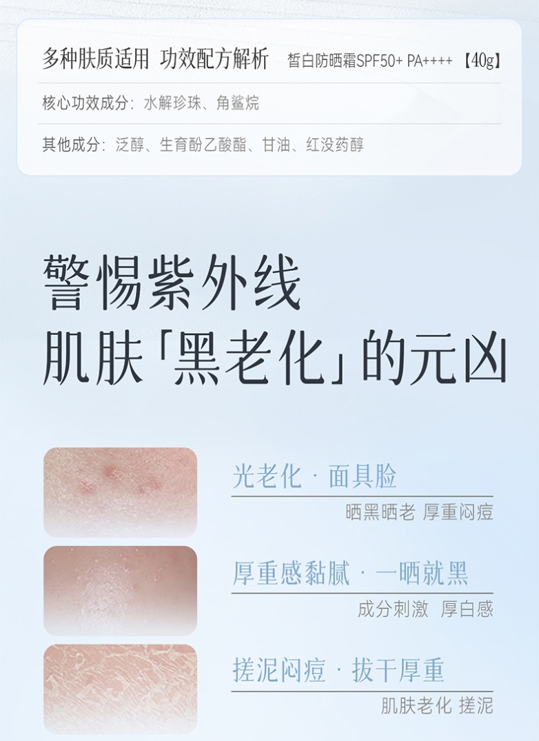 小白伞皙白防晒霜SPF50+/PA++++2盒起赠海葡萄补水面膜1盒