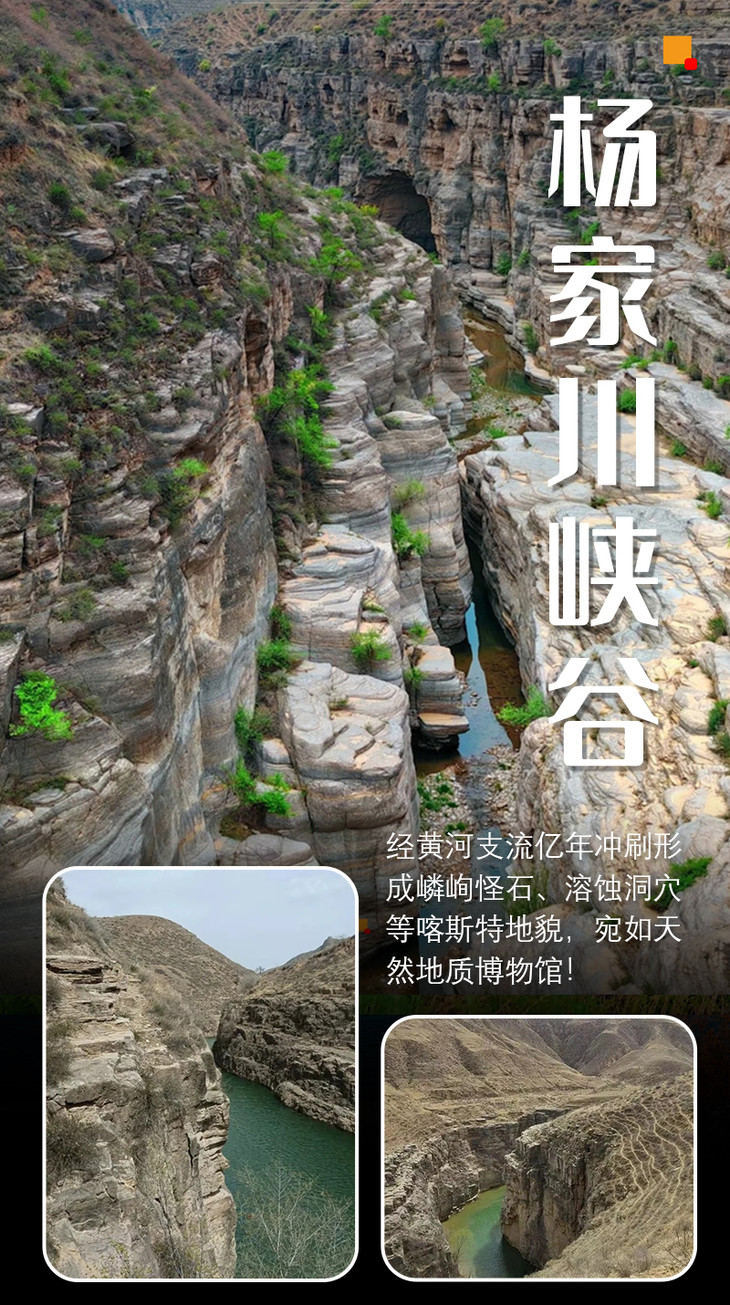 杨家川大峡谷,清水河的自然瑰宝,以其险峻的峭壁和谷底的奇石著称。峡谷深处,山泉潺潺,长城古堡点缀其间,构成了一幅动人的自然画卷,让人赞叹大自然的壮丽与神秘。