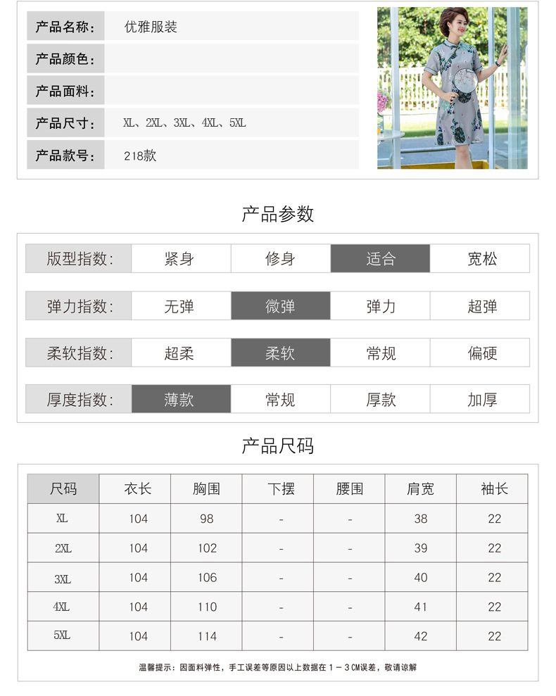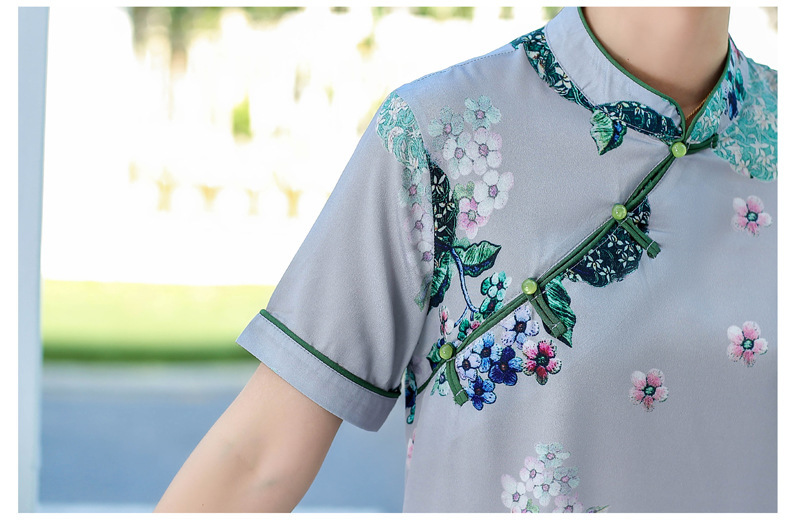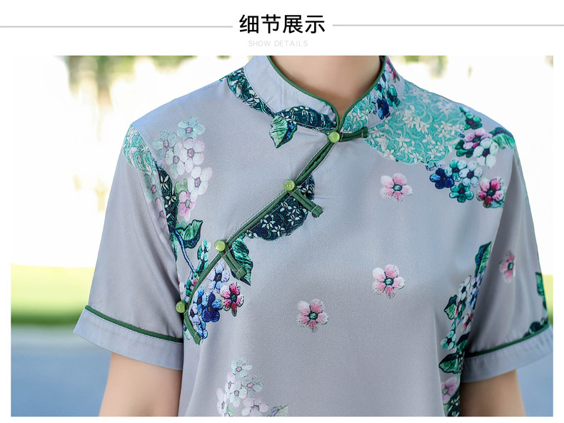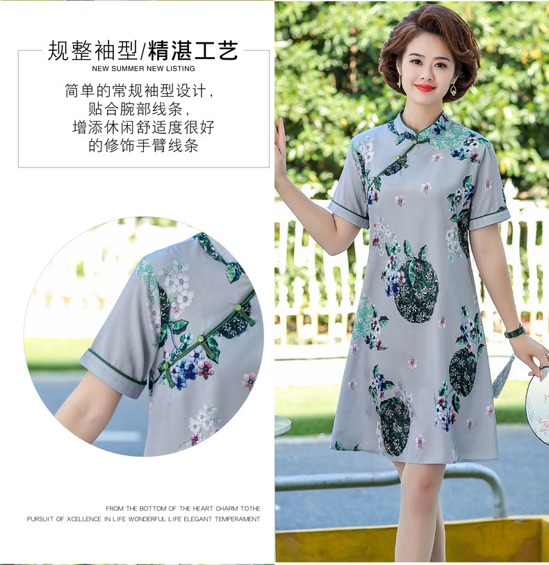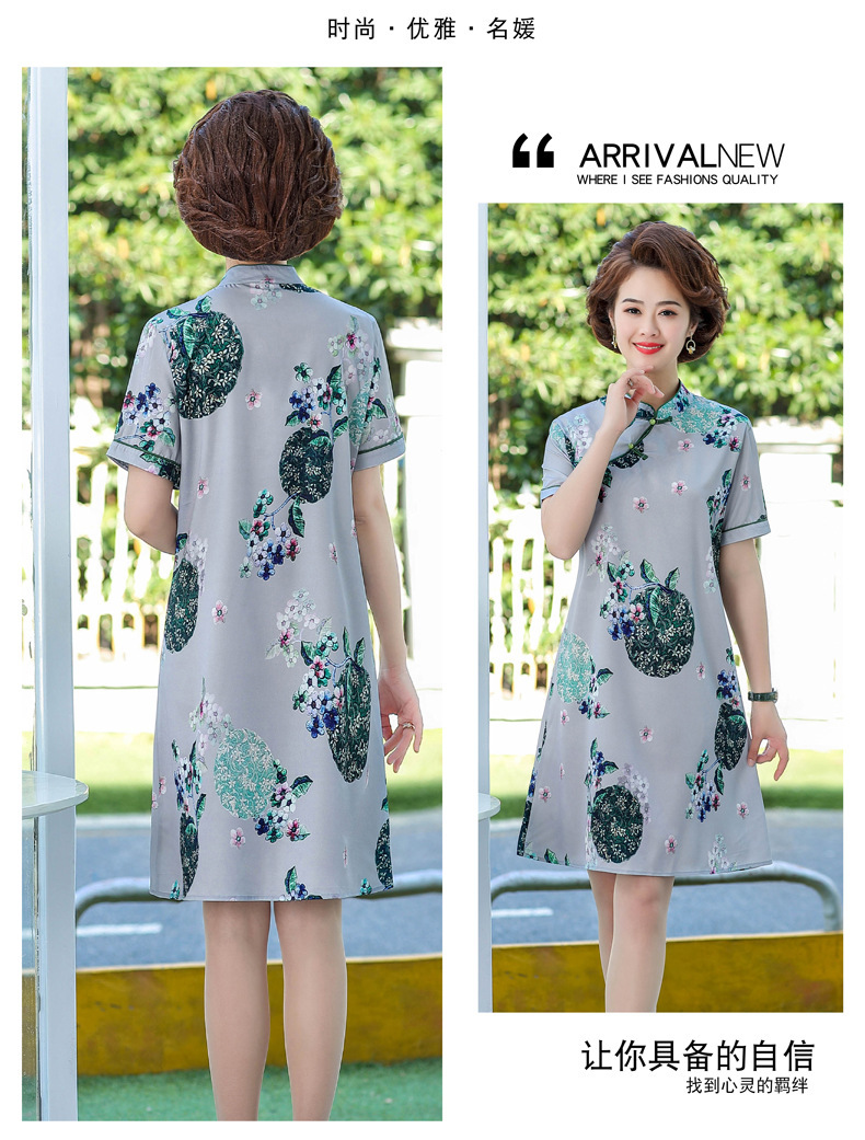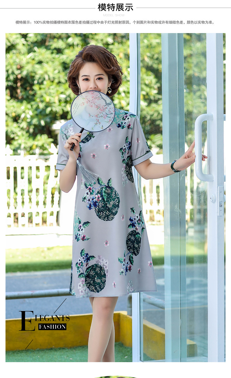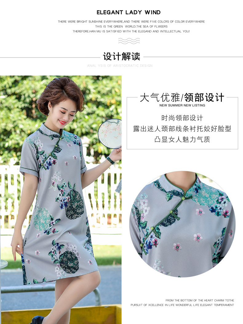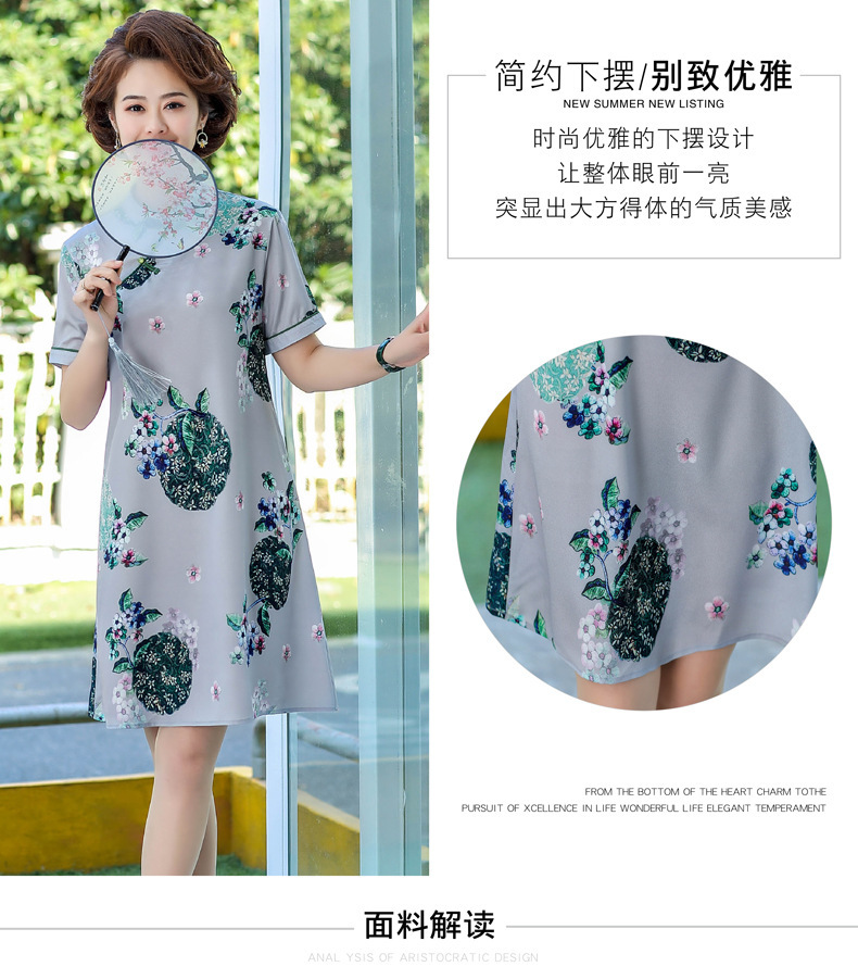 XK-CY1218新款旗袍妈妈装印花典雅复古短袖连衣裙WY