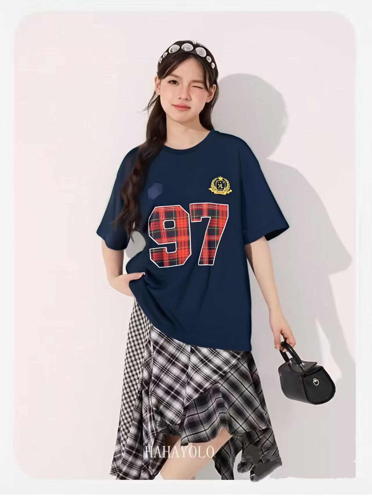 七夕福利-NO退~情侣潮牌100%棉红格97短袖T恤-喜出