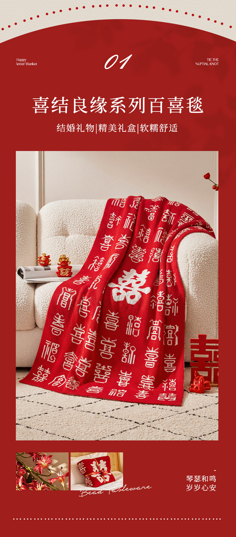 摩登主妇百喜毯新婚结婚订婚礼物送新人闺蜜高级感实用毯子伴手礼