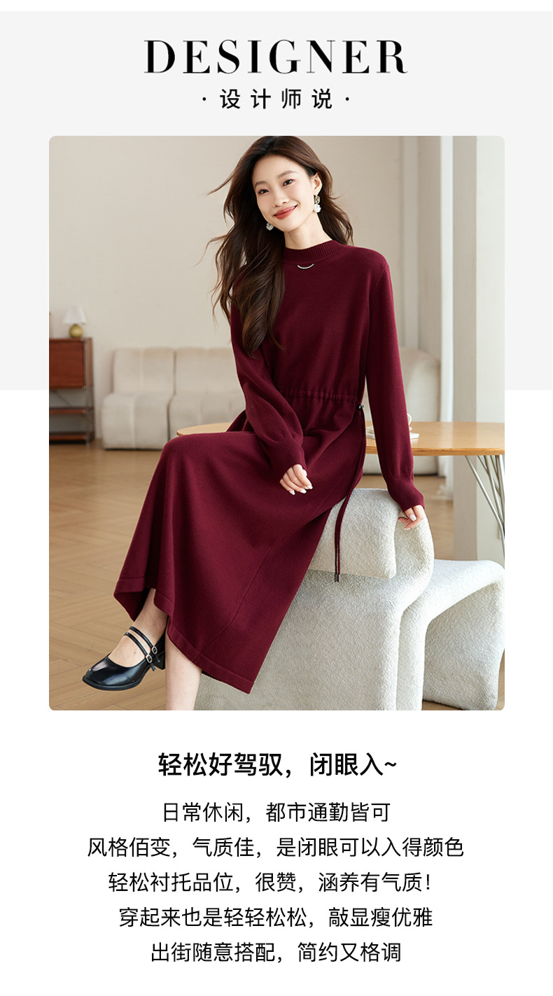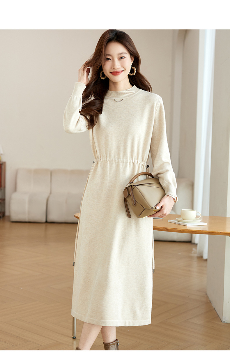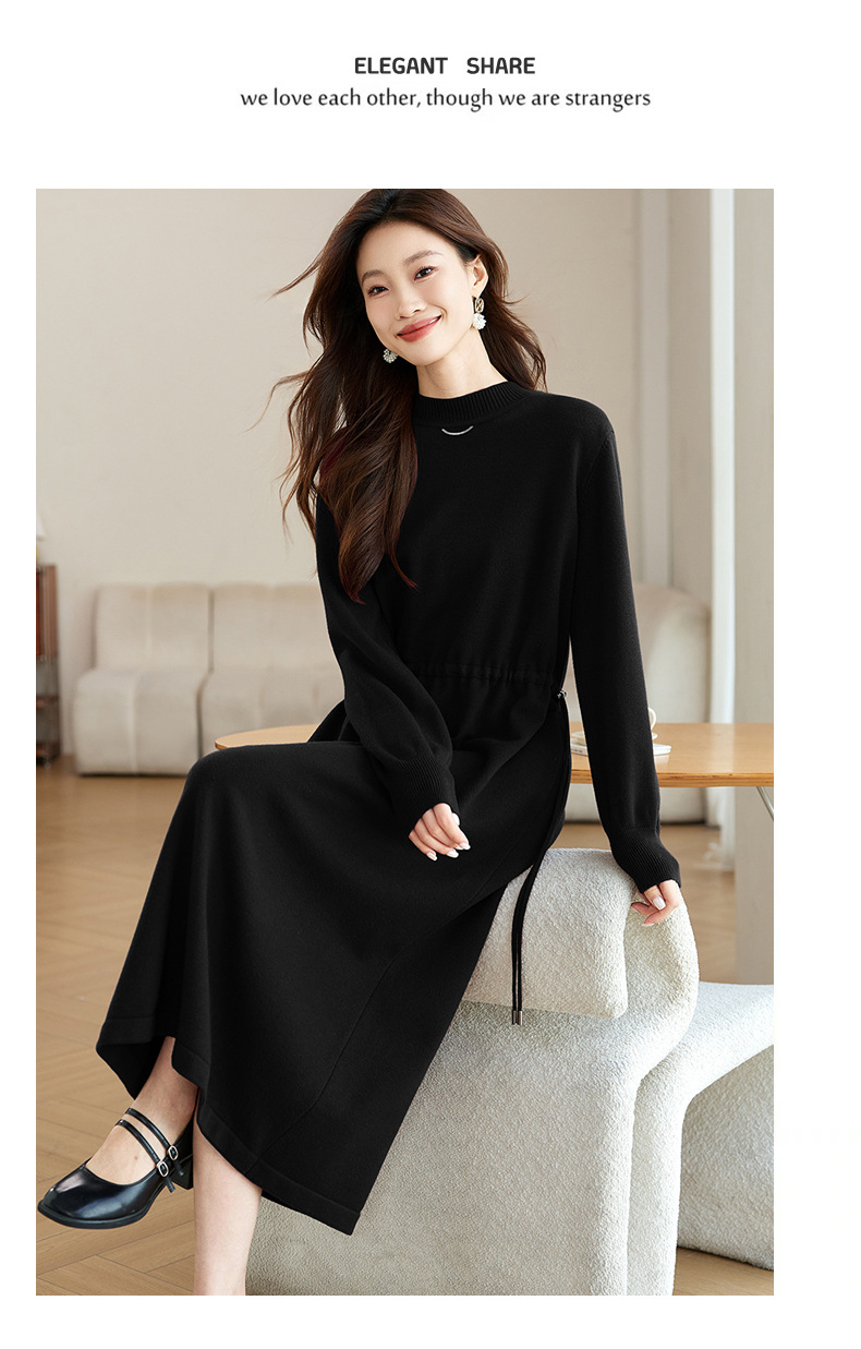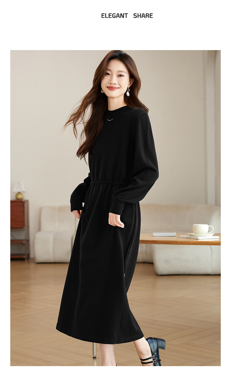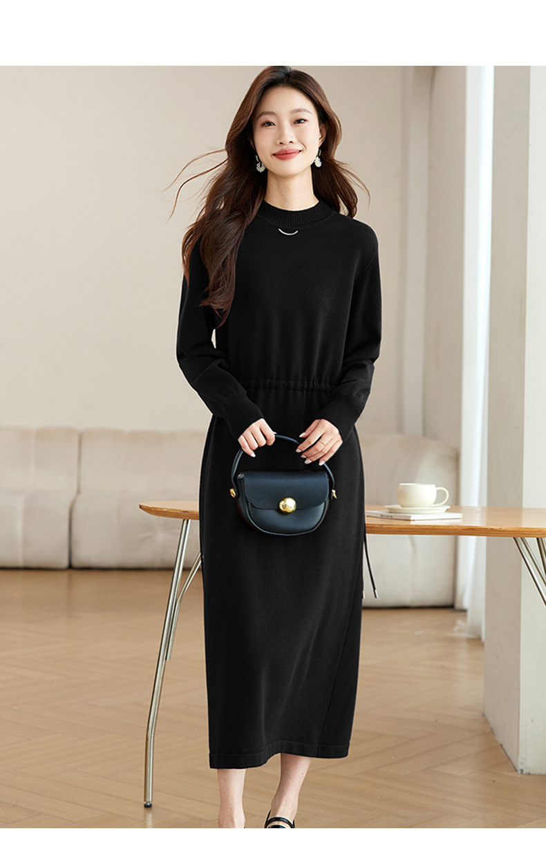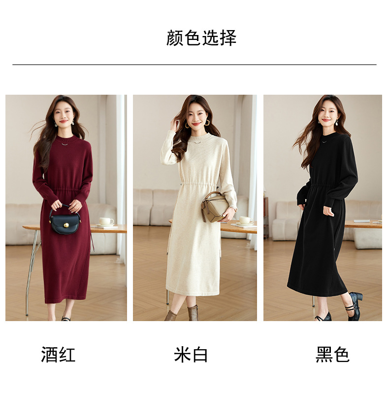 配大衣内搭长袖针织连衣裙秋冬中长款气质百搭收腰打底毛衣裙子CC&ML-9909