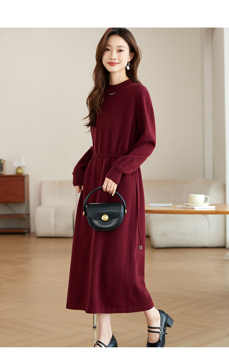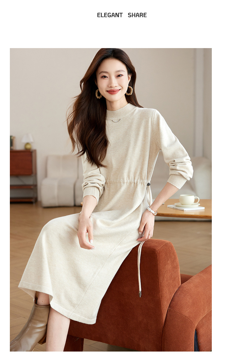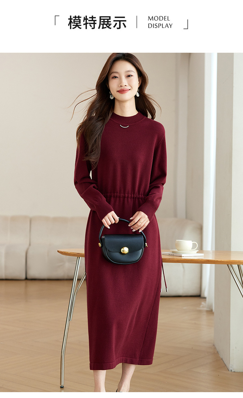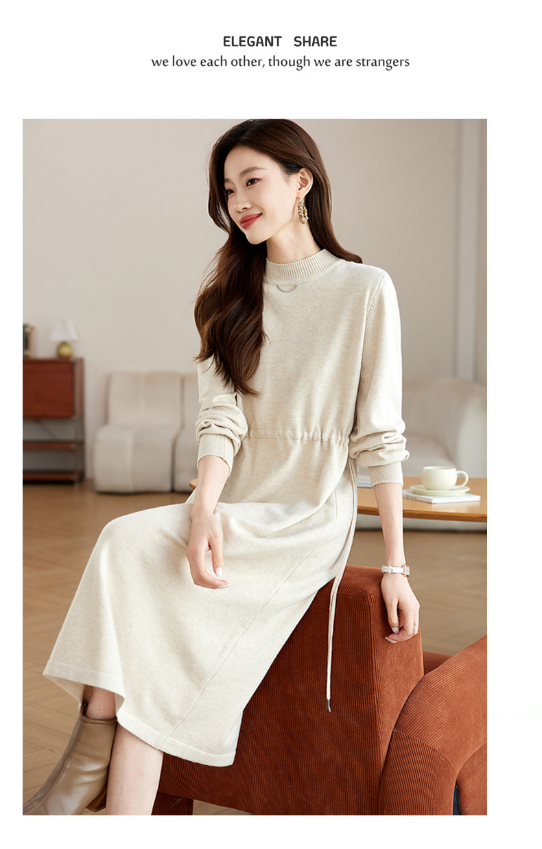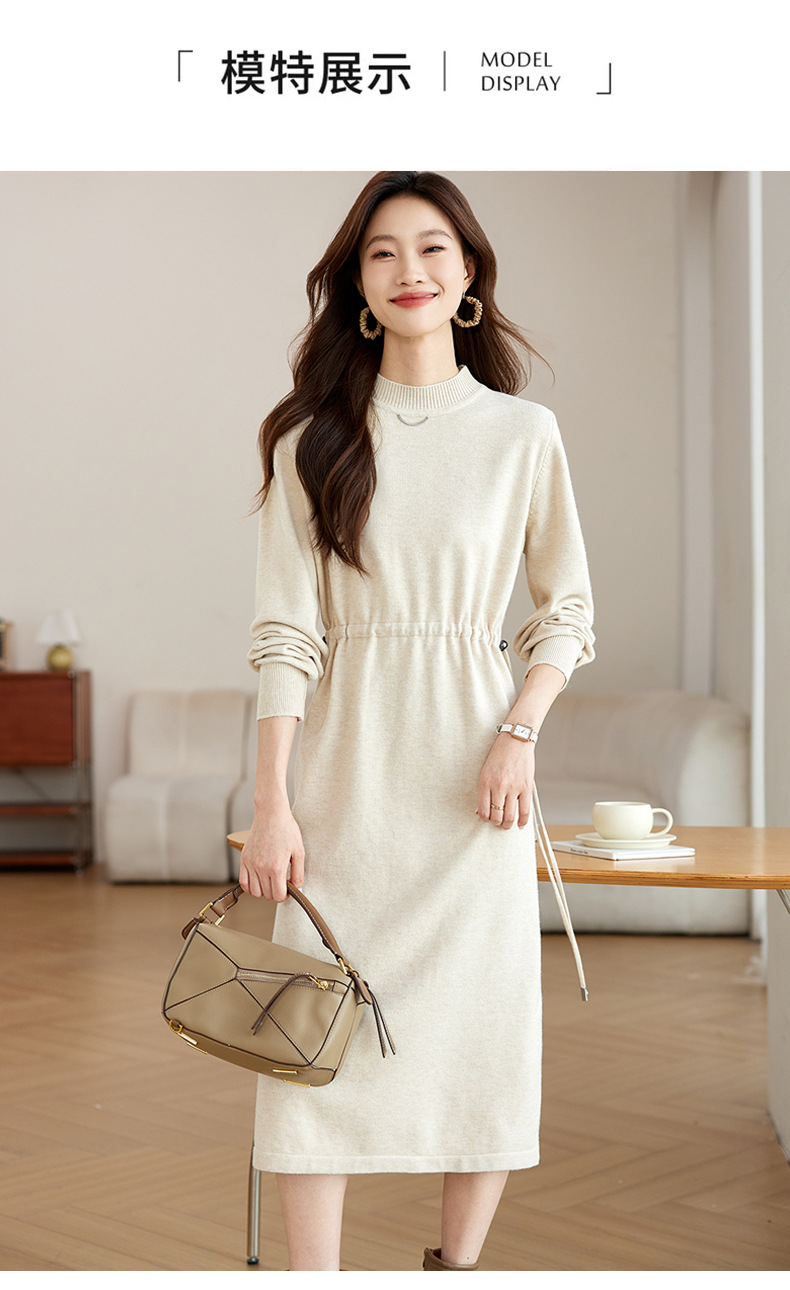 配大衣内搭长袖针织连衣裙秋冬中长款气质百搭收腰打底毛衣裙子CC&ML-9909