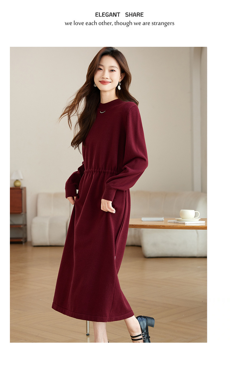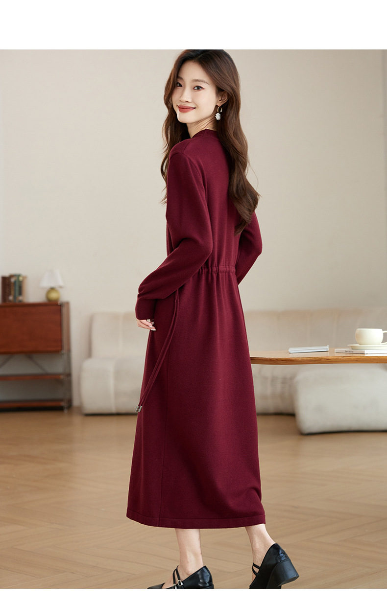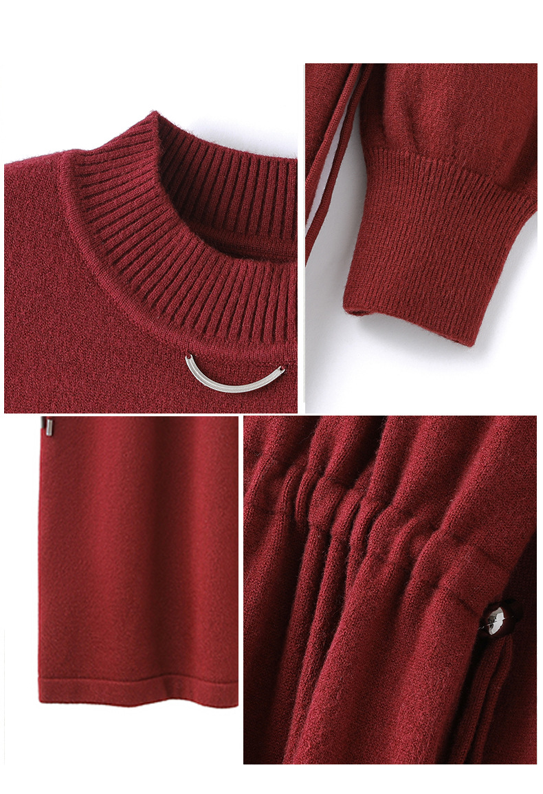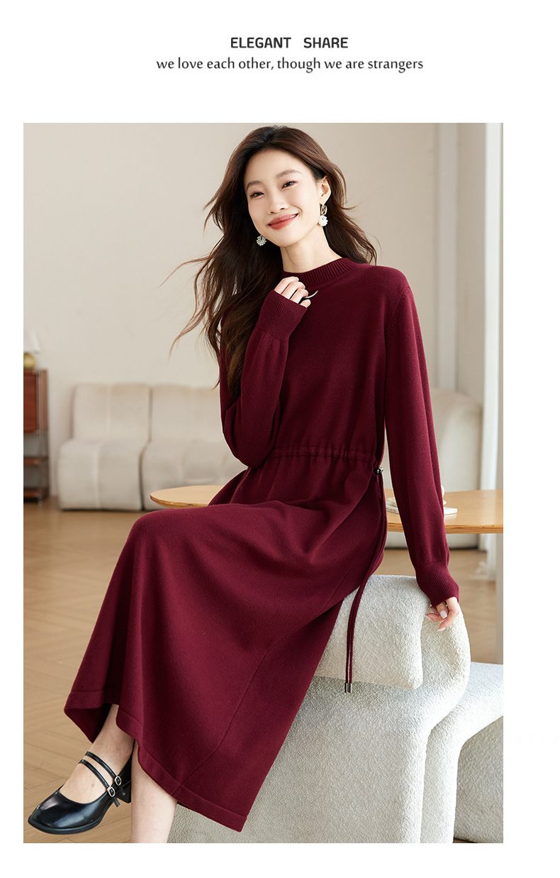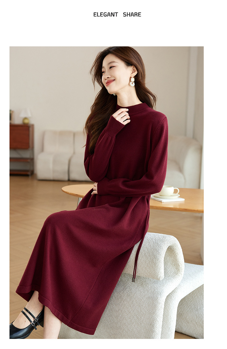 配大衣内搭长袖针织连衣裙秋冬中长款气质百搭收腰打底毛衣裙子CC&ML-9909