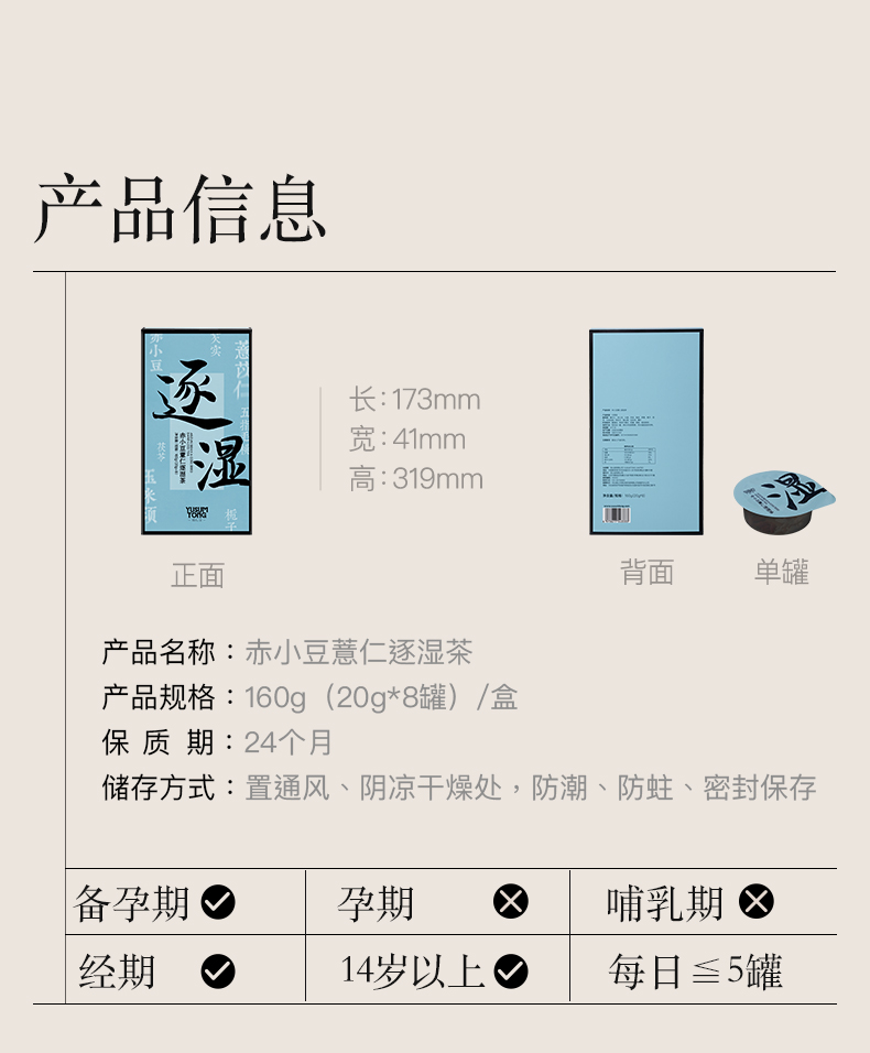 【升级版】羽心堂 赤小豆薏仁逐湿茶祛湿茶 160g(20g*8罐)/盒 大罐茶