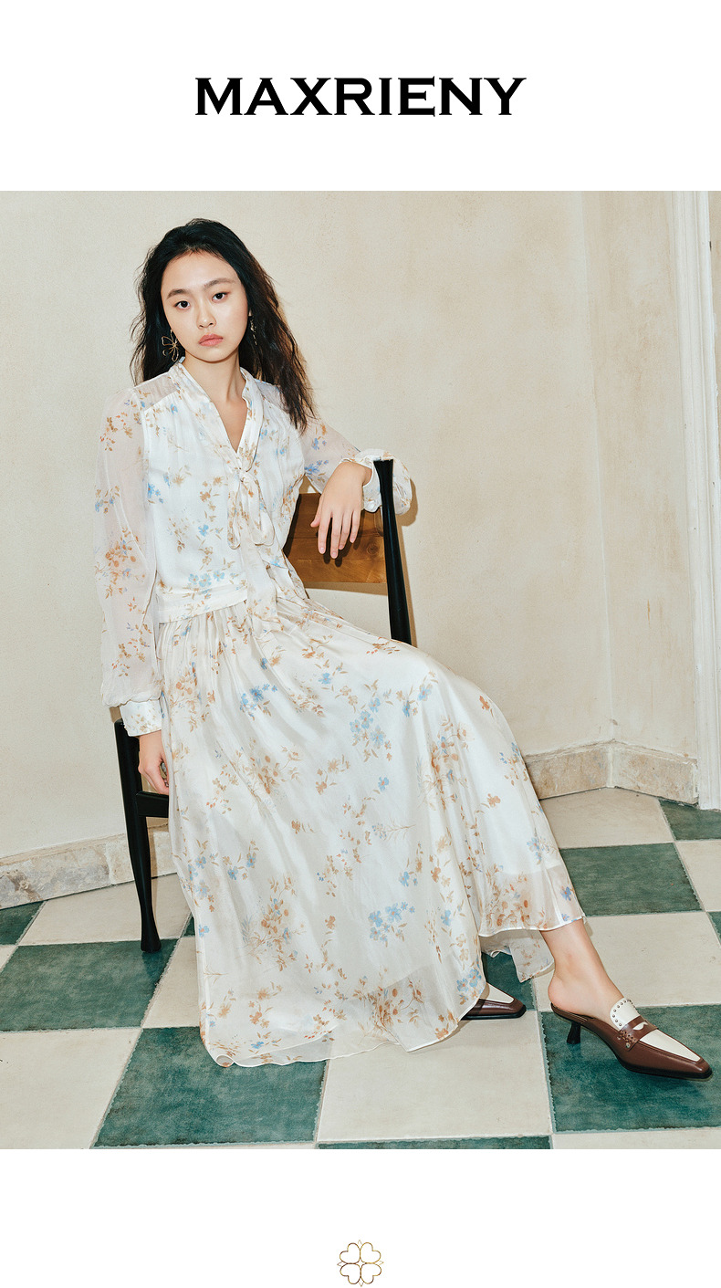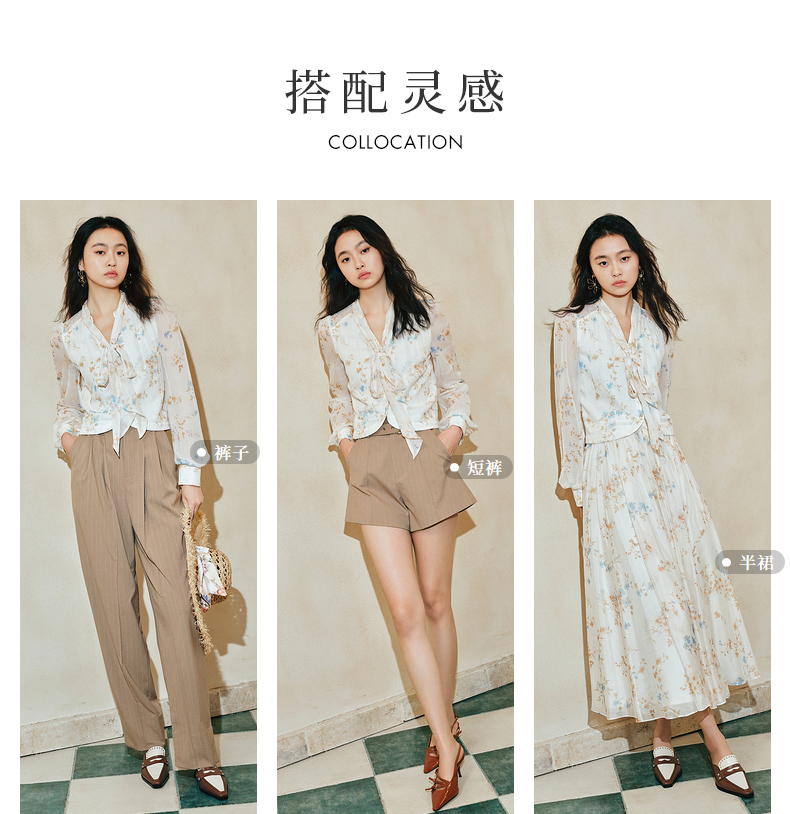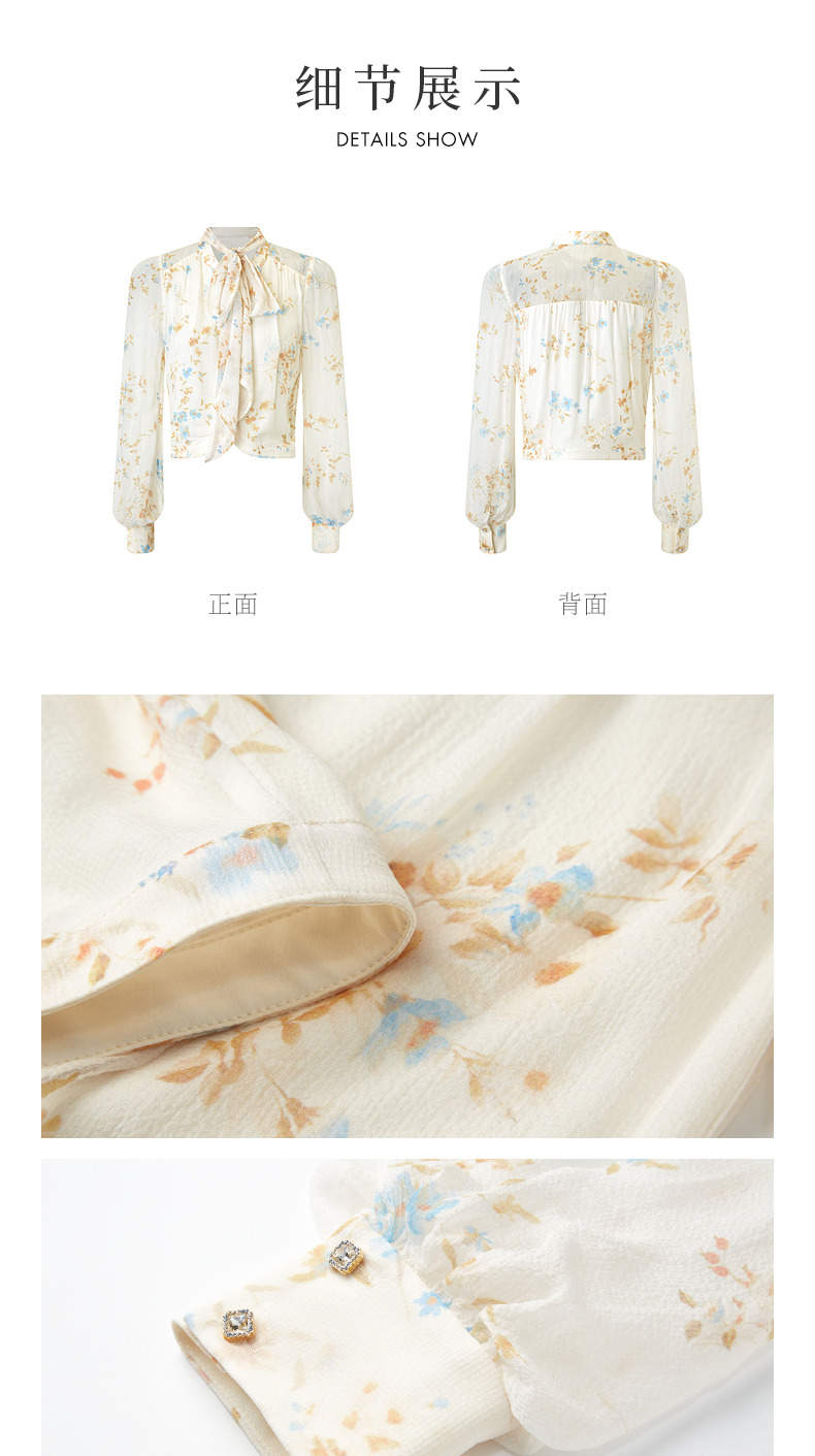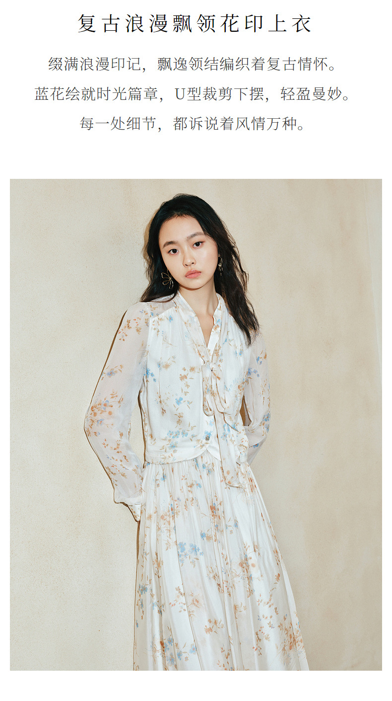 【英式雅皮士-商场同款】MAXRIENY浪漫复古飘领系带印花衬衫上衣(货号:MC85TP036)