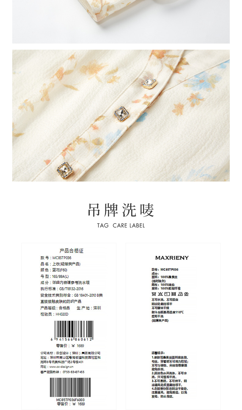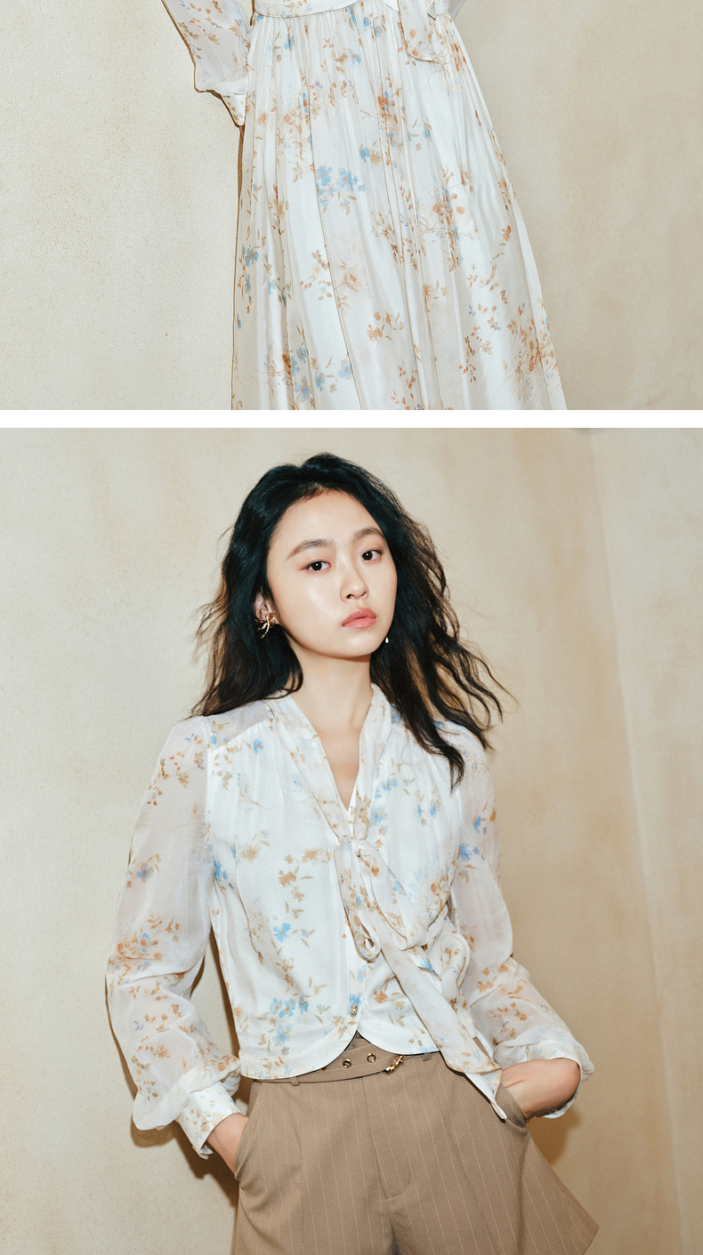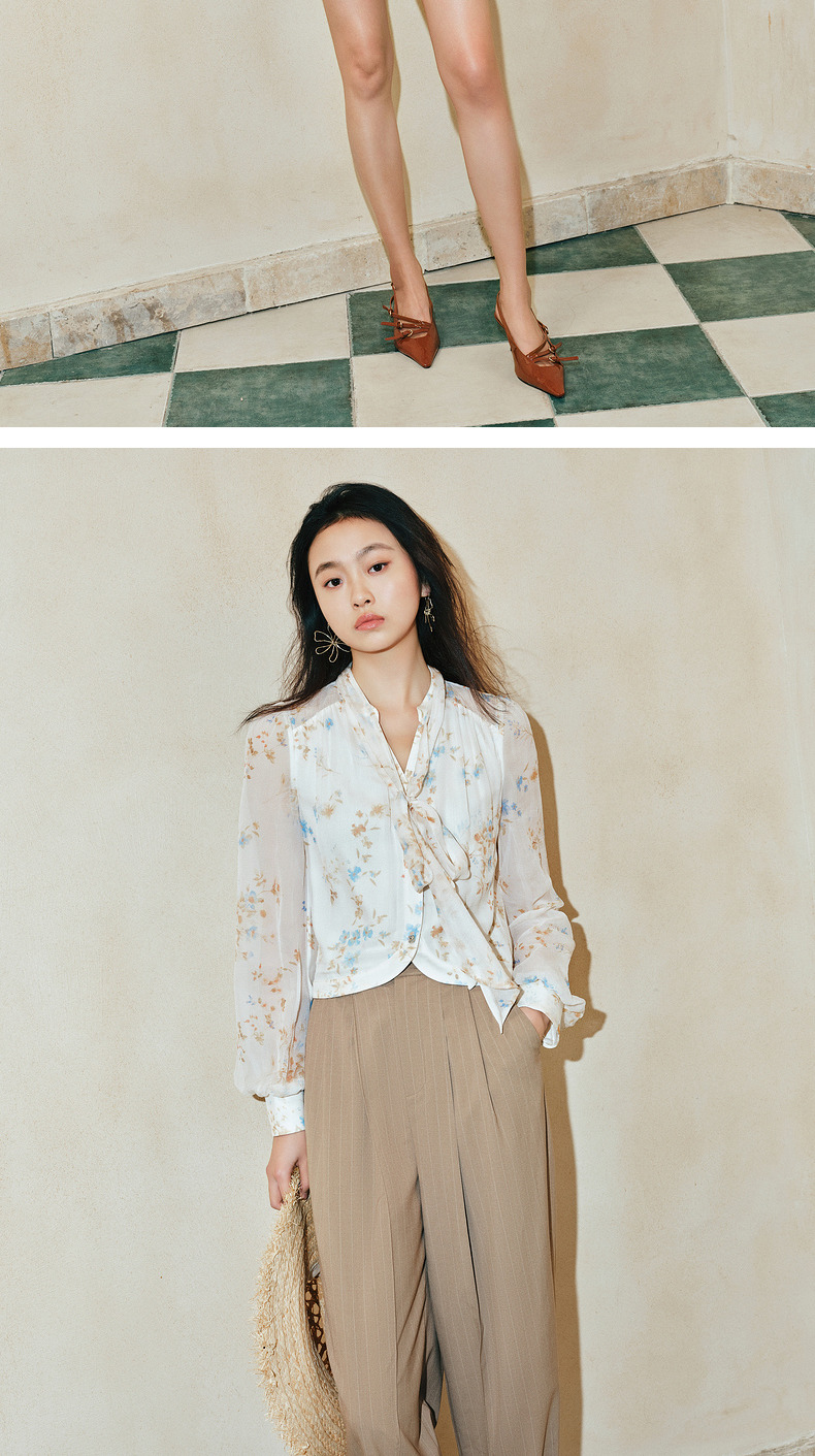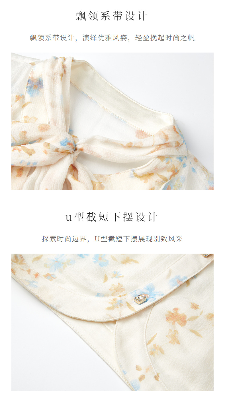 【英式雅皮士-商场同款】MAXRIENY浪漫复古飘领系带印花衬衫上衣(货号:MC85TP036)