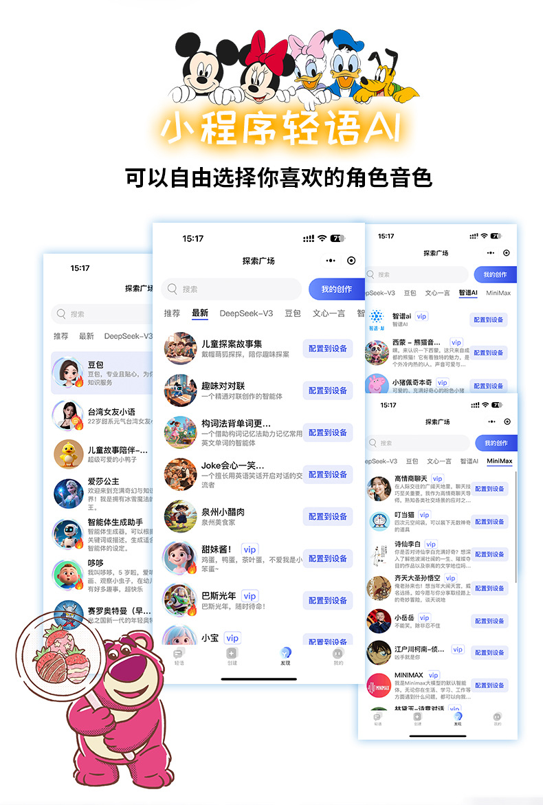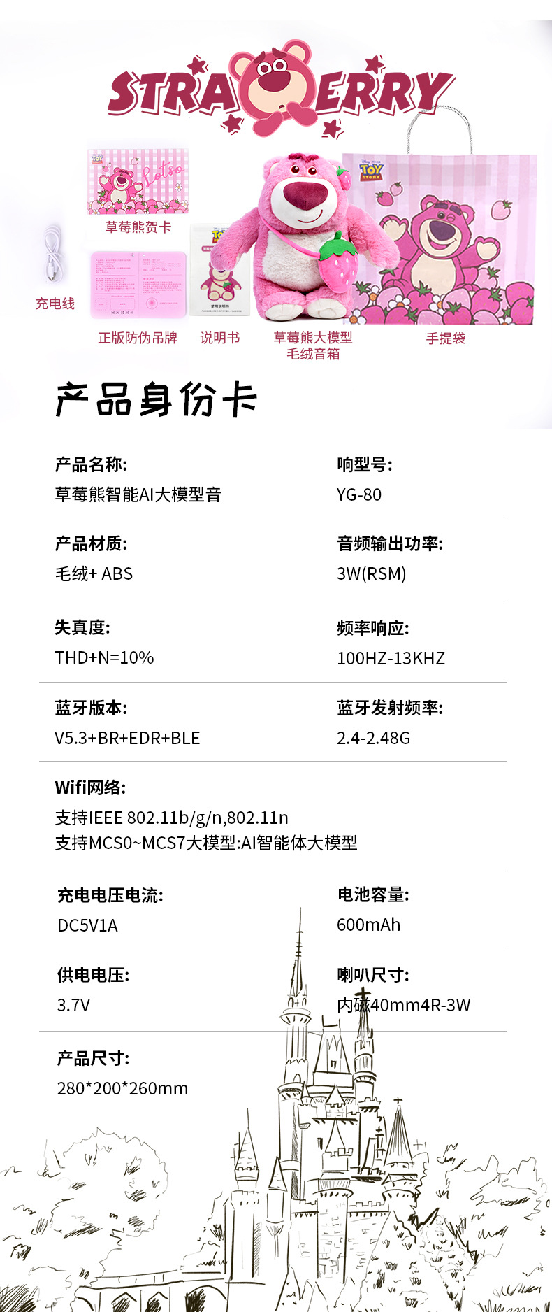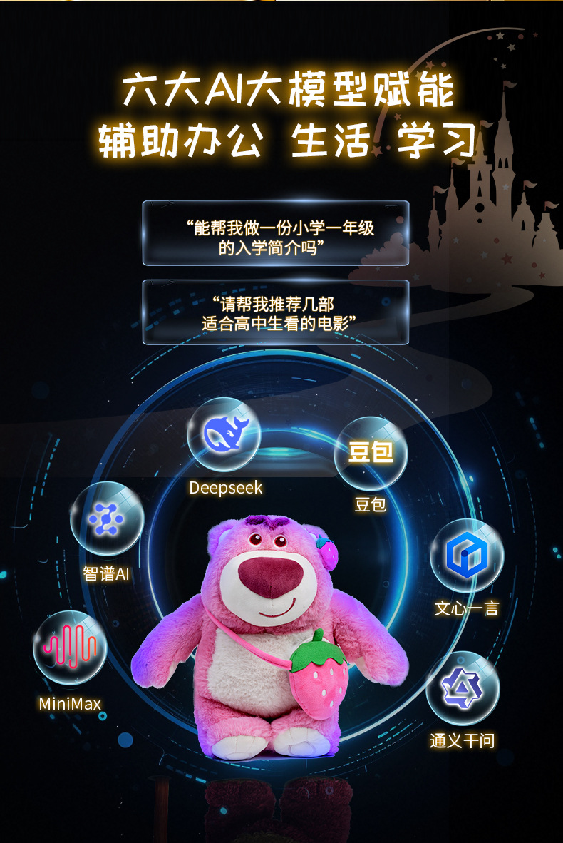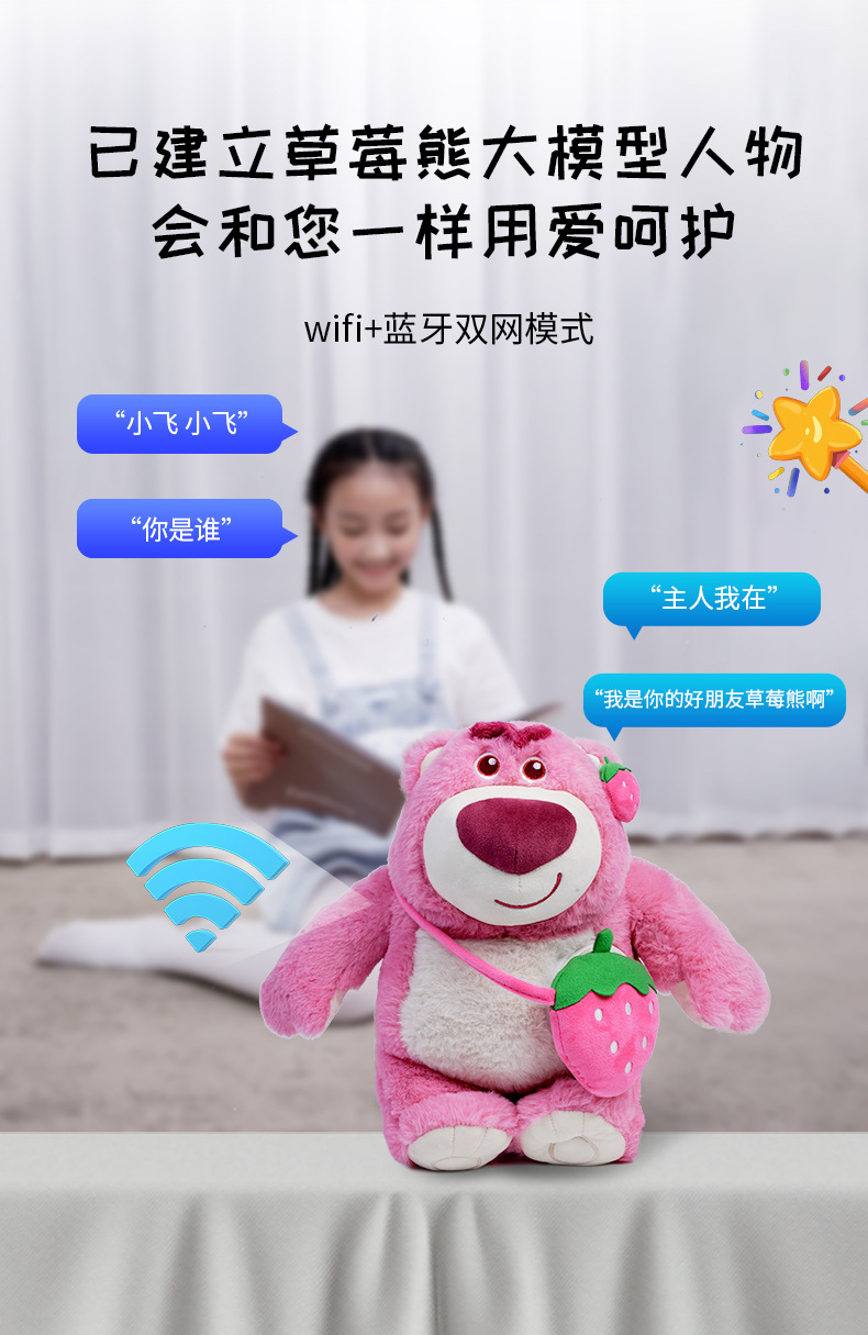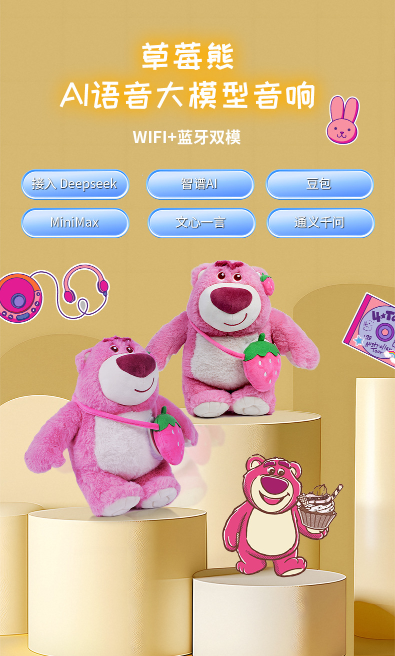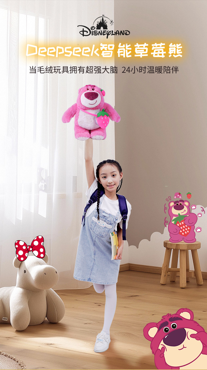 迪士尼正版授权智能草莓熊毛绒WIFI音箱 2025新款 豆包deepseek大模型AI音响玩具