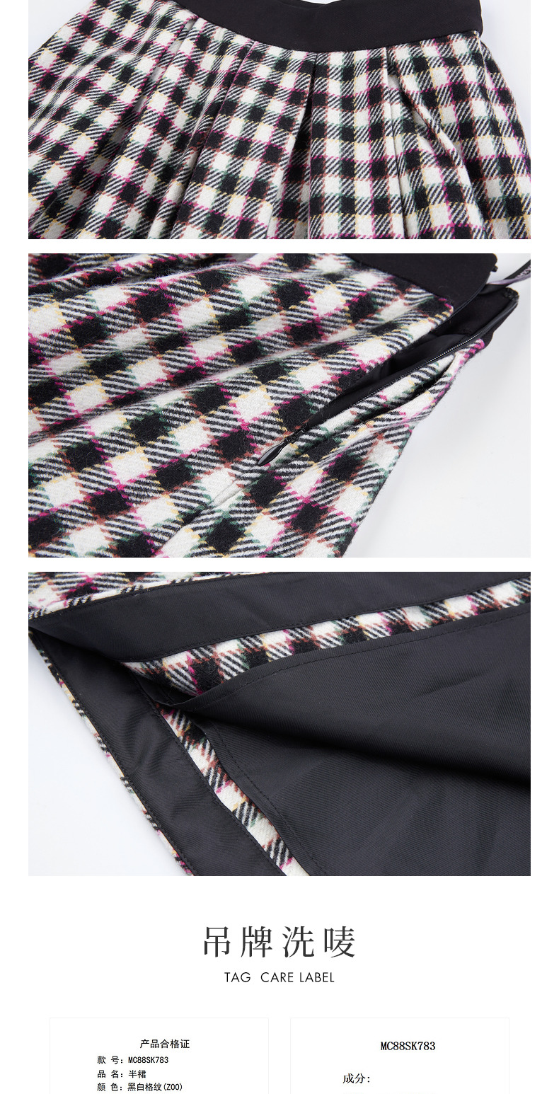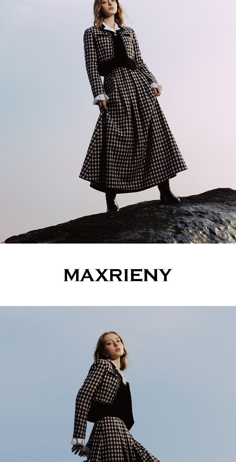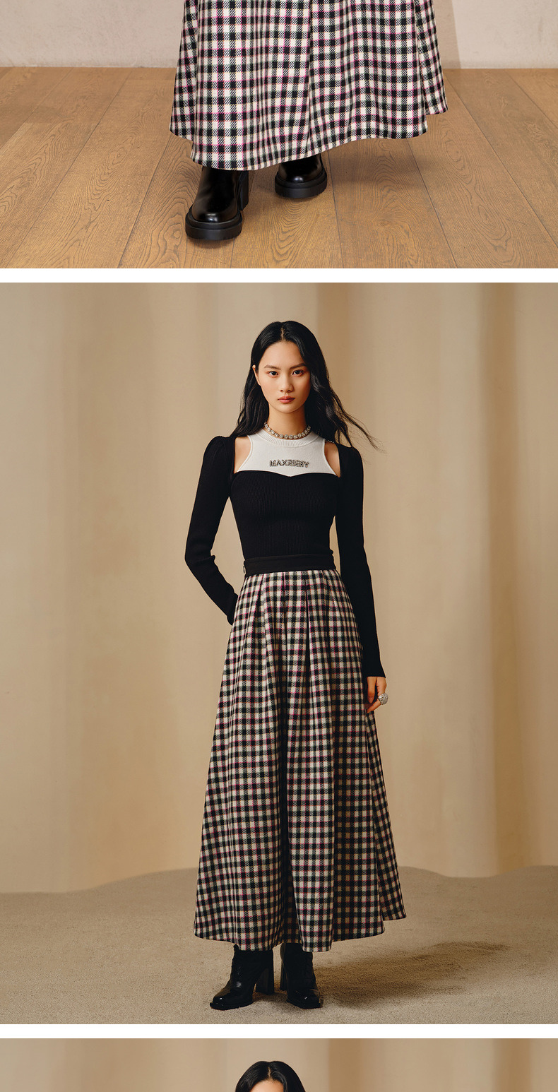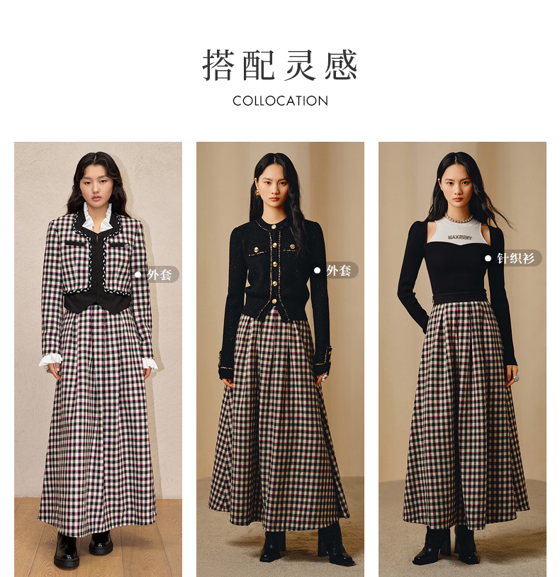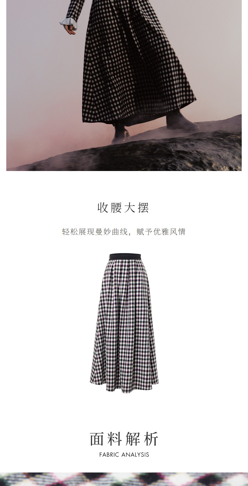 MAXRIENY率性复古感花火宫廷半裙收腰大摆格纹长裙(货号:MC88SK783)