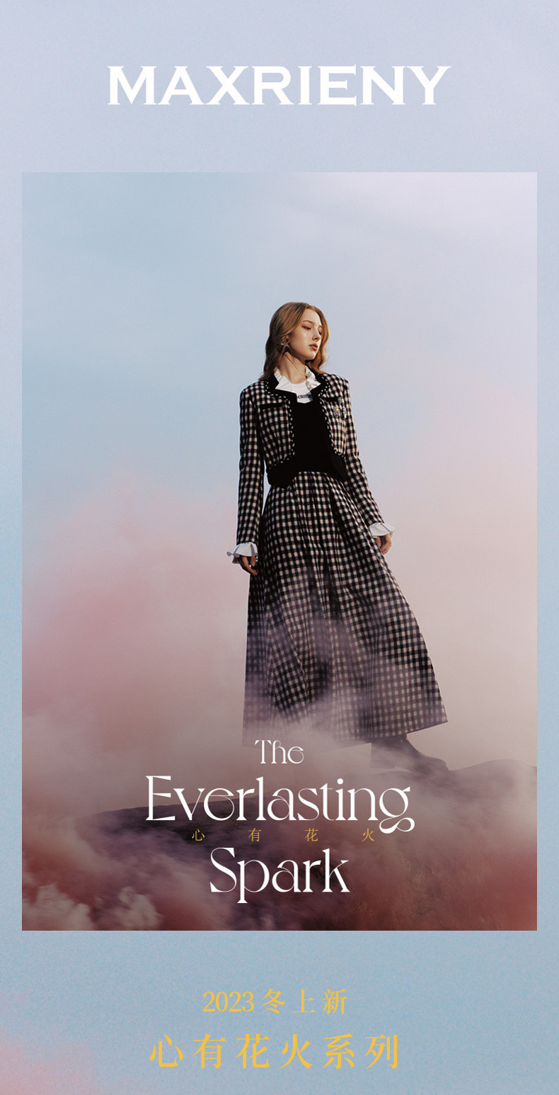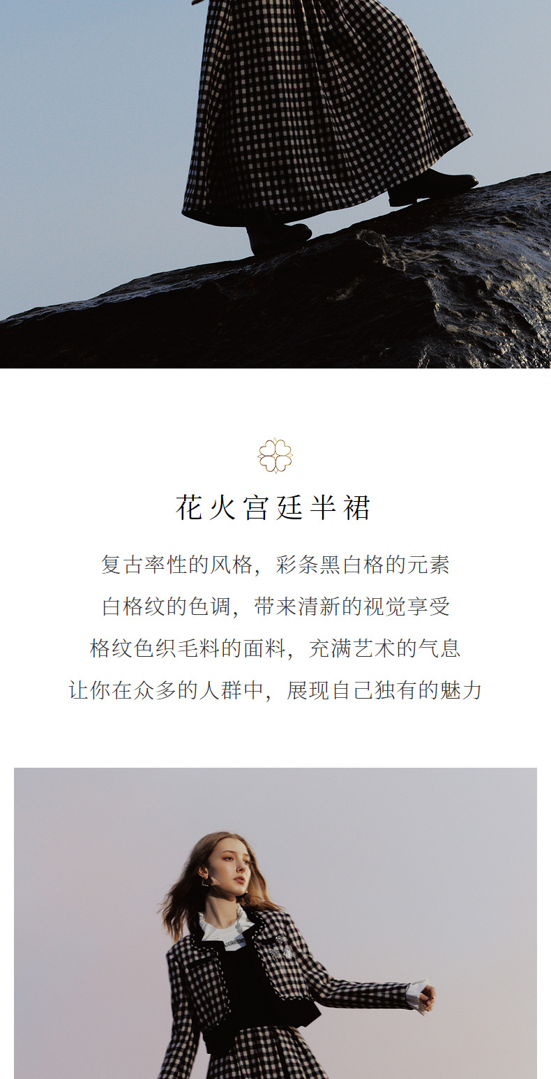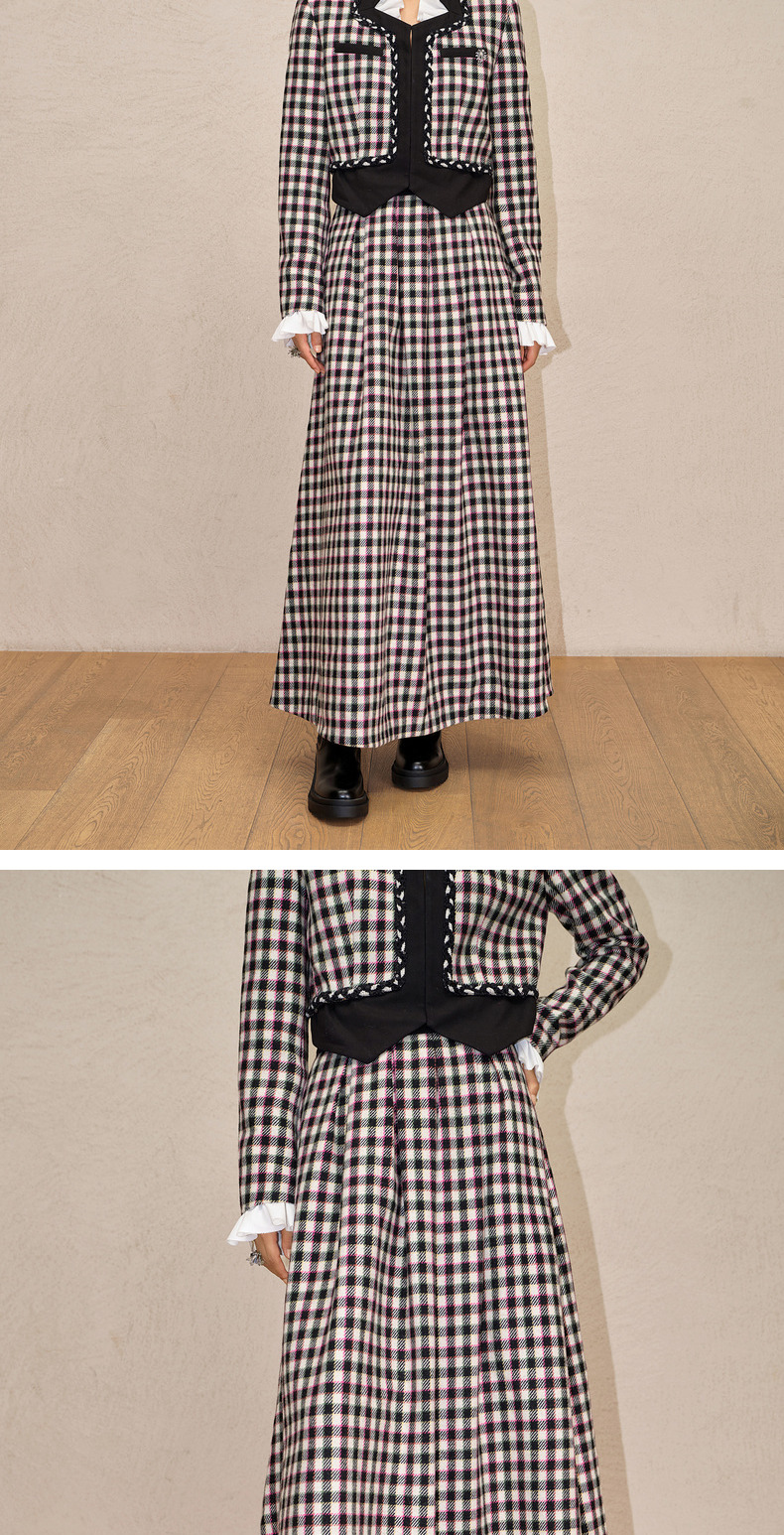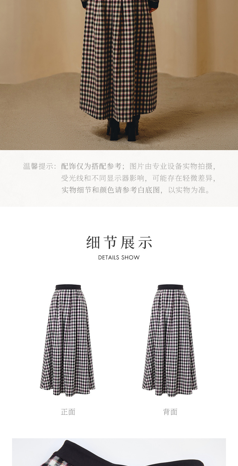 MAXRIENY率性复古感花火宫廷半裙收腰大摆格纹长裙(货号:MC88SK783)
